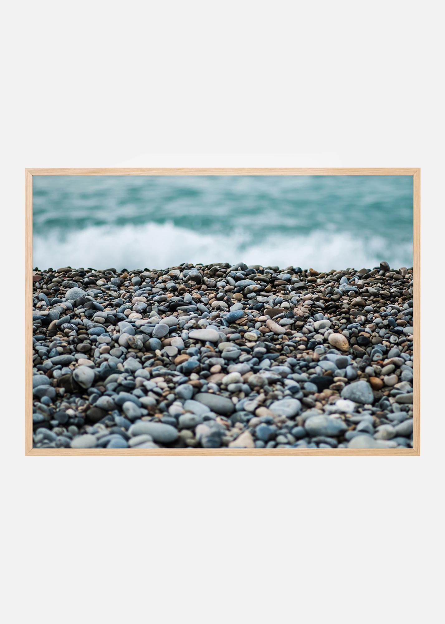 Girdite jūros bangų ošimą iš šio plakato su gražiu akmenuotu paplūdimiu priekyje. Trumpas ryškumo gylis sukuria įdomų vaizdą, kuris traukia akis į paveikslėlį. Ar randate kokį nors apvalų stiklo gabalėlį tarp akmenų? Pilkai mėlynas spalvų diapazonas gerai dera su siauru rėmeliu prie šviesios sienos, pageidautina su jūrinių aksesuarų priedais.