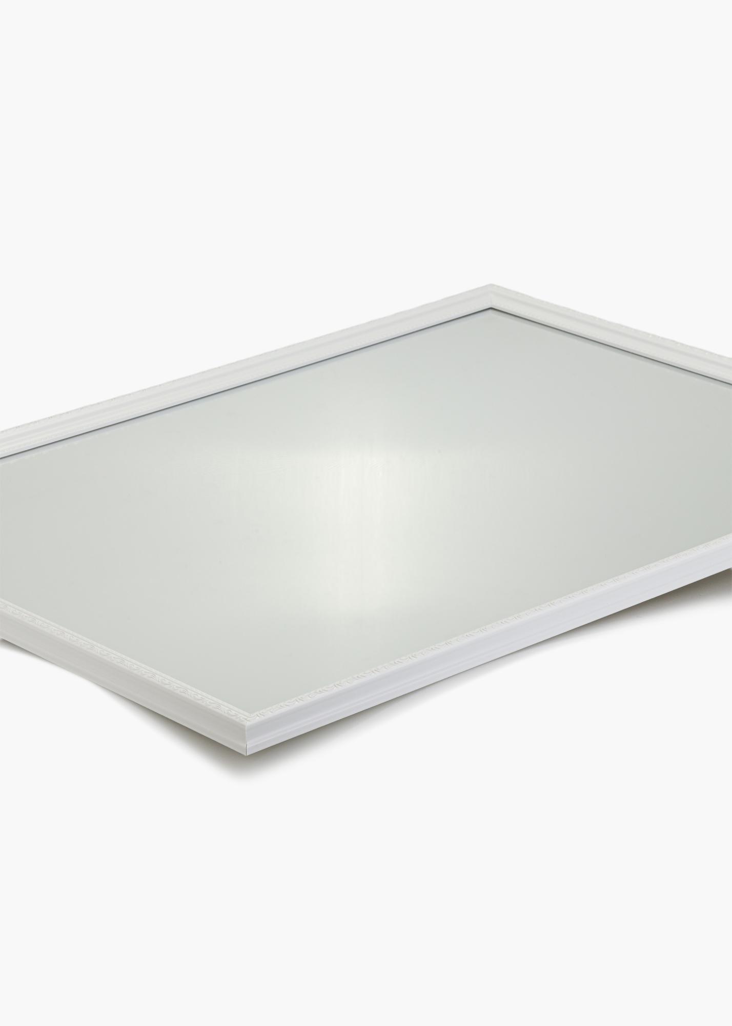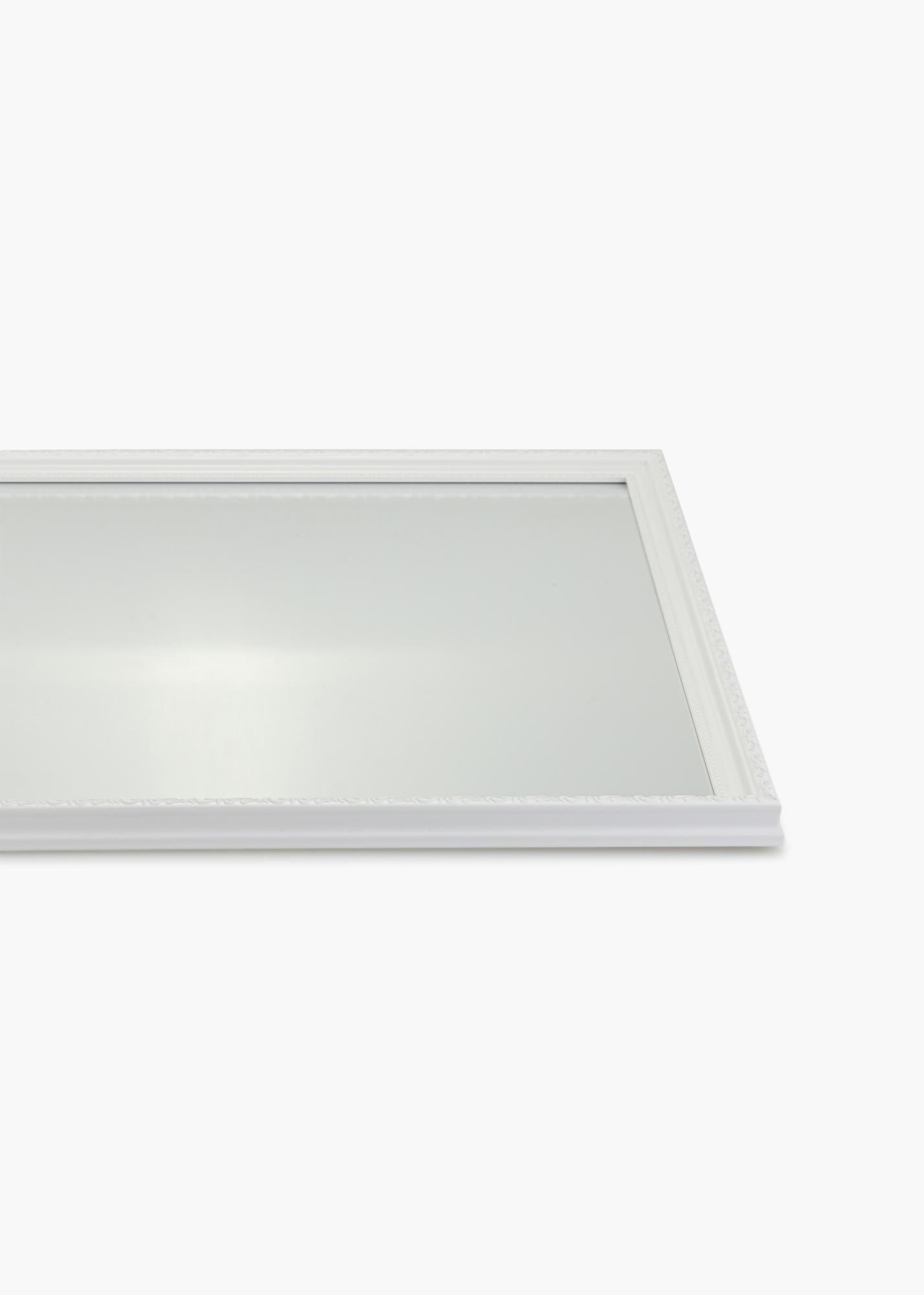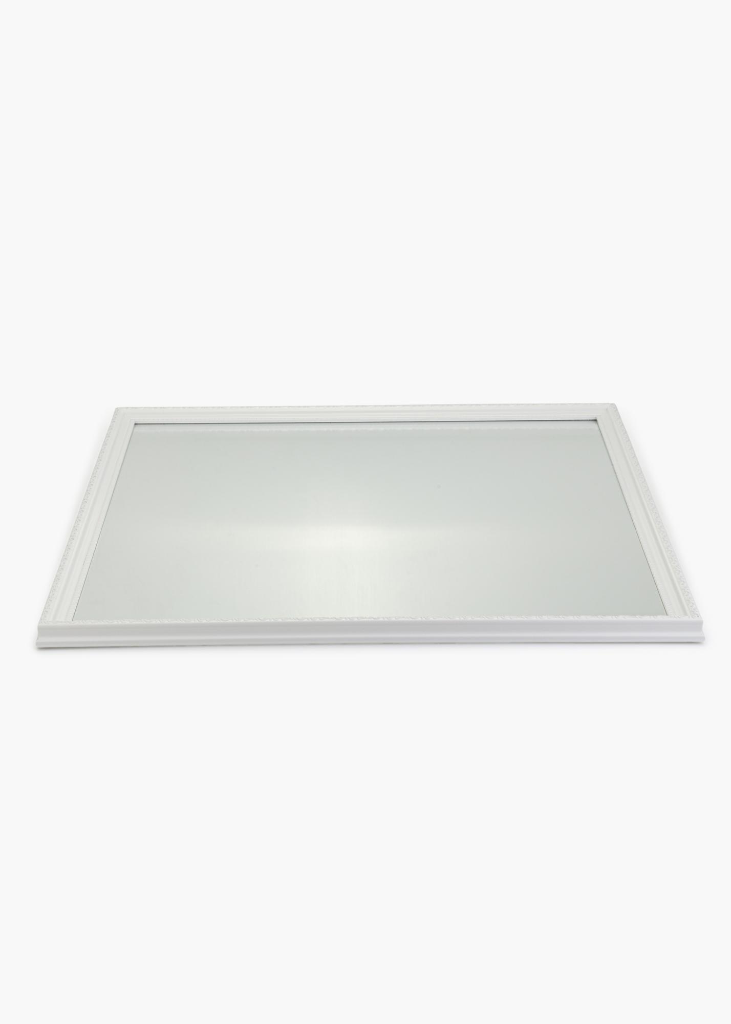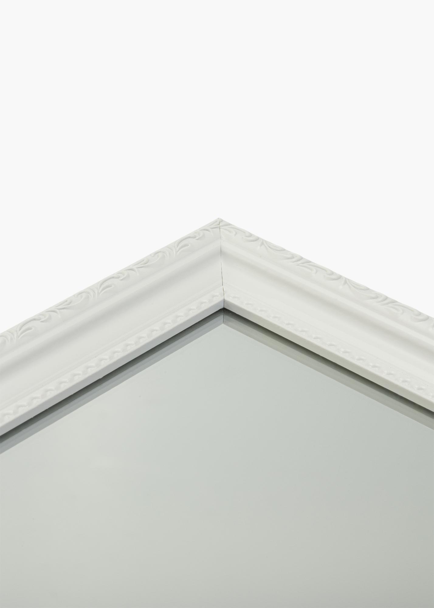 Baltoji veidrodis taps gaiviu akcentu kiekvienuose namuose, o šis modelis taip pat suteikia didelės elegancijos! Veidrodis pagamintas iš kompozito ir turi tradicinį nespalvotą veidrodžio stiklą. 25 mm pločio rėmas turi gražiai raštuotą profilį, kuris suteikia labai stilingą įspūdį.