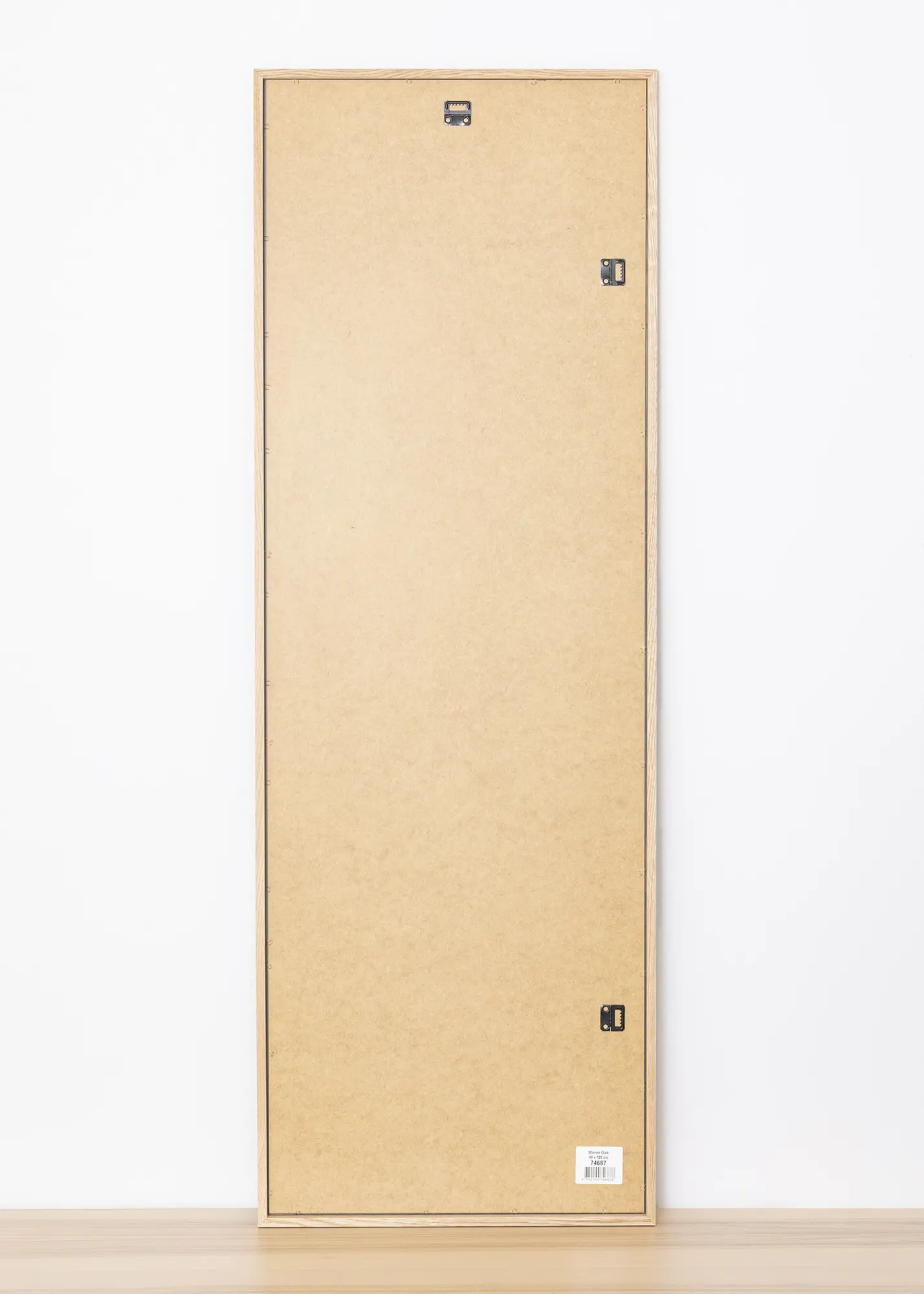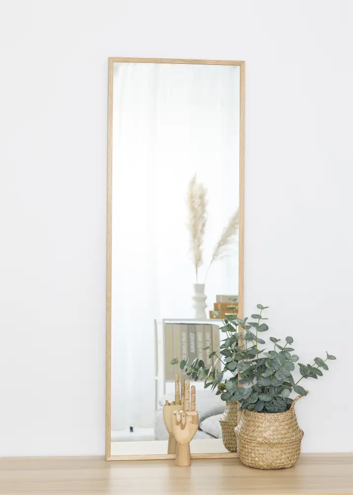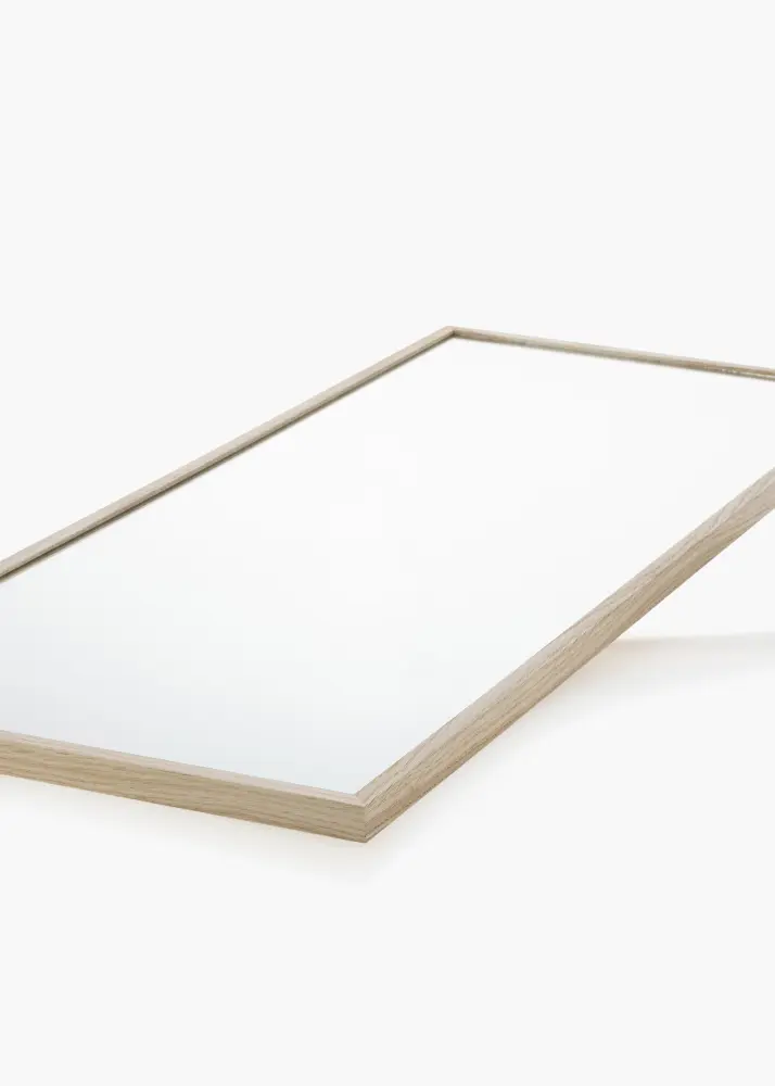Tai yra sieninis veidrodis su plonu mediniu rėmu, kuris puikiai tinka tiek moderniuose, tiek bohemiškuose namuose. Veidrodis yra skandinaviško dizaino pavyzdys, kai jis yra geriausias, su nedažytu veidrodžio stiklu ir šviesiai mediniu rėmu, tiesiu profiliu, kurie kartu suteikia šviesų ir gaivų įvaizdį.