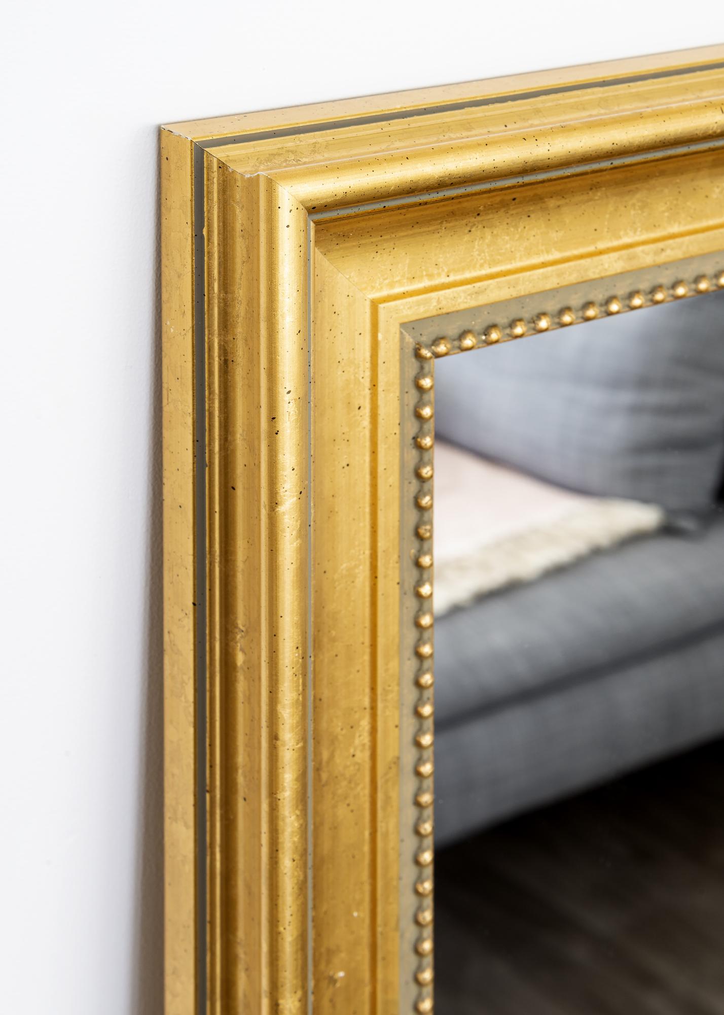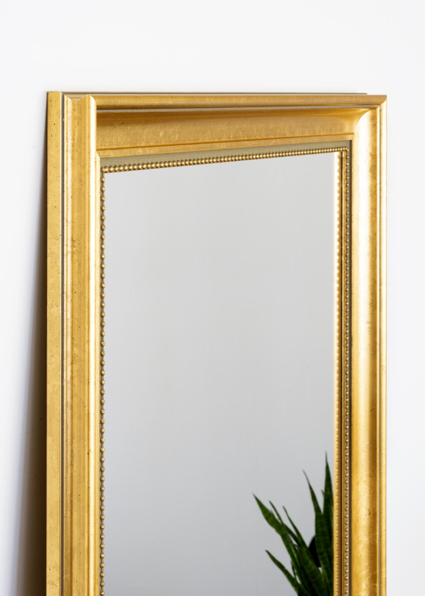 Įsigykite žavingą veidrodį ir padarykite prieškambario, svetainės ar vonios kambario interjerą itin prabangų. Šis stilingas veidrodis yra kelių skirtingų dydžių, todėl lengvai rasite tokį, kuris tiks būtent jūsų tikslams. Veidrodžio rėmas turi klasikinį dizainą su plačiu rėmu ir subtiliu perlų raštu arčiausiai stiklo. Mediena yra iš tvaraus miškų ūkio ir dažyta gražiu auksiniu atspalviu.