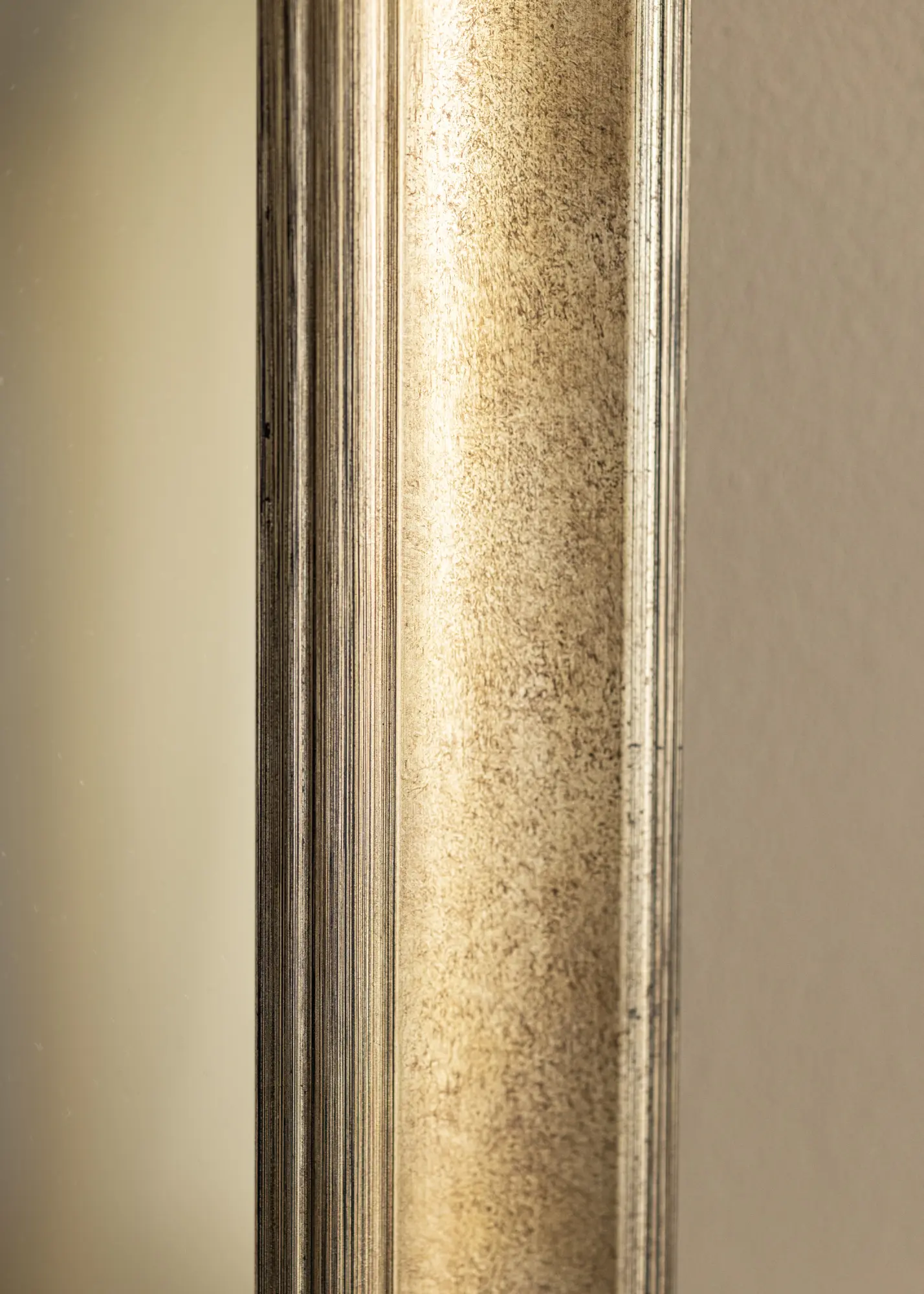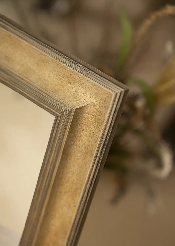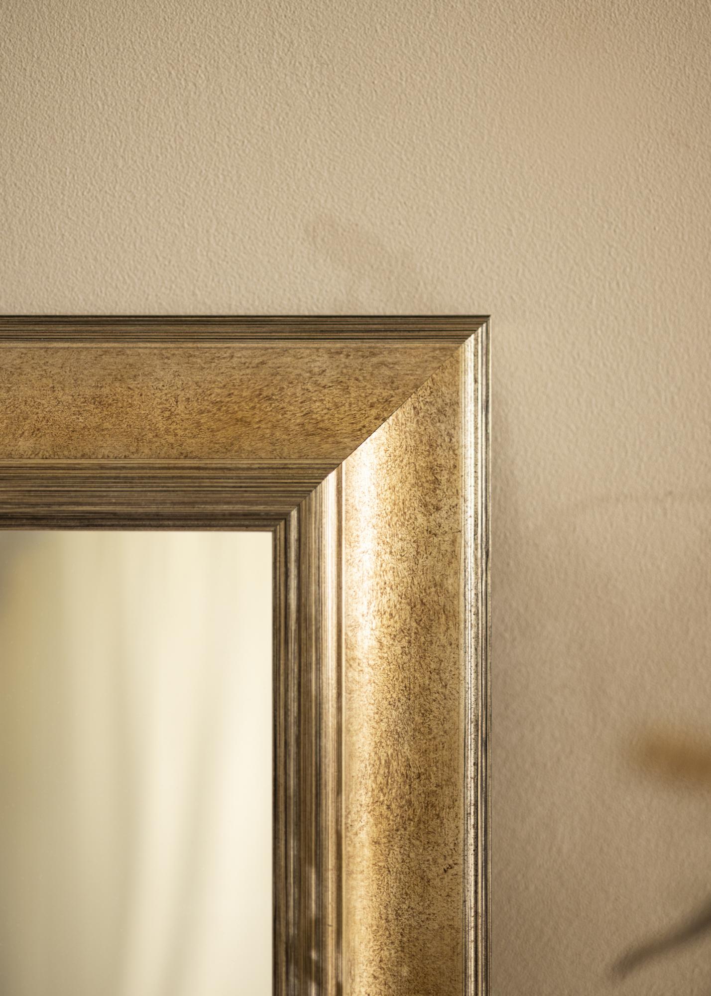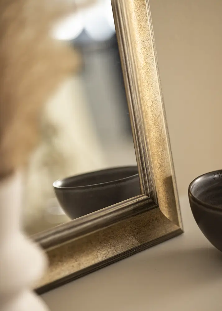 Tamsus sidabro atspalvis veidrodyje suteikia klasikinio ir nesenstančio pojūčio, todėl lengva jį derinti su įvairiais interjero stiliais. Šlifuotas paviršius turi subtilių spalvų perėjimų, kurie paryškina tiek gylį, tiek struktūrą, suteikdami veidrodžiui unikalų charakterį. Plonos, linijinės dekoracijos palei kraštus prideda papildomą elegancijos ir rafinuotumo dimensiją.