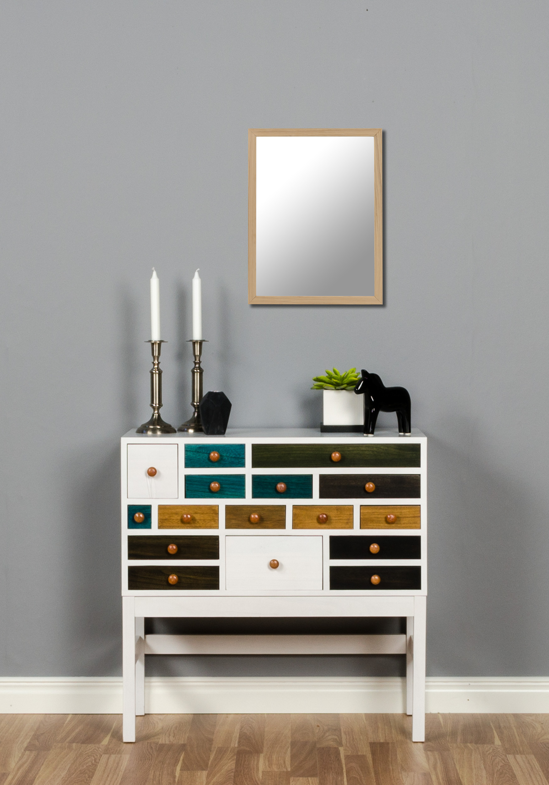 Sukurkite natūralumo jausmą namuose su interjero komponentais iš ąžuolo! Šis stilingas veidrodis gaminamas pagal jūsų nurodytus matmenis ir gali būti pagamintas tiek mažo formato, tinkamo virš baldų, tiek didelio formato – prieškambario sienai. Puikiai derinkite natūralią spalvą su tekstilės gaminiais, dekoracijomis ir žvakėmis baltais, žaliais ir rudais atspalviais!
