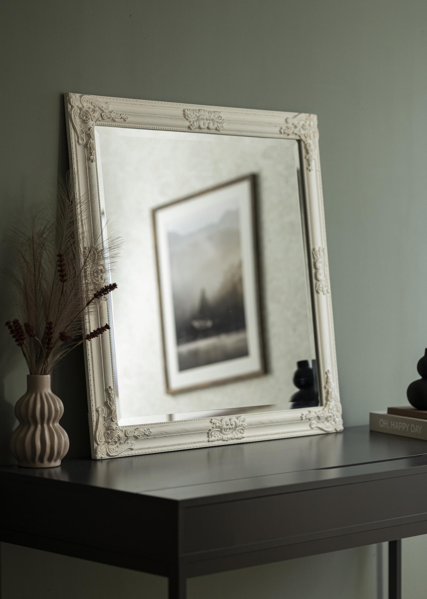 Atraskite elegantišką kvadratinį veidrodį, kurio matmenys yra 80x80 cm, puikiai tinkančio tiek praktiniam naudojimui, tiek dekoravimui jūsų namuose. Šis veidrodis yra kvadratinės formos, suteikiančios simetrišką ir subalansuotą pojūtį, todėl jis tampa akį traukiančiu akcentu bet kuriame kambaryje. Balti rėmai gausiai dekoruoti klasikiniais įkvėptais elementais, kurie sukuria nesenstančią eleganciją ir žavesį.