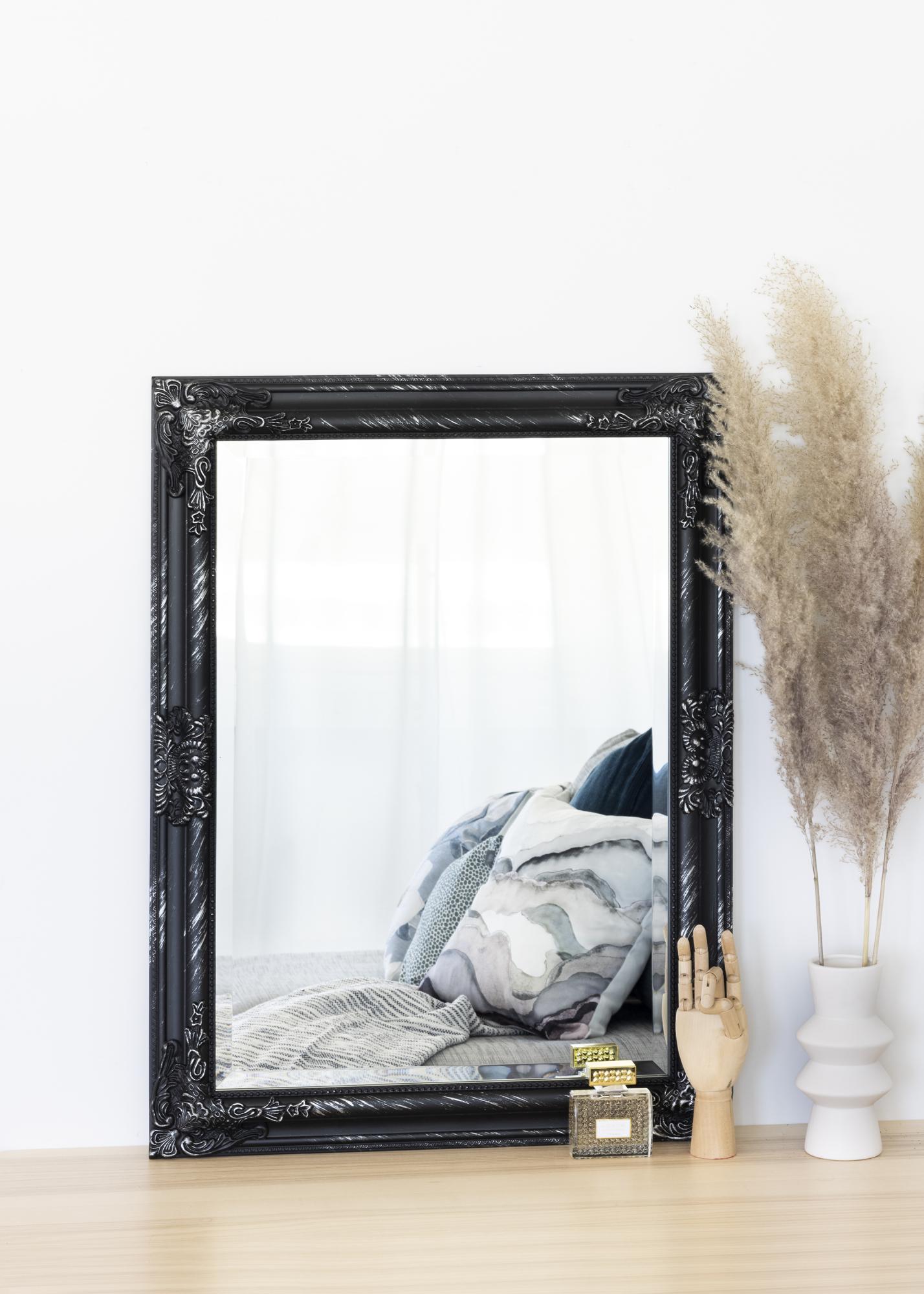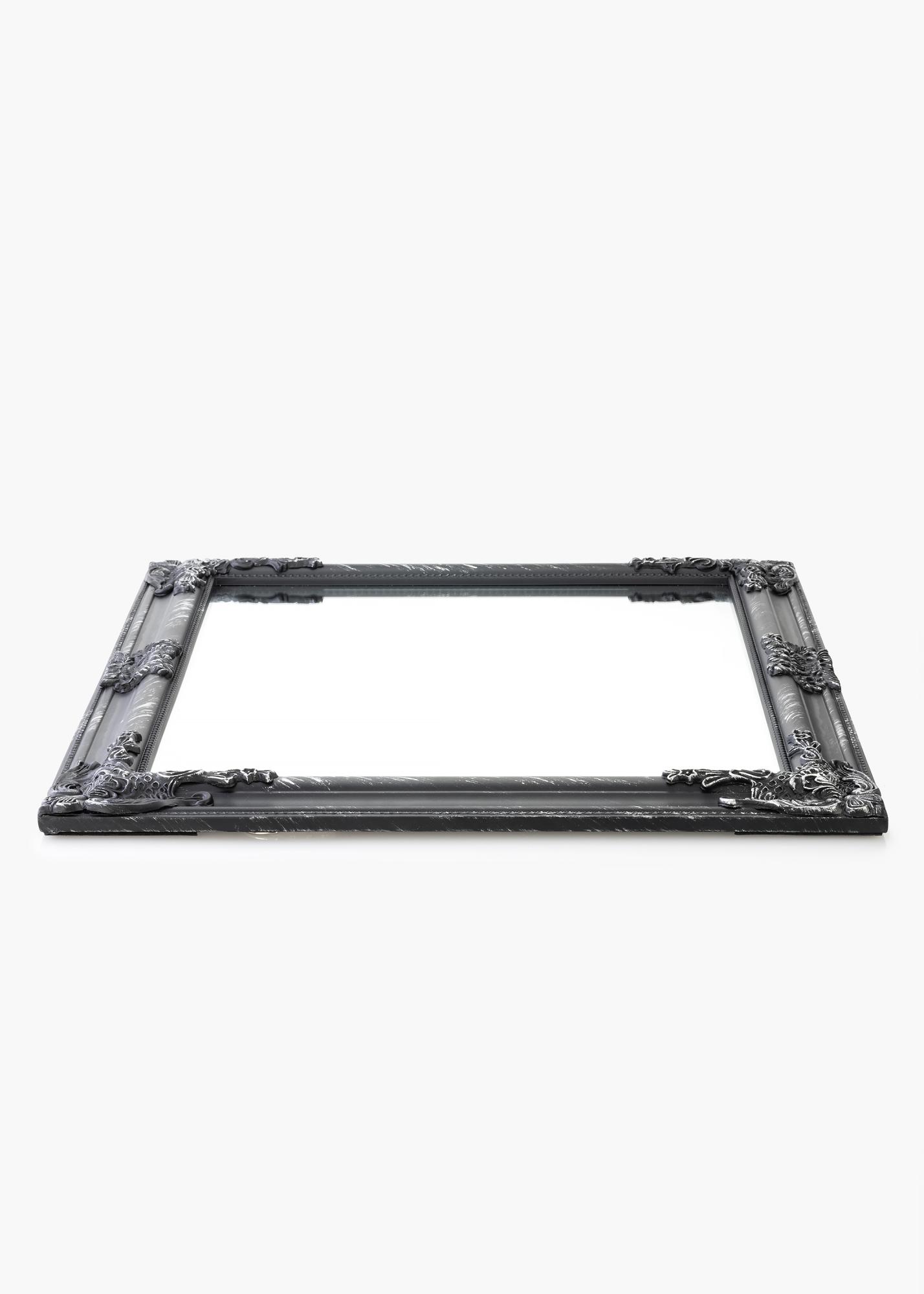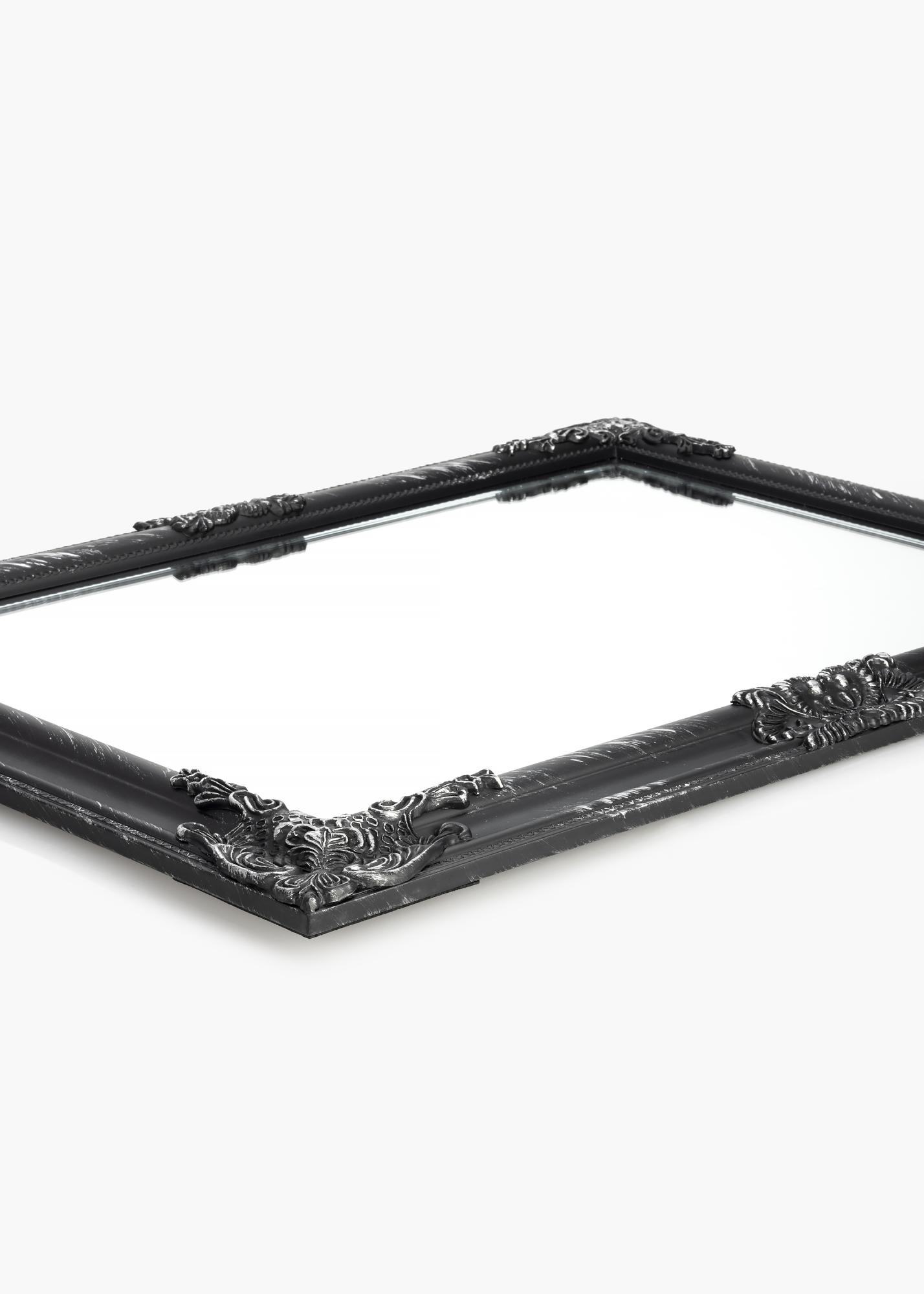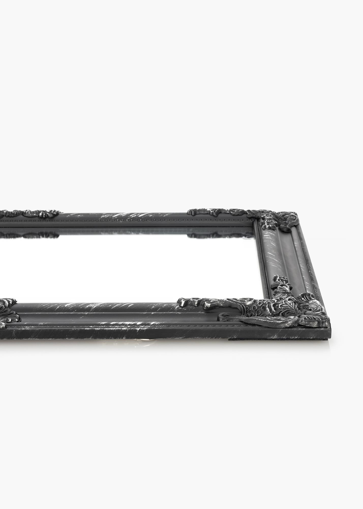 Veidrodžių serija Bologna Juoda turi lotynišką dizainą su gausia dekoracija kampuose ir rėmų šonuose. Šiek tiek siauresnis rėmas nei daugelis kitų veidrodžių šioje stiliuje. Rėmas pagamintas iš medžio, o dekoras nulietas iš gipso prieš uždedant jį ant rėmo.