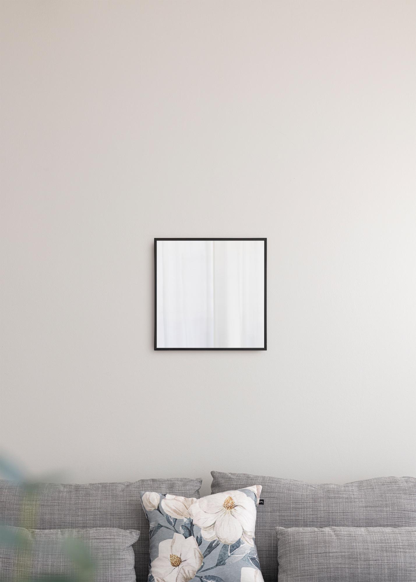 Šis sieninis veidrodis yra tobula stiliaus ir funkcionalumo kombinacija. Rėmas pagamintas iš aliuminio ir yra vos 10 mm pločio, suteikiant elegantišką, minimalistinę išvaizdą. Veidrodis priklauso serijai sieninių veidrodžių, turinčių skirtingas spalvas ir dydžius, o ši yra juoda variantas, kurio dydis yra 41,1x41,1 cm.