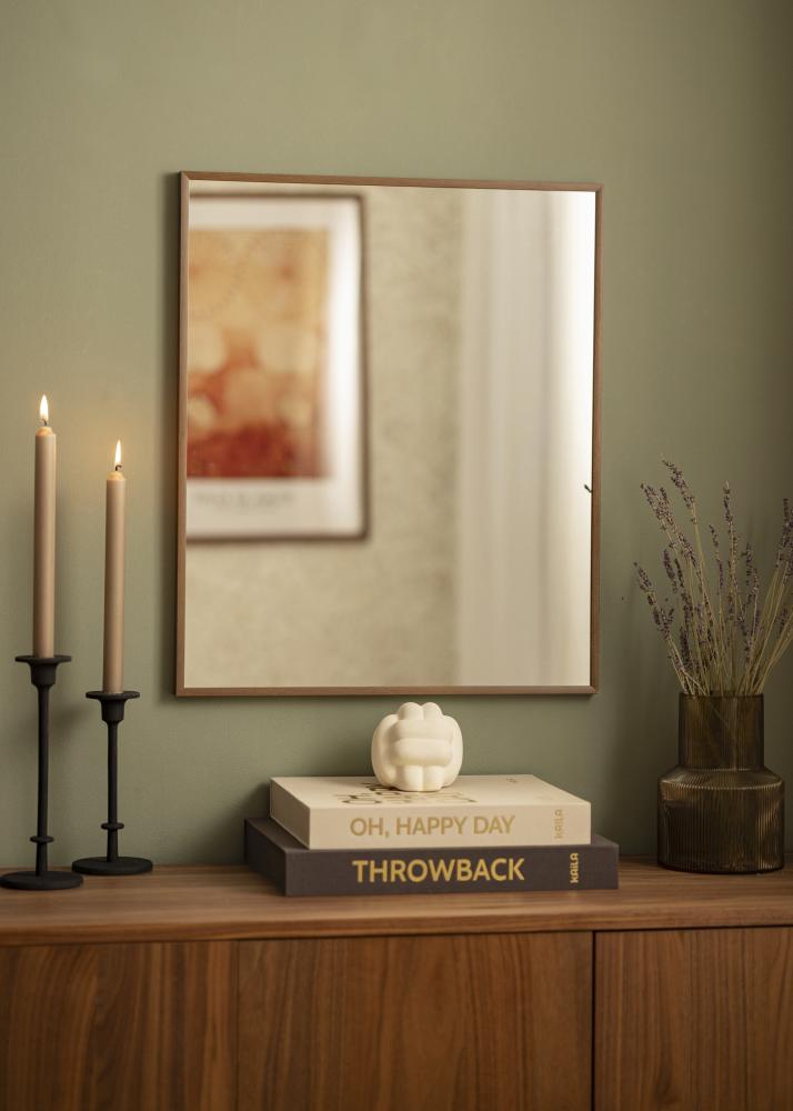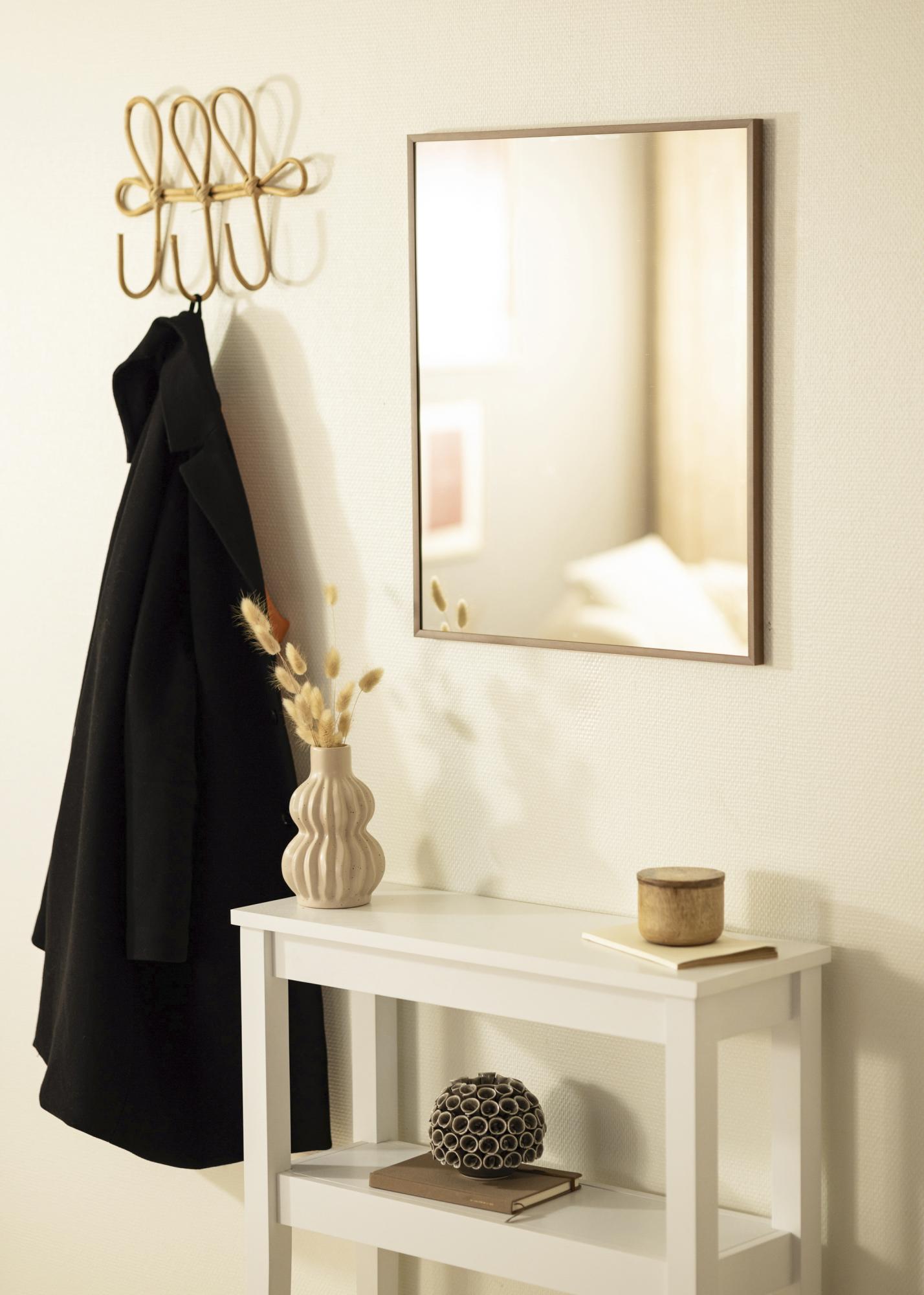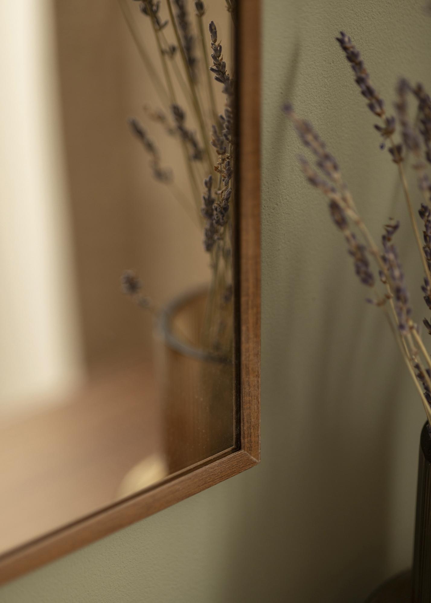 Šis sieninis veidrodis yra puikus stiliaus ir funkcionalumo derinys. Rėmas pagamintas iš aliuminio ir yra vos 10 mm pločio, suteikiantis elegantišką, minimalistinę išvaizdą. Veidrodis priklauso sieninių veidrodžių serijai, kurią sudaro įvairių spalvų ir dydžių veidrodžiai, o šis variantas yra medžio spalvos, 51,1x61,1 cm dydžio.