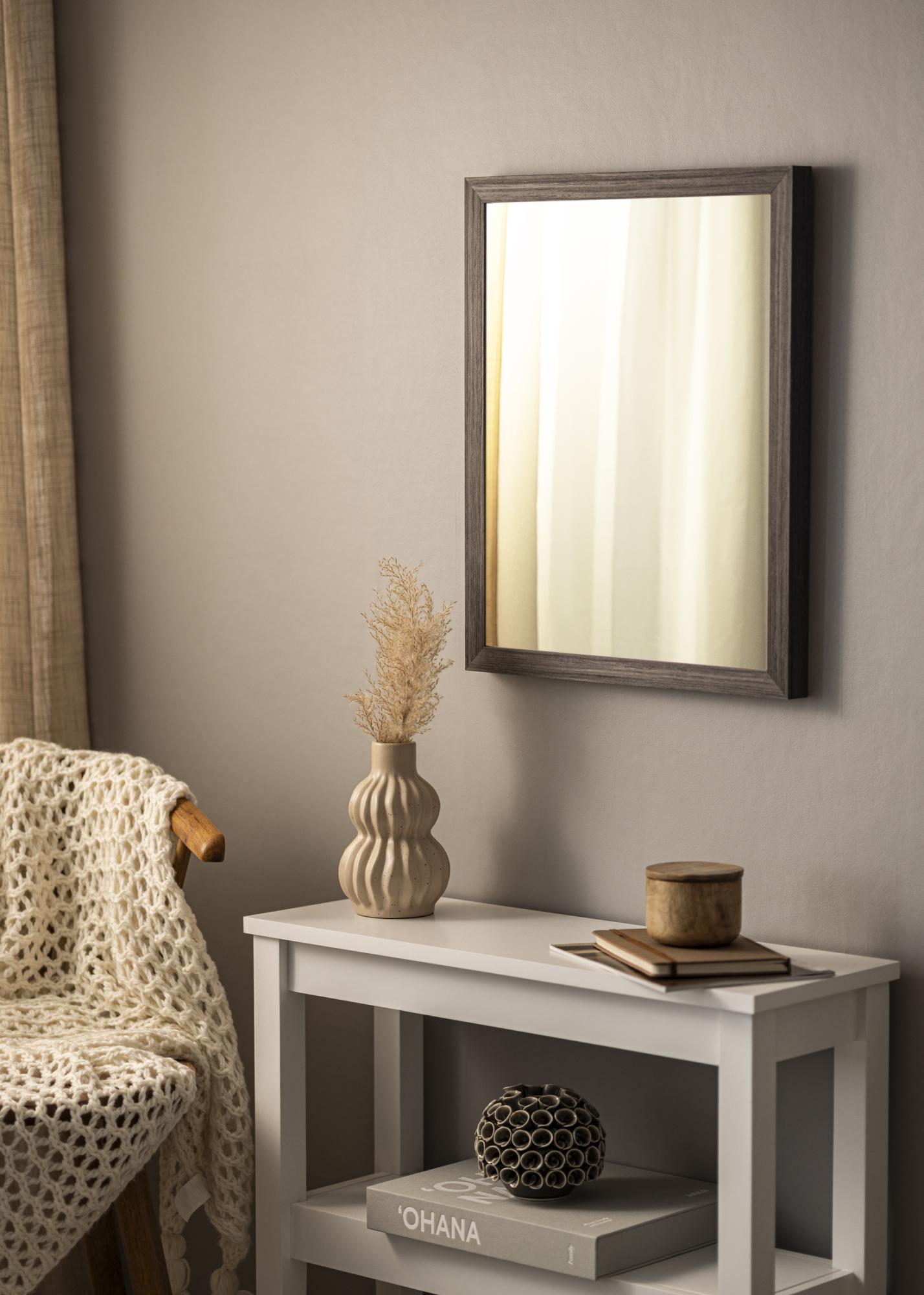 Veidrodis Cotswold Pilkas yra užsakomas veidrodis, kurį gaminame, kad jis atitiktų jūsų poreikius. Su savo 28 mm pločio rėmeliu ir 33 mm gyliu, šis veidrodis siūlo puikią balansą tarp funkcionalumo ir estetikos. Rėmas pagamintas iš pušies ir turi tamsią medžio apdailą su aiškiai išreikšta struktūra, kuri sustiprina jo natūralią išvaizdą ir suteikia kambariui šiltą ir kviečiančią atmosferą.