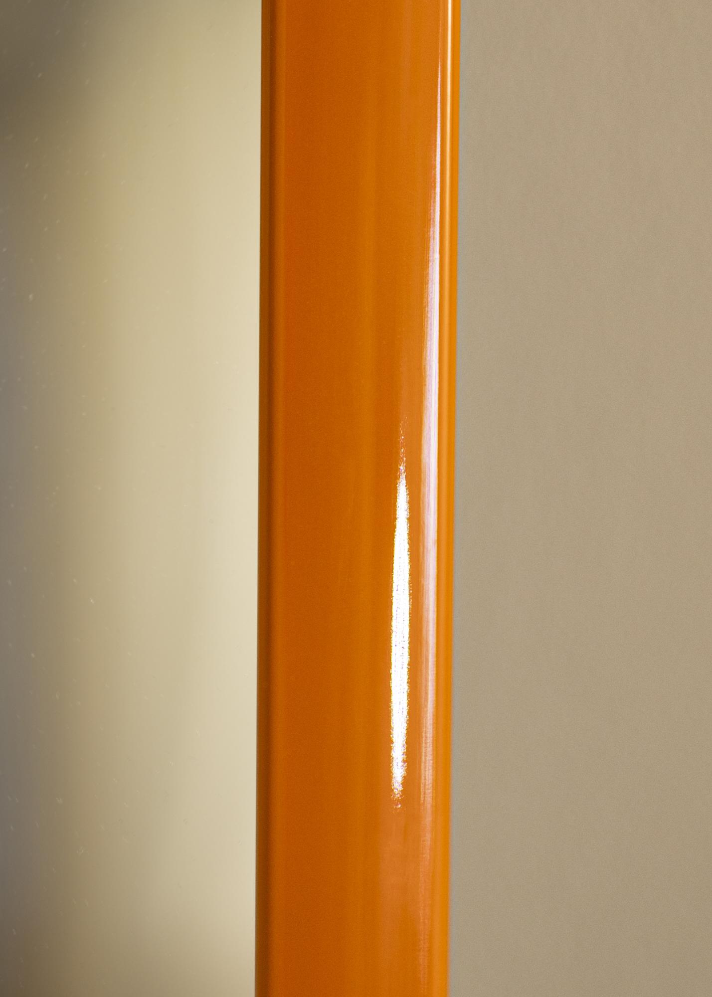 Veidrodžio rėmas yra 23 mm pločio ir turi 13 mm gylį, todėl suteikia stabilią ir tvirtą jausmą, neužgožiant kambario. Pagamintas iš ajos medžio, šis veidrodis suteikia tiek patvarumo, tiek stiliaus. Siauras rėmas suteikia modernų pojūtį, tuo pačiu leisdamas ryškiai oranžinei spalvai būti pagrindiniu dėmesio centru.