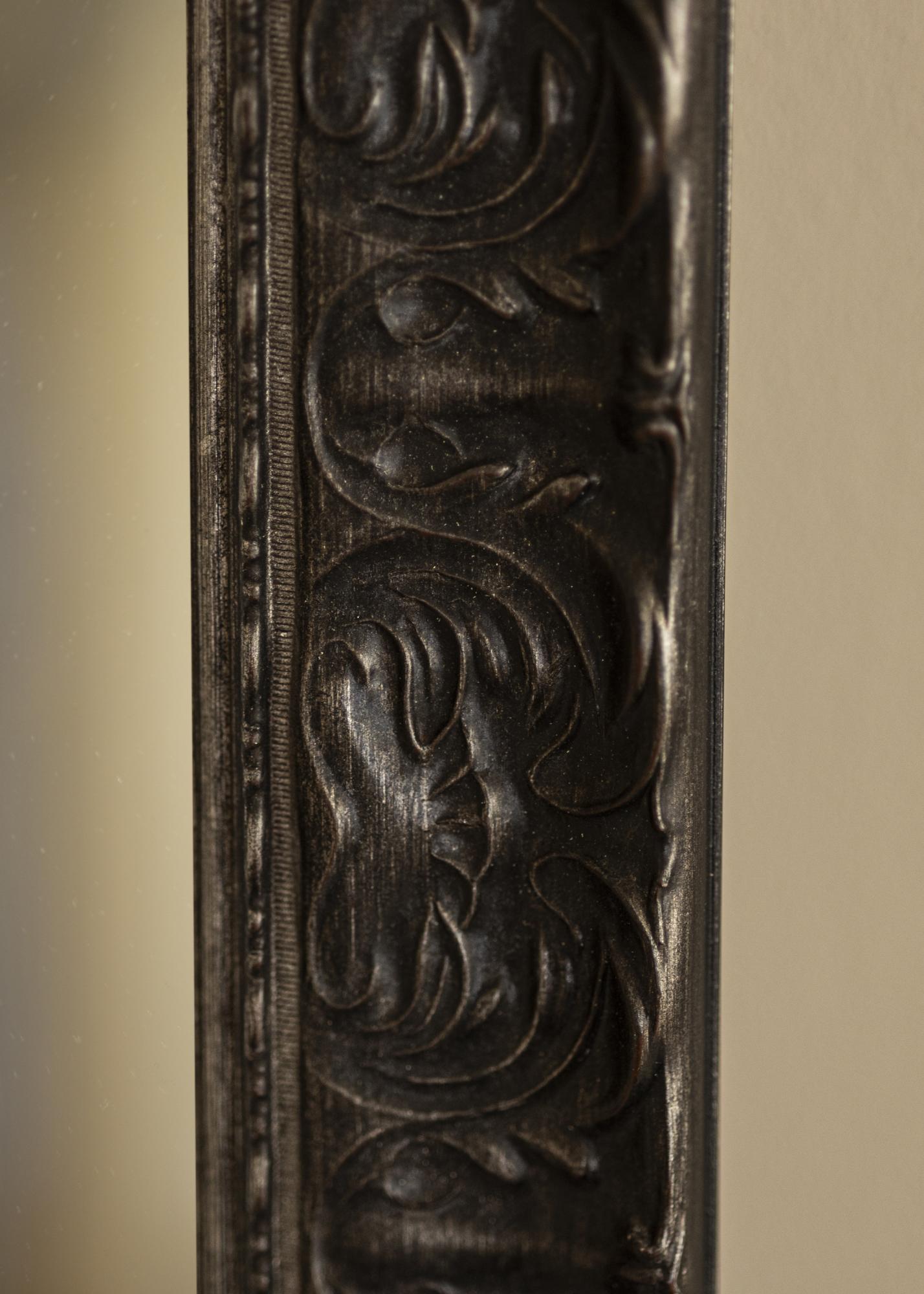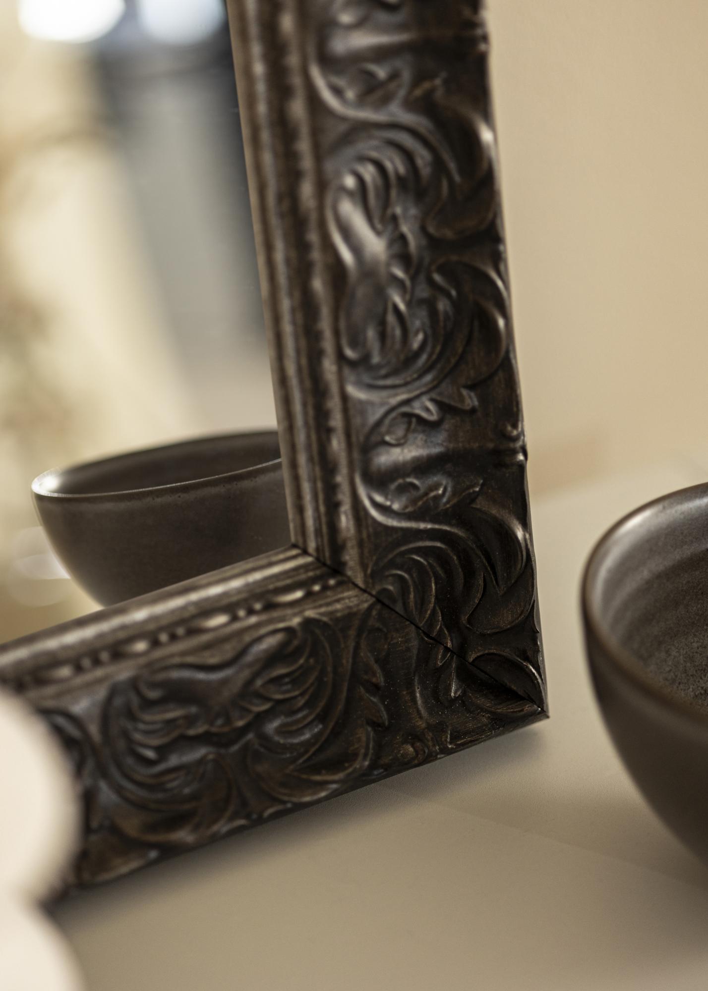Veidrodis Durham Juodas yra elegantiškas ir stilingas veidrodis, kurį gaminame su dideliu rūpestingumu ir precizija. Šis veidrodis puikiai tinka jums, jei ieškote unikalaus interjero elemento, kurį galima pritaikyti pagal jūsų specifinius matmenis. Su savo juoda spalva ir dekoratyvine reljefu, jis siūlo nesenstančias dizaino linijas, kurios tinka daugumoje namų ir aplinkų.