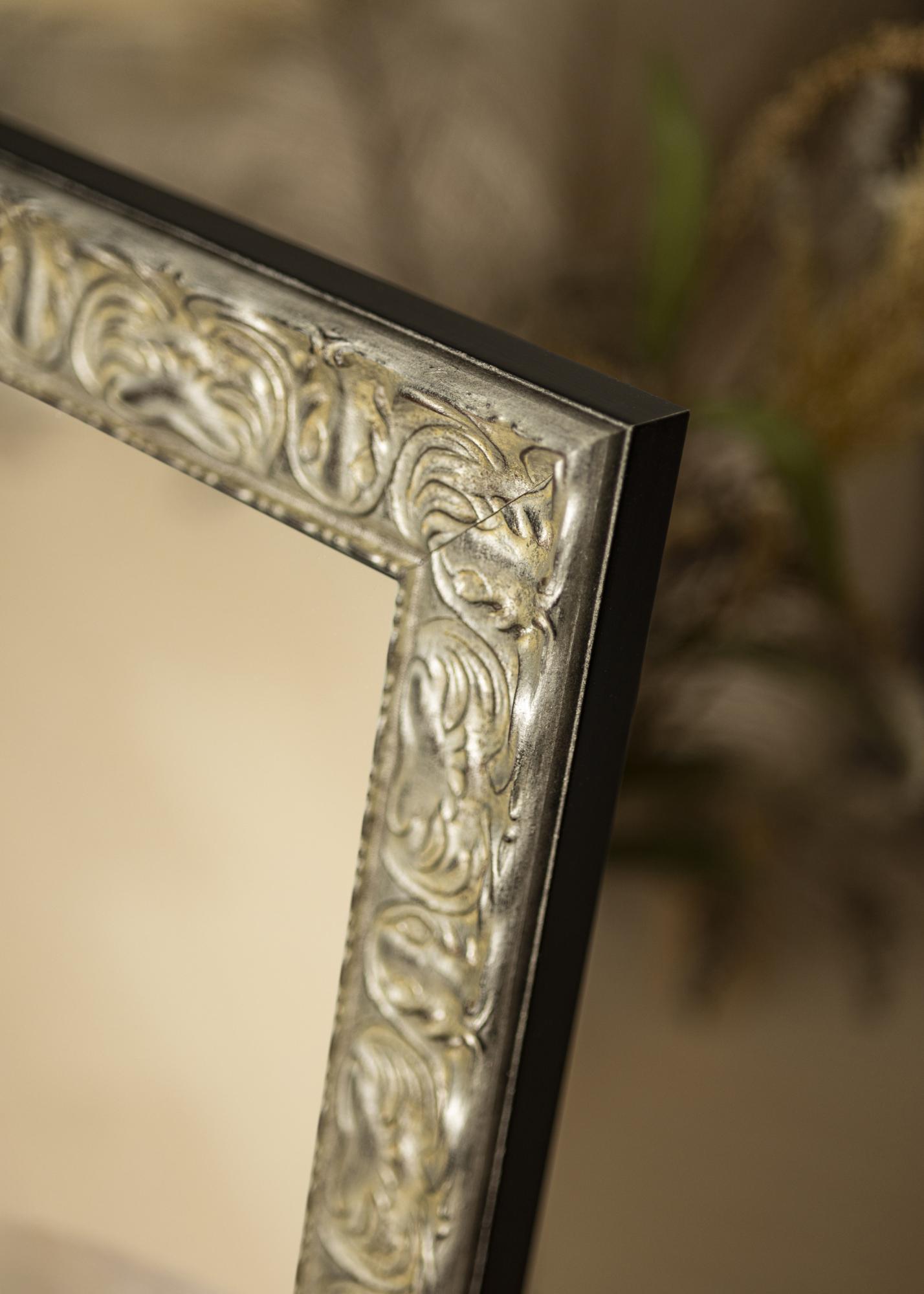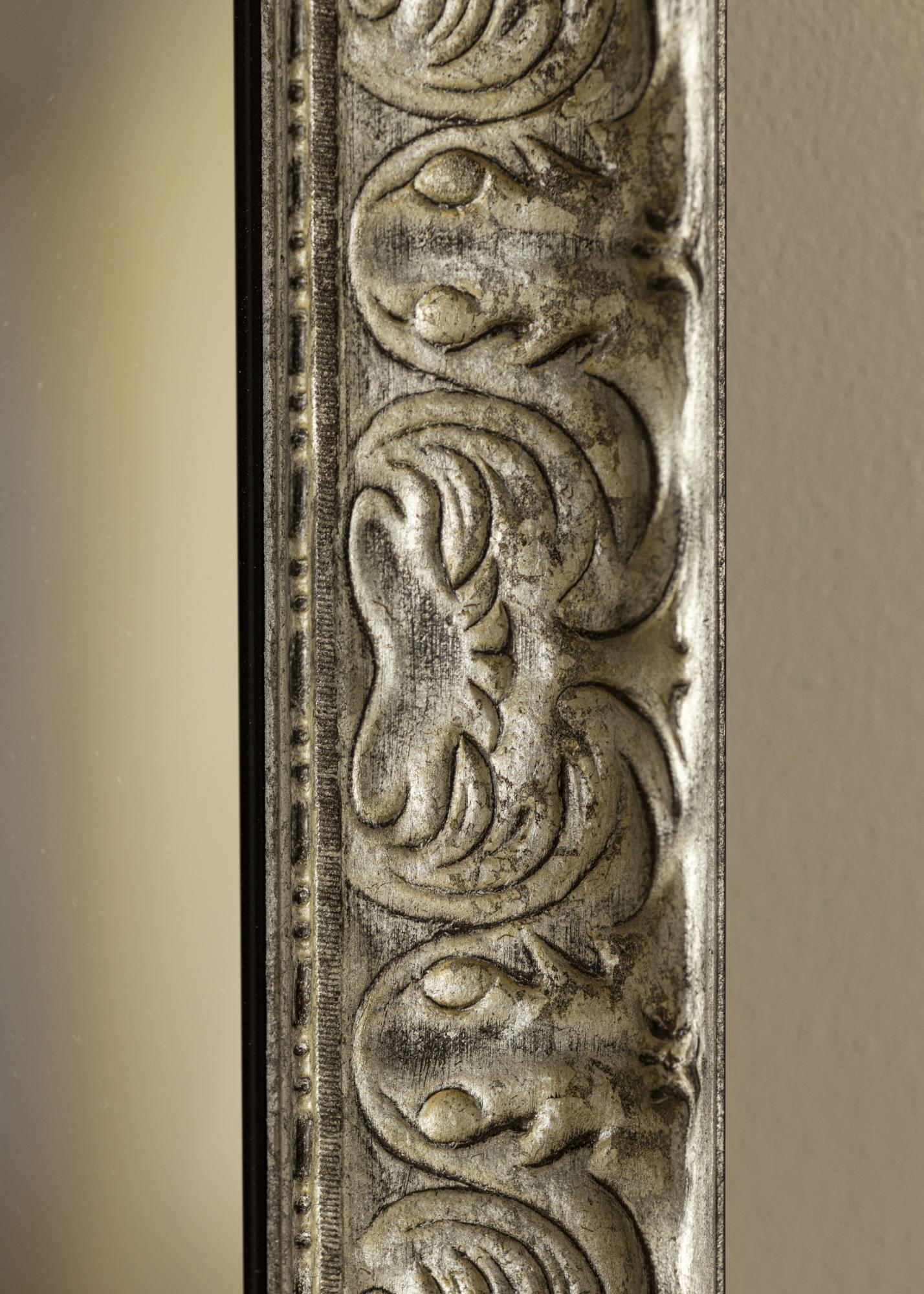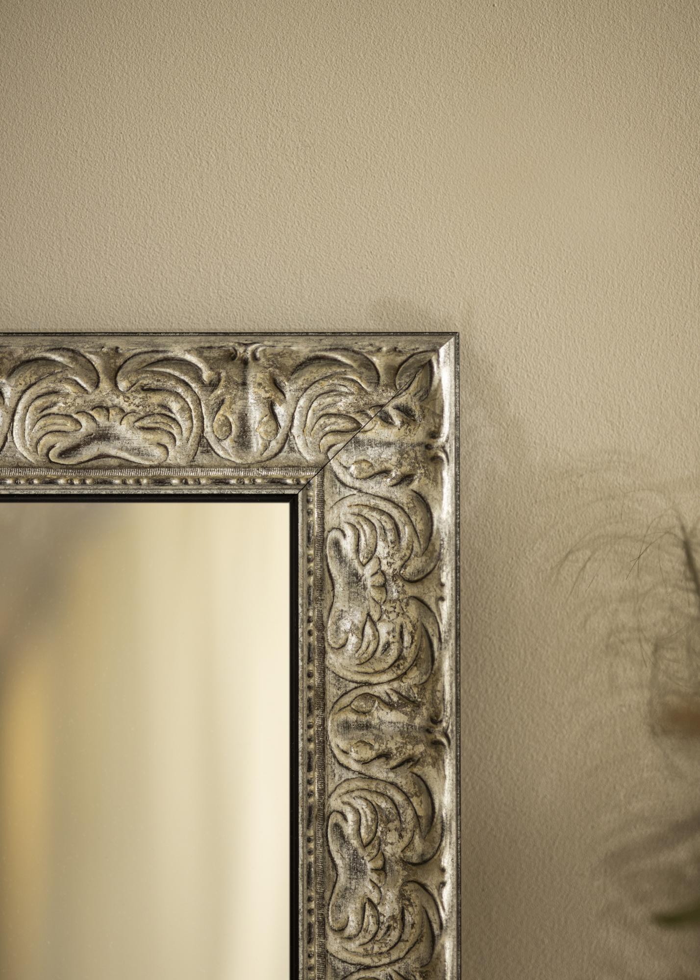 Veidrodis Durham Silver yra pagal užsakymą pagamintas veidrodis, kurį mes gaminame, kad atitiktų jūsų poreikius. Su savo sidabriniu rėmeliu ir antikvariniu paviršiumi jis taps stilingu visų kambarių akcentu. Rėmelio ornamentinė reljefas suteikia veidrodžiui unikalią charakteristiką ir prisideda prie kaimiško, tačiau elegantiško pojūčio.