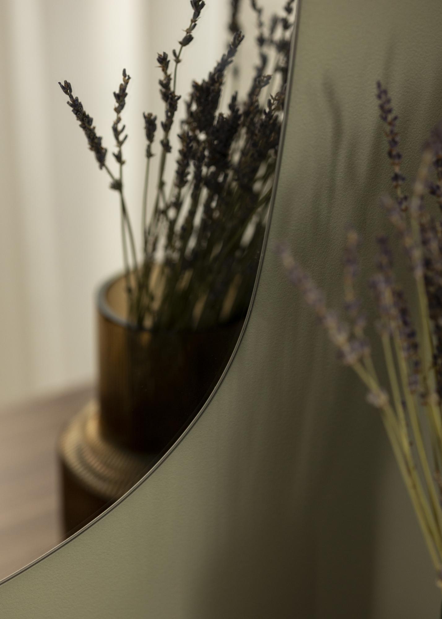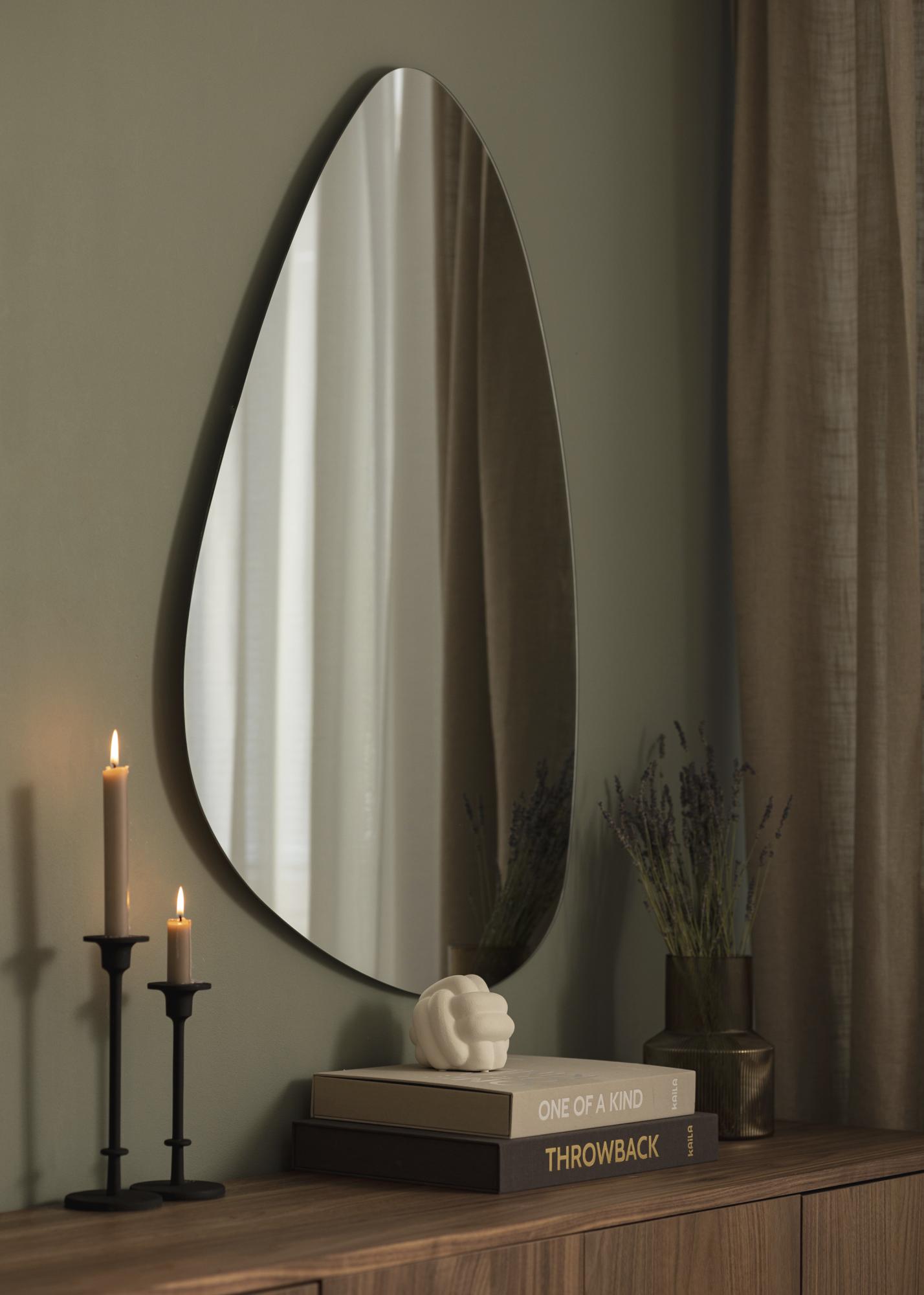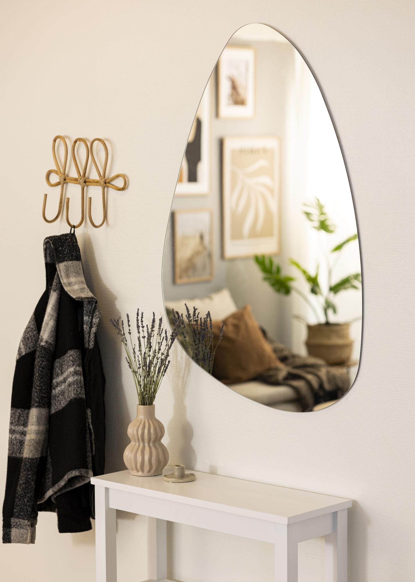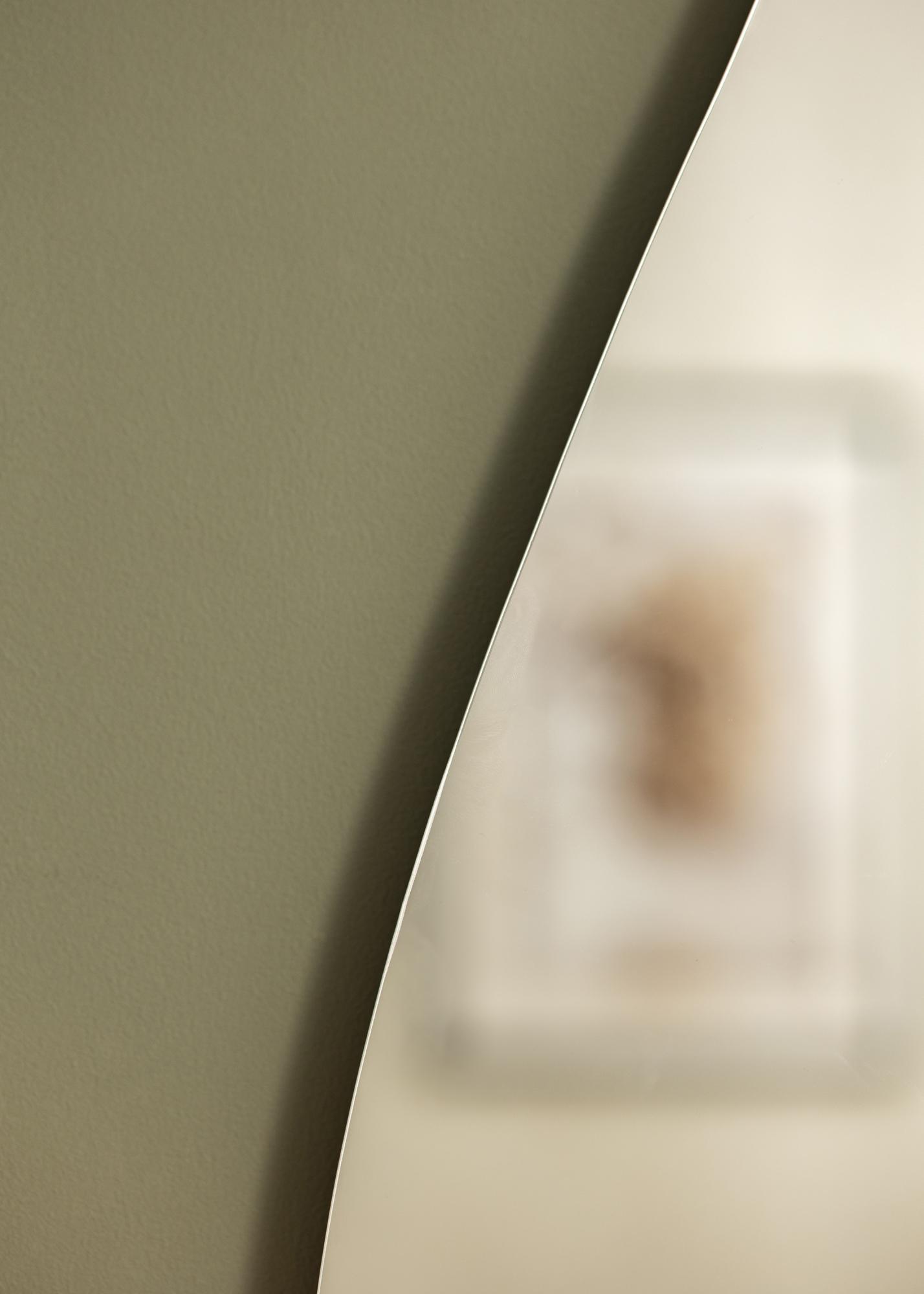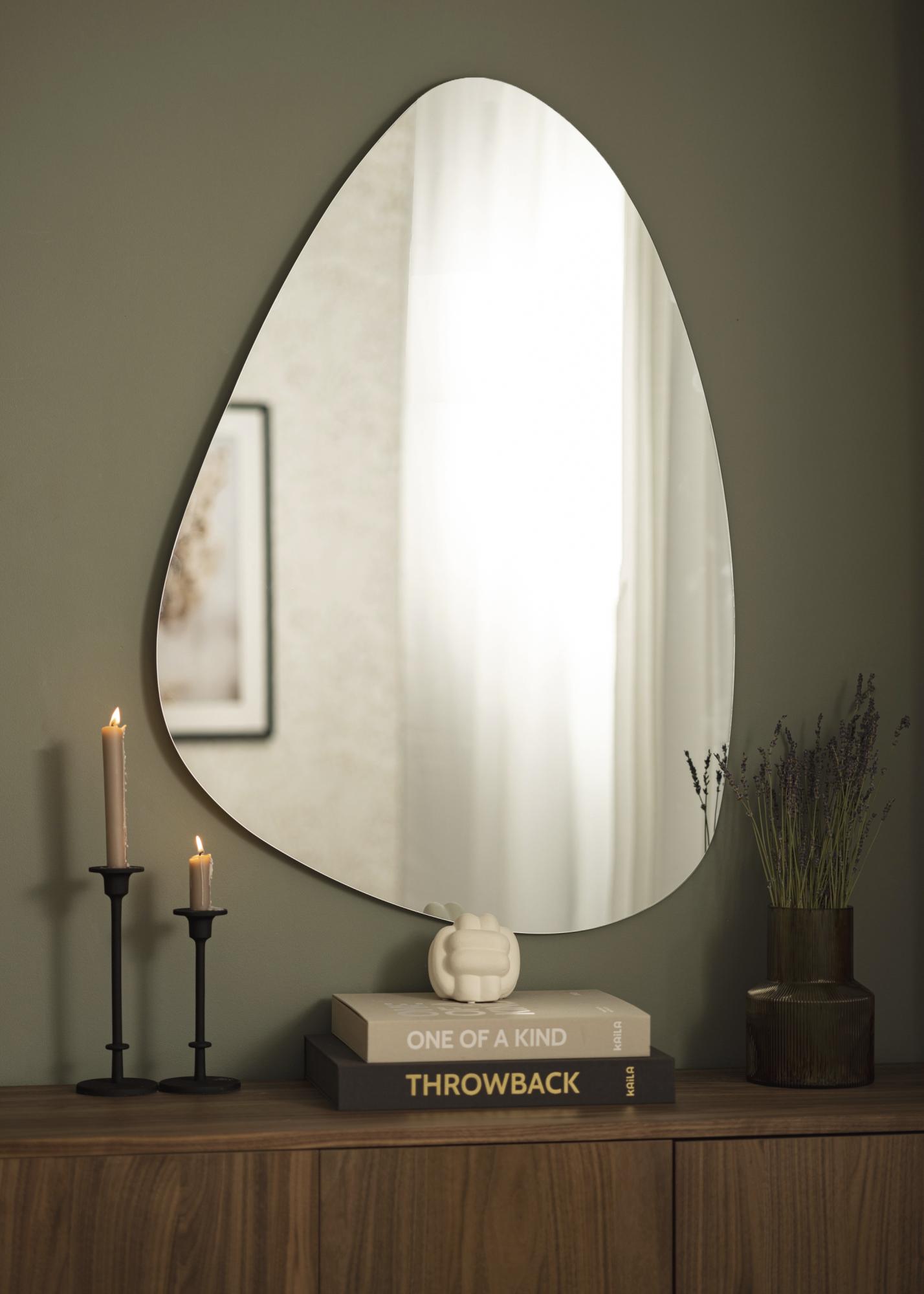 Šis veidrodis yra puikus pasirinkimas tiems, kurie ieško elegantiško veidrodžio minimalistinio stiliaus. Asimetrinė forma derinama su plonu veidrodžio stiklu ir be rėmelių, suteikiant labai elegantišką visumą. Nugaroje yra sieniniai laikikliai.