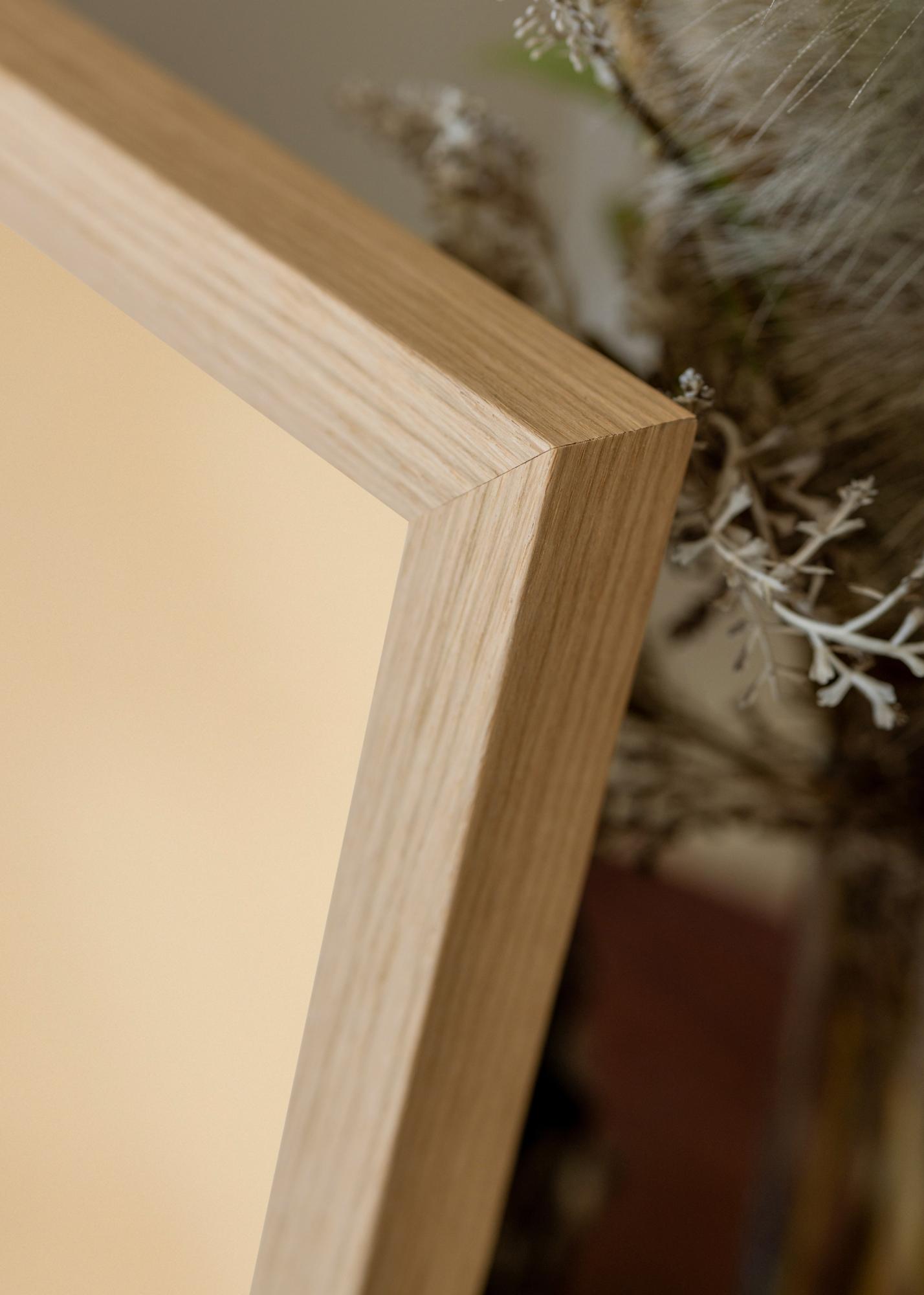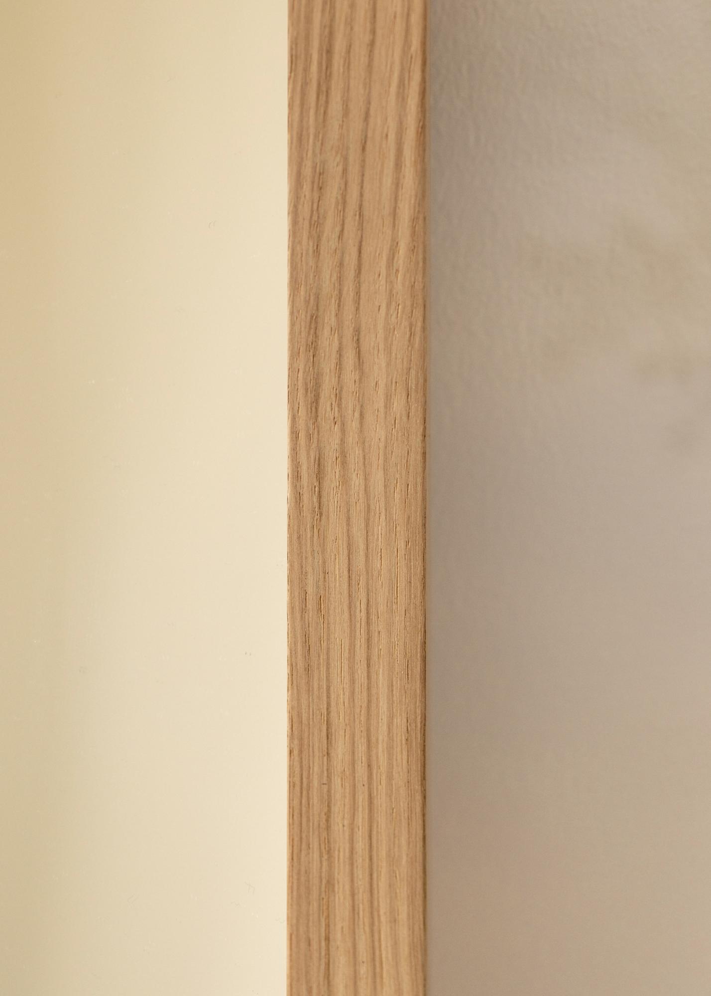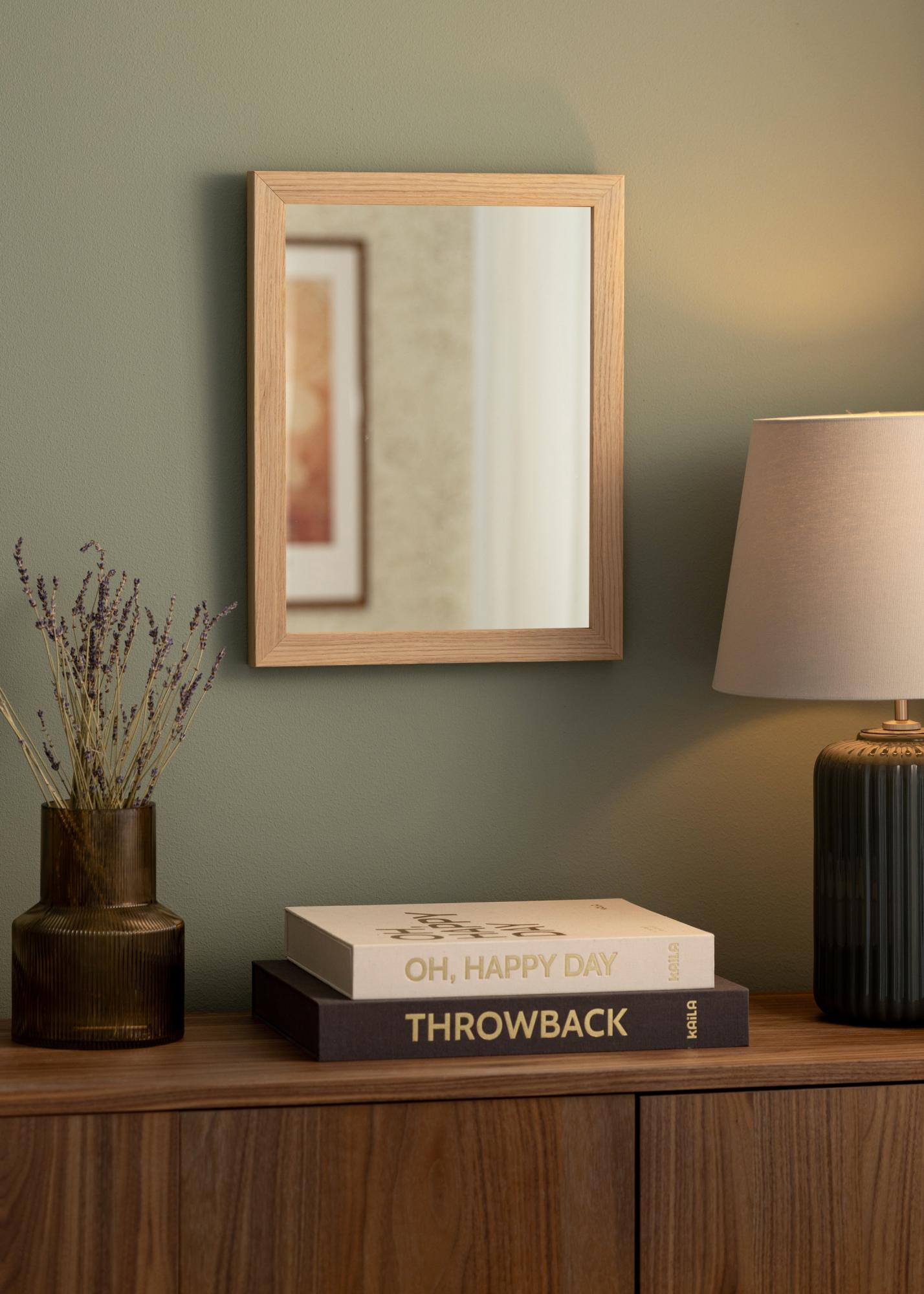 Rėmas pagamintas iš pušies, todėl yra tiek patvarus, tiek lengvas. 32 mm gylis suteikia veidrodžiui stabilią konstrukciją ir užtikrina, kad jis tvirtai laikytųsi ant sienos. Šilta ąžuolo spalva pabrėžia veidrodžio nesenstančią dizainą ir leidžia lengvai derinti su įvairiais interjero stiliais.