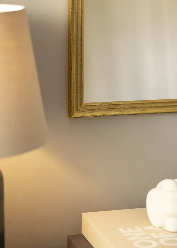 Kai ieškote prabangaus retro stiliaus veidrodžio auksiniais rėmais, "Heby Guld" yra puikus pasirinkimas. Su savo nuostabia senovinio stiliaus aukso spalva ir tvirtu profiliu, "Heby Guld" yra vienas iš mūsų perkamiausių veidrodžių. Pasirinkę dydį patys, galite gauti tiksliai tokio dydžio veidrodį, kokio norite.