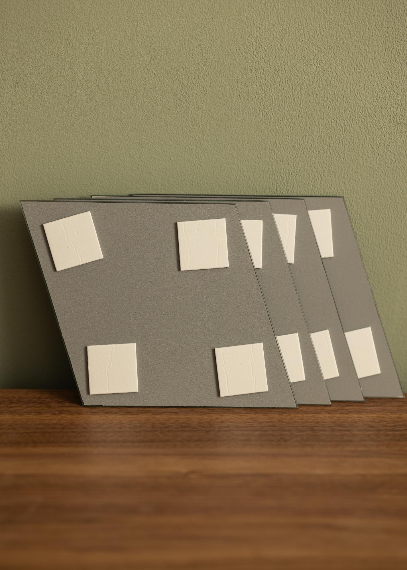 Šie itin madingi veidrodžiai parduodami po 4 vienetus ir komplektuojami su dvipuse lipnia juosta, kurią lengvai pritvirtinsite prie sienos.