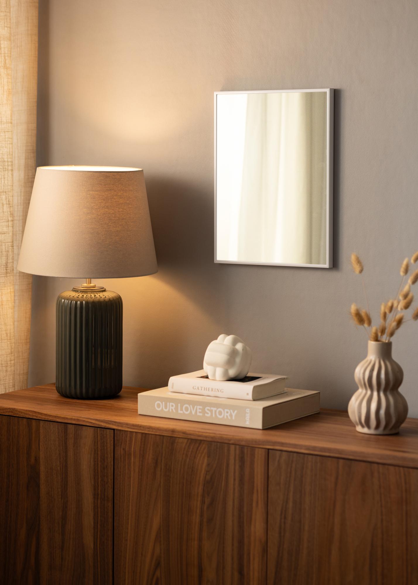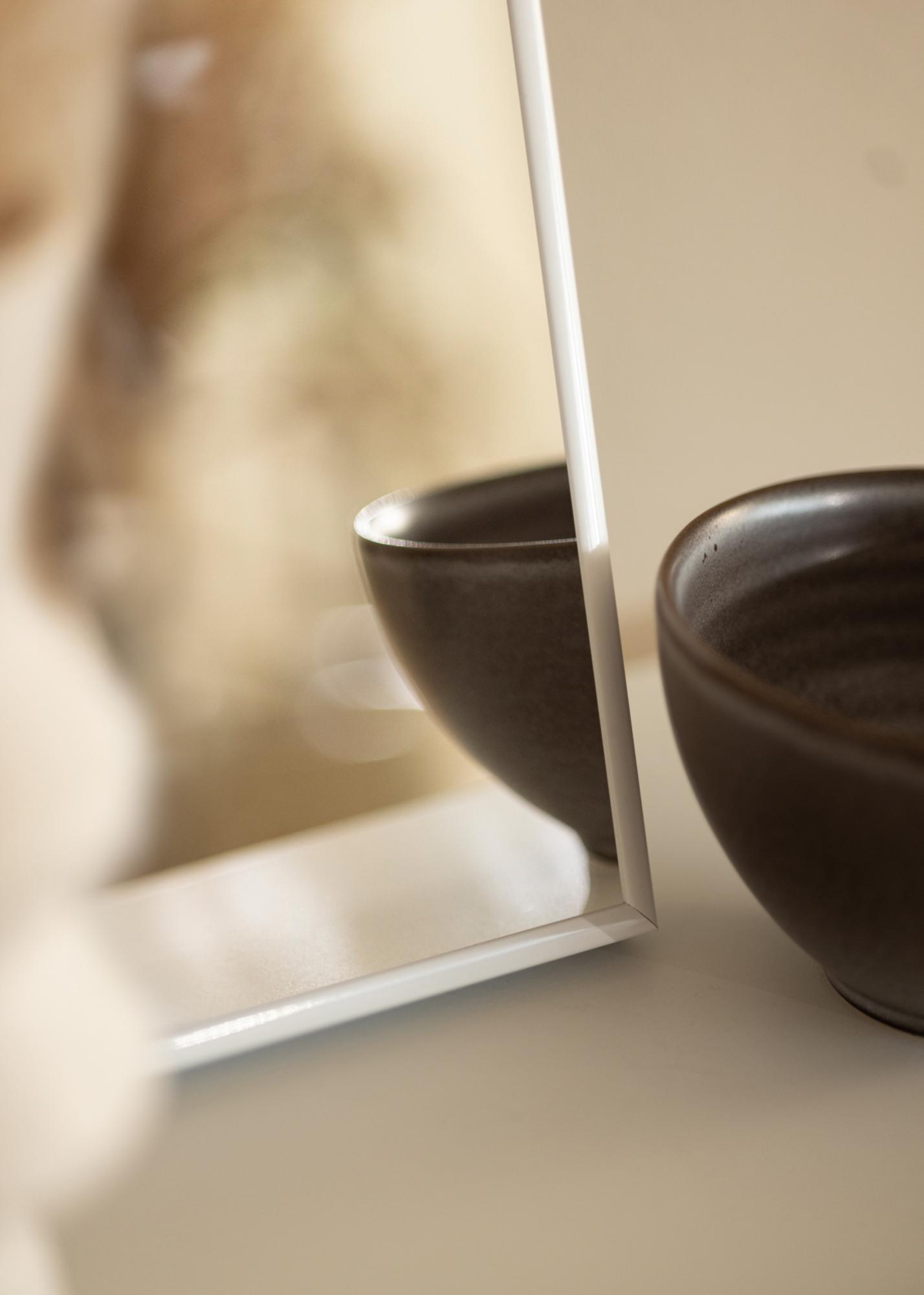 Kopenhaga Balta turi paprastą aliuminio rėmą, kuris puikiai tinka, kai ieškote paprasto ir nepastebimo veidrodžio.