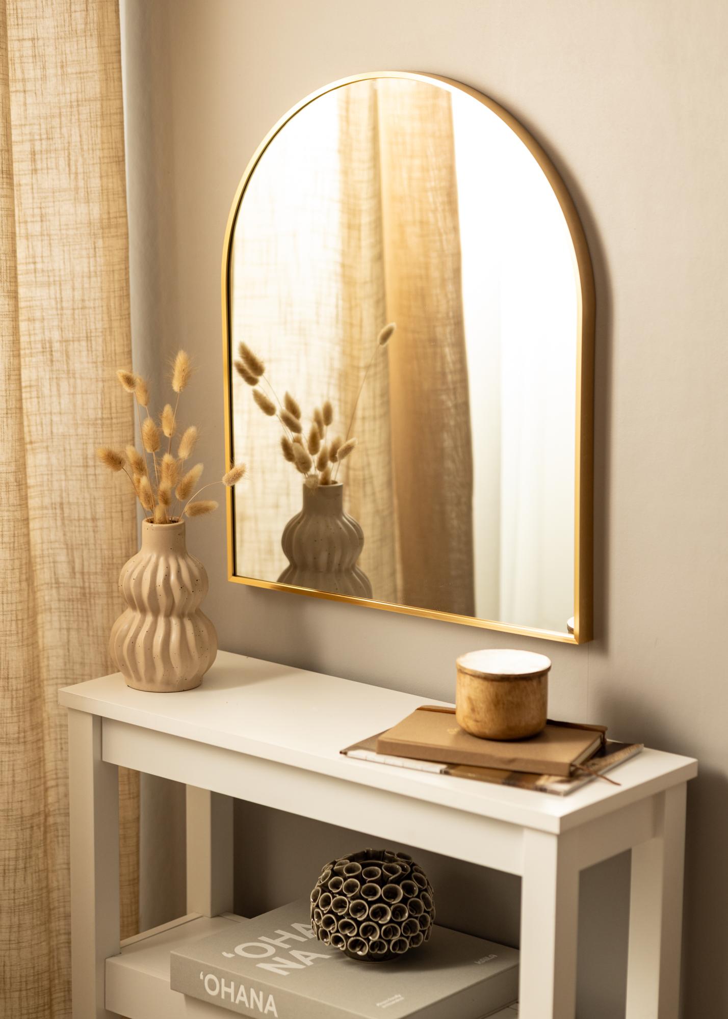 Tai modernus sieninis veidrodis, kuris gali būti naudojamas kiekviename kambaryje. Galite leisti jam tapti madingu akcentu miegamajame ar gyvenamajame kambaryje arba naudoti jį kaip vonios kambario ar prieškambario veidrodį, kad galėtumėte tinkamai atspindėti save, kai ruošiatės dienai. Veidrodis turi 28 mm gylio metalinį rėmą su išskirtiniu auksine atspalviu, suteikiančiu jam nuostabaus išbaigtumo. Stilinga bangos įkvėpta forma dar labiau sustiprina prabangų įspūdį.
