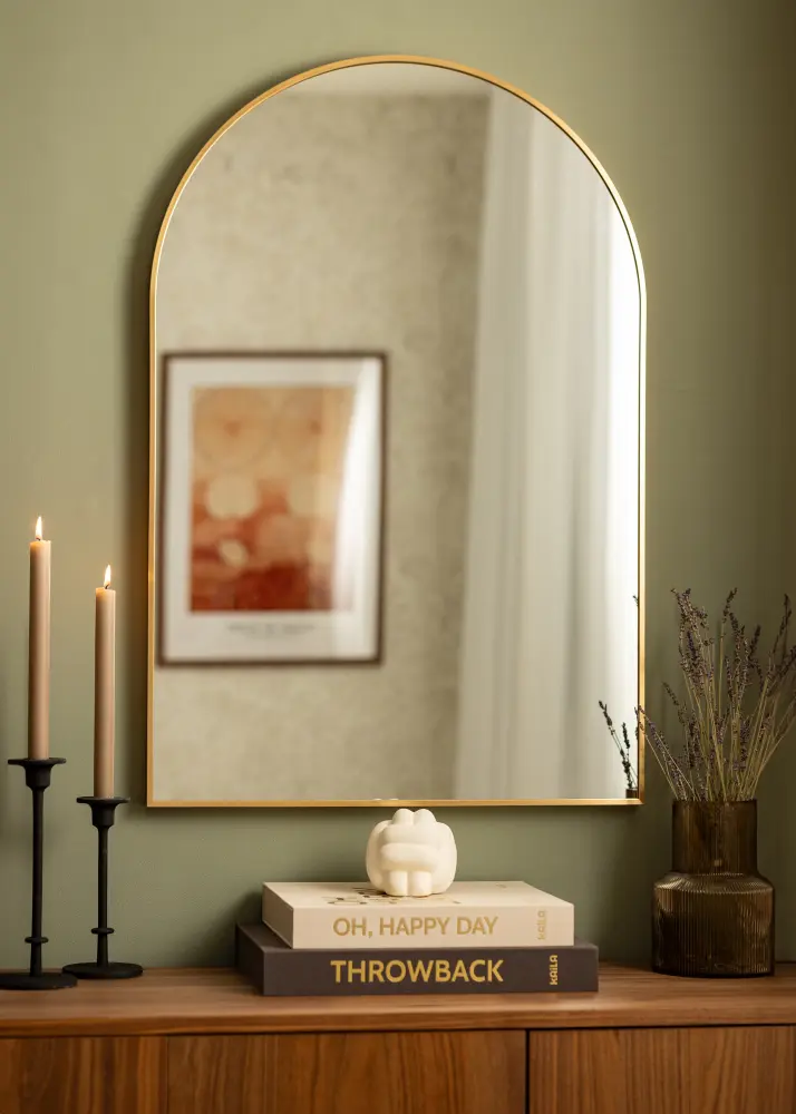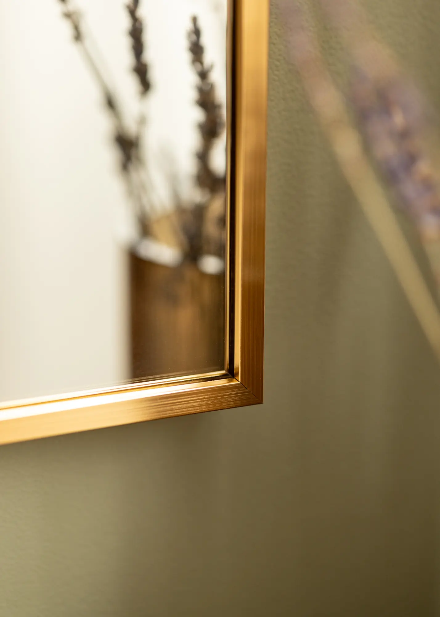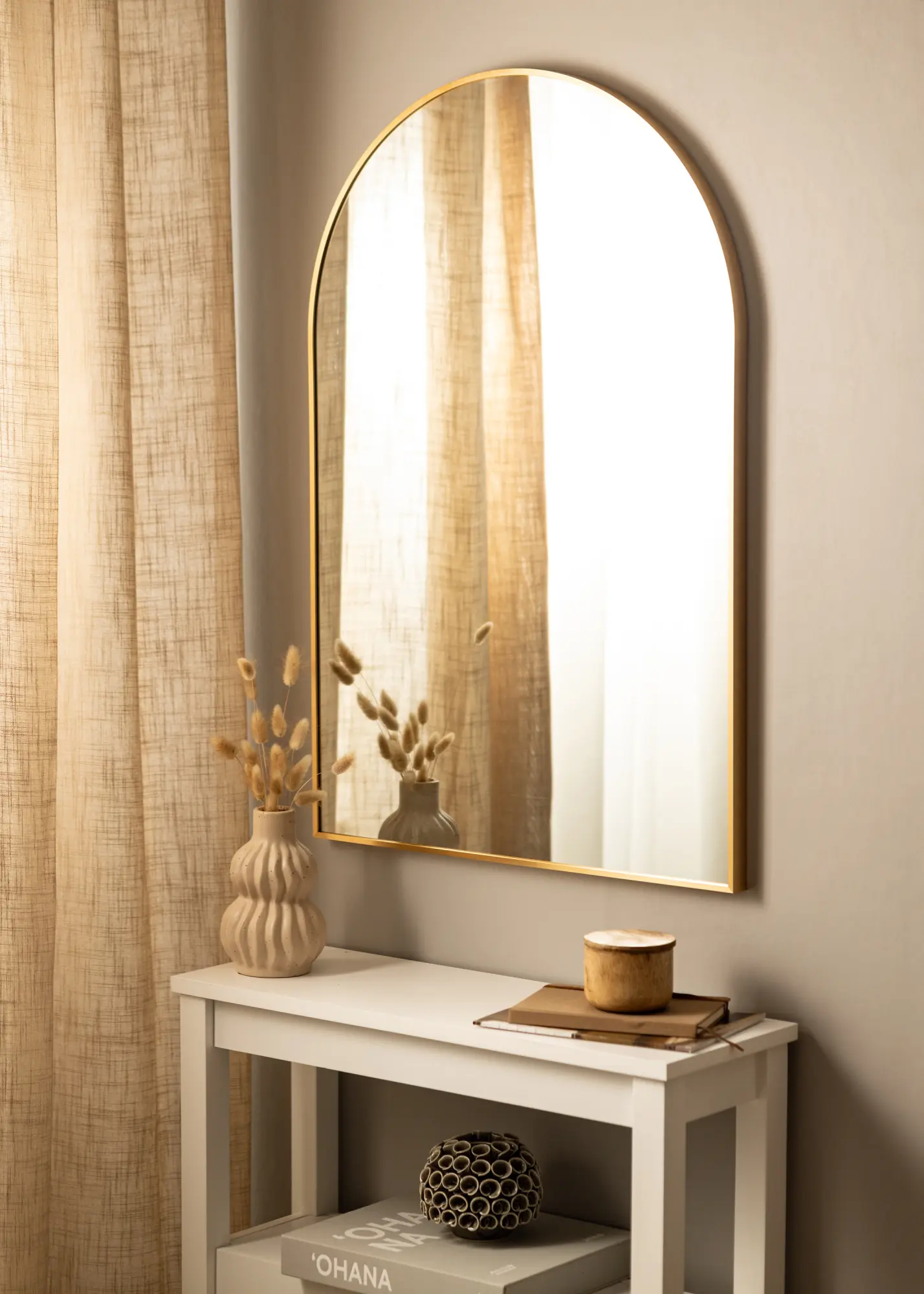 Tai yra modernus sieninis veidrodis, kuris gali būti naudojamas bet kuriame kambaryje. Jį galite paversti madingu akcentu miegamajame ar svetainėje arba naudoti kaip vonios arba prieškambario veidrodį, kad galėtumėte gerai atsispindėti ruošdamiesi dienai. Veidrodis turi 28 mm gylio metalinį rėmą, su išskirtiniu auksiniu atspalviu, kuris suteikia jam puikų rafinuotumą. Stilinga, bangų įkvėpta forma dar labiau sustiprina prabangų išraišką.