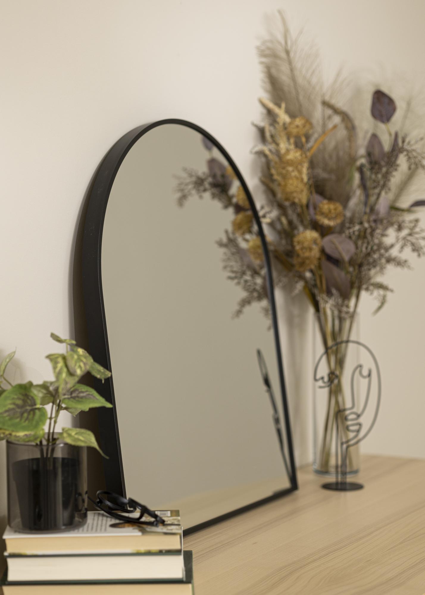 Tai puikus pasirinkimas tiems, kurie ieško moderniai sukurto veidrodžio su madinga arkinės formos išvaizda ir stilingu juodu rėmu. Veidrodžio rėmas yra 28 mm gylio ir pagamintas iš metalo. Šis veidrodis taps išskirtine dekoratyvine detale prieškambaryje ar svetainėje, kur jis gražiai atspindės šviesą iš visų kambario šviesos šaltinių. Tvirtas medžiagos pobūdis leidžia jį naudoti ir vonios kambaryje.