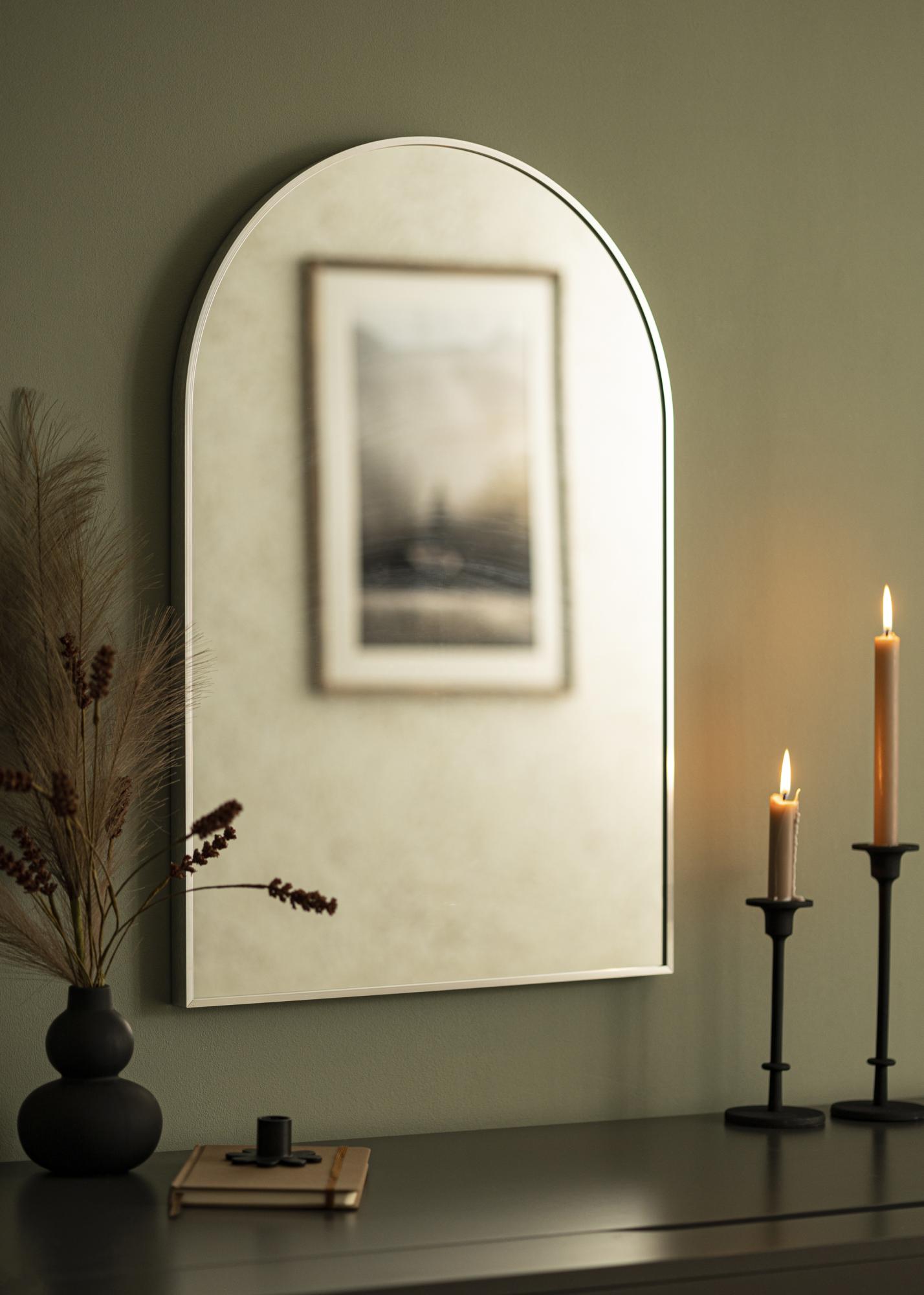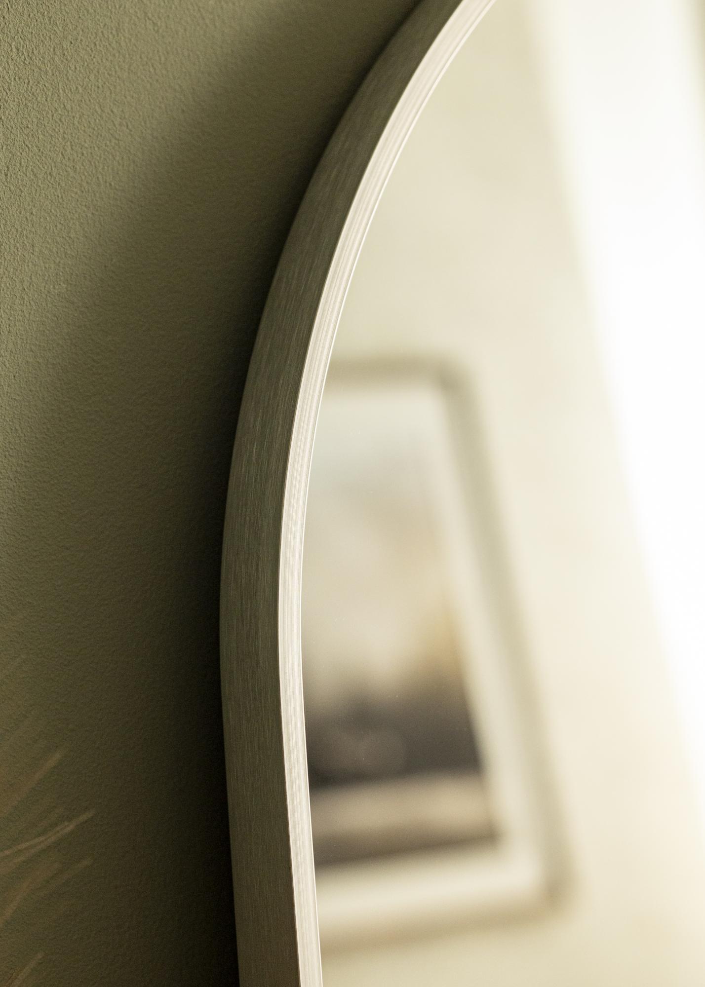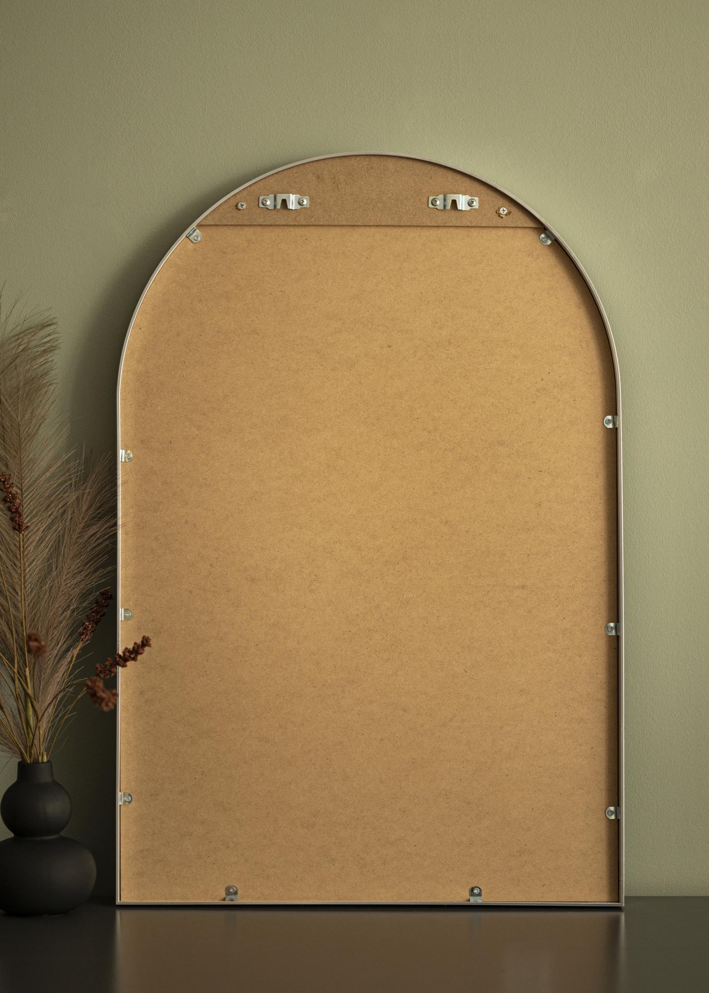 Šis sieninis veidrodis yra tiek madingas, tiek funkcionalus – kitaip tariant, puikus pasirinkimas kiekvienuose namuose! Arkinis dizainas papildo 28 mm gylio rėmas sidabriniu atspalviu, suteikiančiu visam veidrodžiui modernų išvaizdą. Rėmas pagamintas iš metalo.