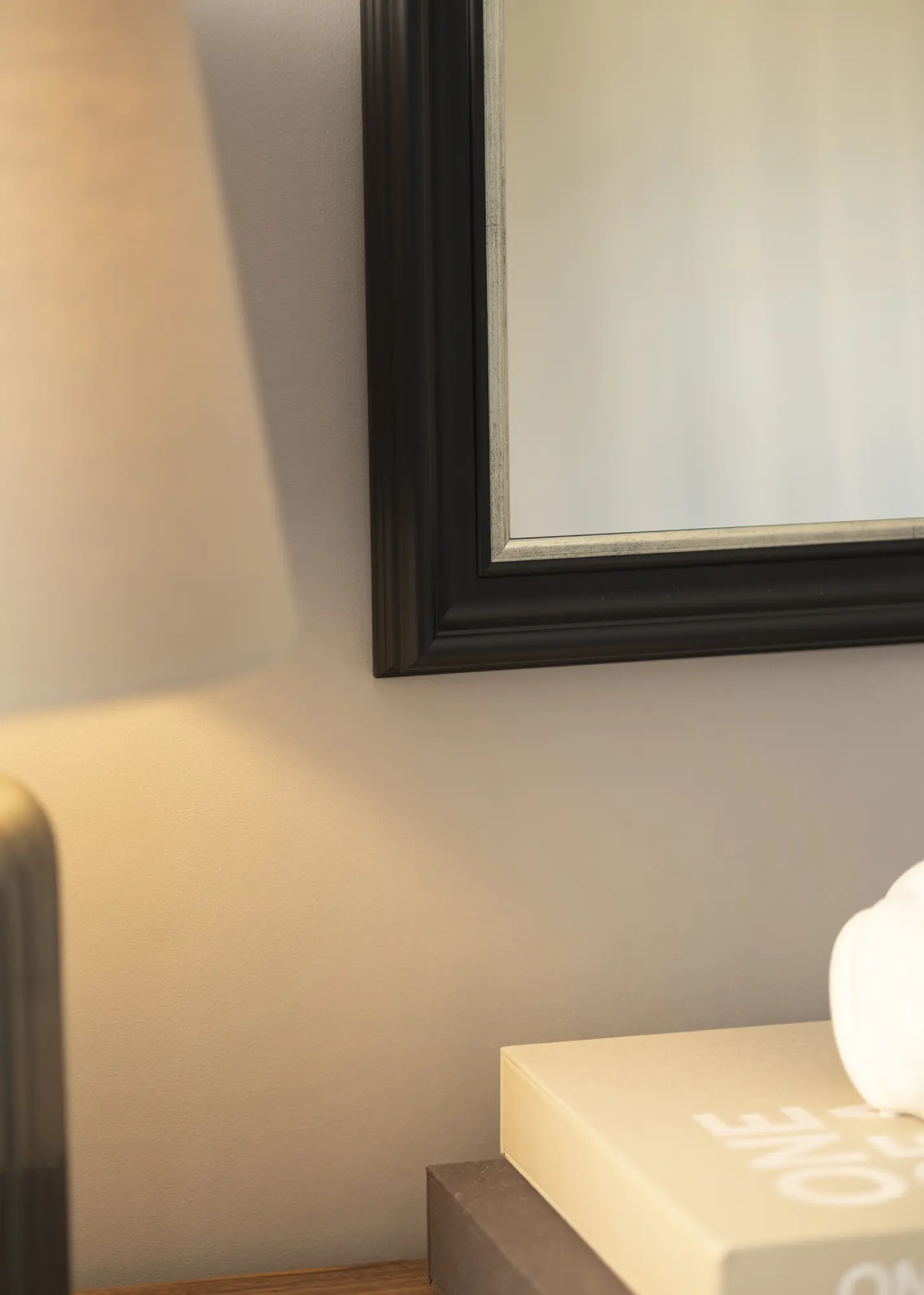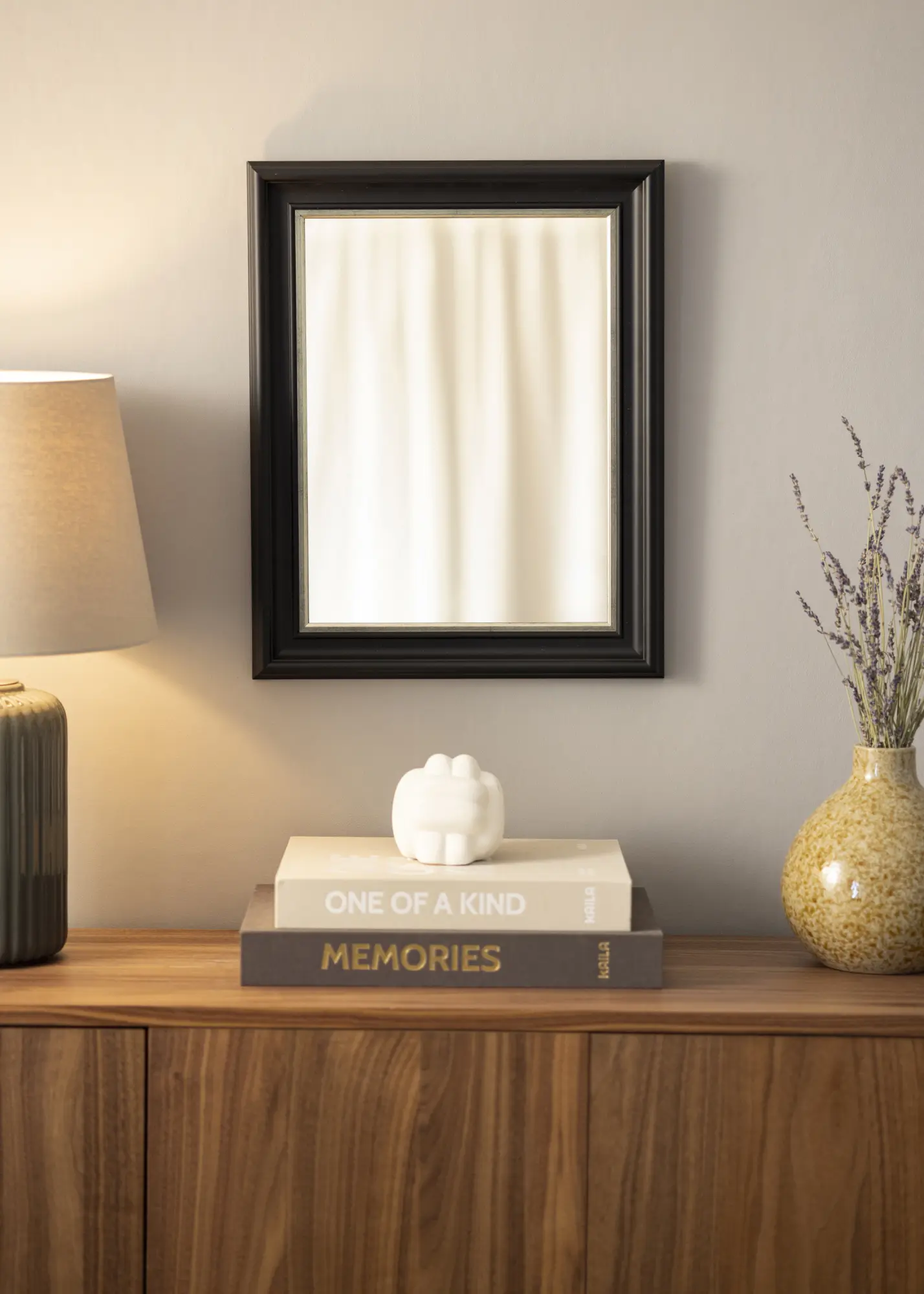 Mora yra vienas iš mūsų prabangiausių veidrodžių su plačiu ir gražiu mediniu rėmu, kurį tikrai pastebėsite. Prie pat veidrodžio yra kraštas iš šlifuoto sidabro, suteikiantis veidrodžiui prabangų įvaizdį.