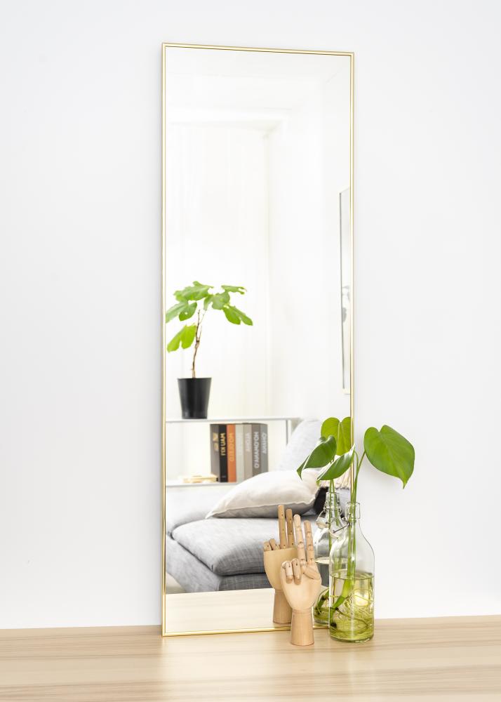 Veidrodis turi aukso spalvos aliuminio rėmą, ir jį lengva pakabinti ant sienos dėl išmaniųjų sieninių laikiklių. Matmenys: 40x120 cm