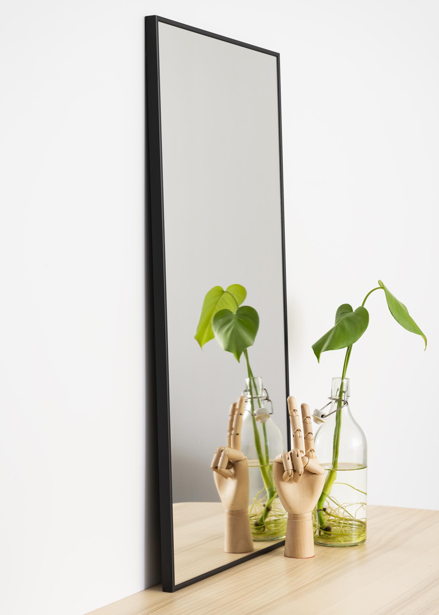 Sku:Klasikinis veidrodis su juodu rėmu, kuris lengvai pakabinamas ant sienos, dėka išmanių sienos laikiklių.