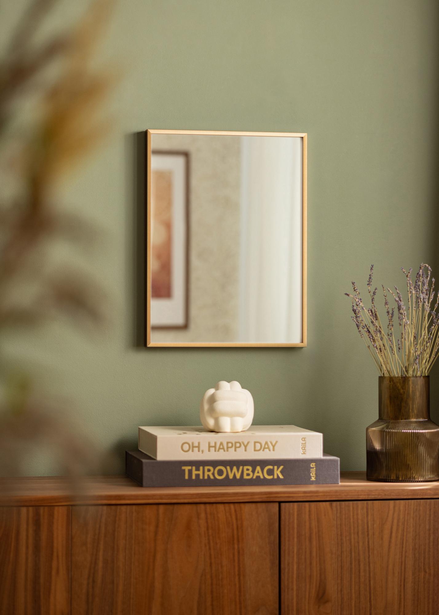 Veidrodžio rėmas yra 7,8 mm pločio ir turi 25,9 mm gylį, suteikdamas stabilumo ir tvirtumo jausmą be kompromisų dėl minimalistinės išraiškos. Aštrūs kampai ir paprastas dizainas sustiprina veidrodžio modernų pobūdį, todėl jis yra puikus pasirinkimas tiems, kas vertina stilingą interjerą.