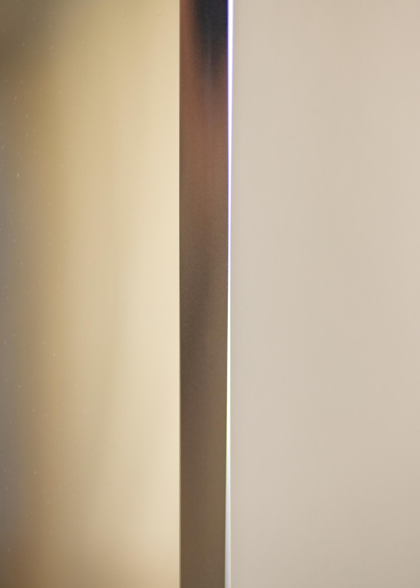 Stilingas aukštos blizgios sidabrinės spalvos veidrodis iš aukštos kokybės, pagamintas Vokietijoje su plonu aliuminio rėmeliu. Minimalistinis rėmelio dizainas puikiai dera namuose su minimalistiniu interjero stiliumi.