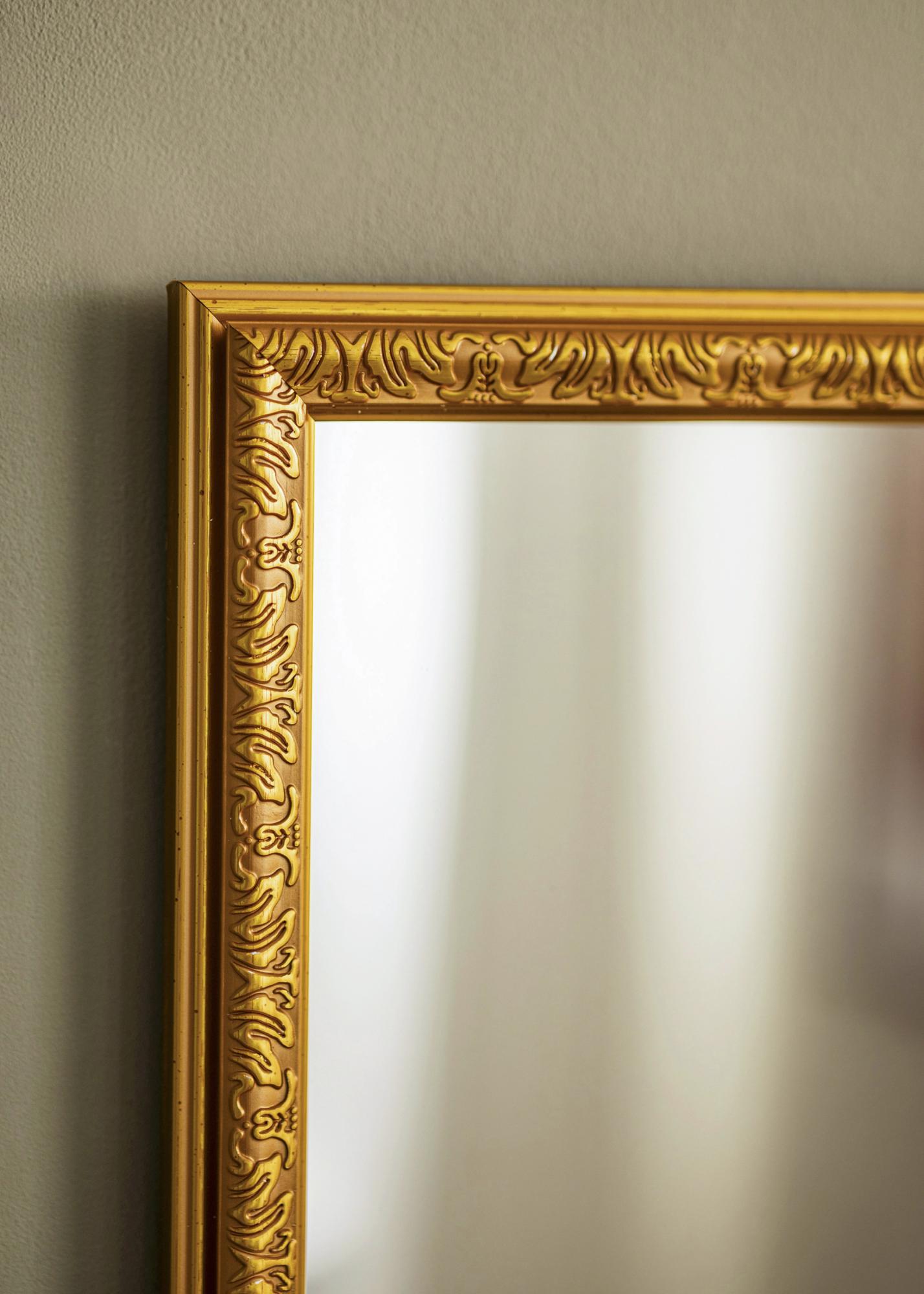 Jei ieškote prabangios auksinės spalvos veidrodžio, galite nustoti ieškoti dabar. Nostalgia aukso yra sieninis veidrodis su 2,8 cm pločio rėmu, elegantišku profiliu ir gražiu dekoratyviniu raštu. Veidrodžio stiklas atspindės šviesą jūsų kambaryje, tuo pačiu veidrodis pats taps stilinga detale ant jūsų sienos. Gale yra sieninis tvirtinimas, palengvinantis pakabinimą.