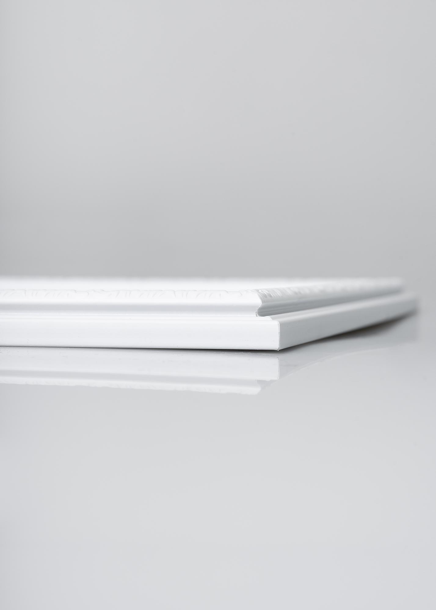 Šis sieninis veidrodis yra elegantiška interjero detalė, kuri gražiai atspindi šviesą iš visų kambario šviesos šaltinių. Balta rėmo juosta suteikia šviesų ir gaivų įspūdį, kurį puikiai papildo rėmo dekoratyvinis profilis ir gražūs raštai.