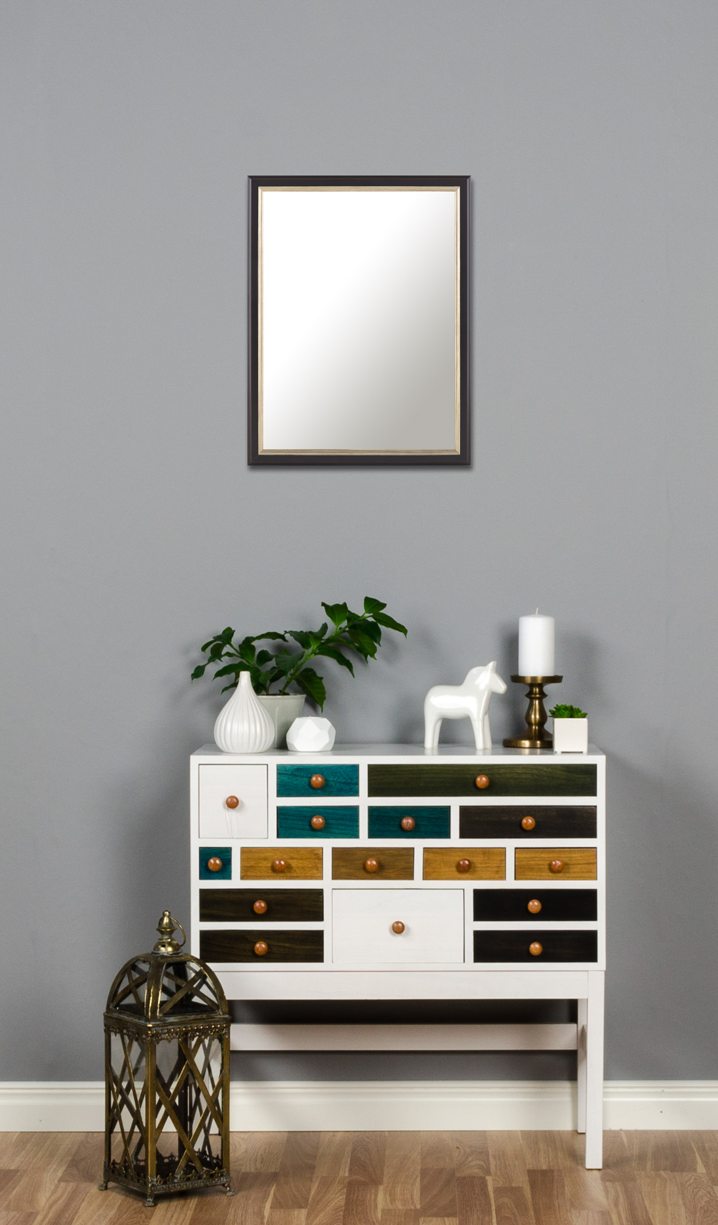 Pasirinkite Nyhyttan, jei ieškote veidrodžio, kuris išsiskirtų ir išlaikytų stiliaus pojūtį! Būtent šis variantas yra rudos ir sidabrinės spalvos su subtiliais raudonos spalvos intarpais.