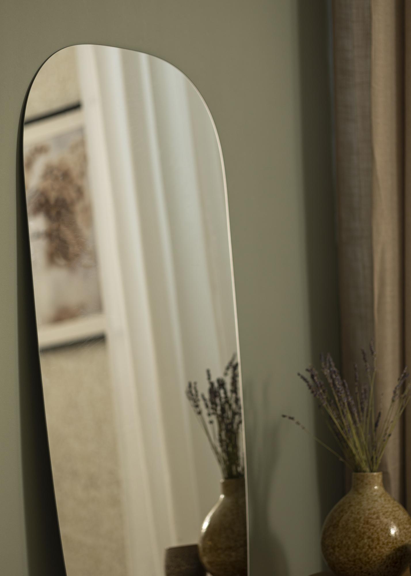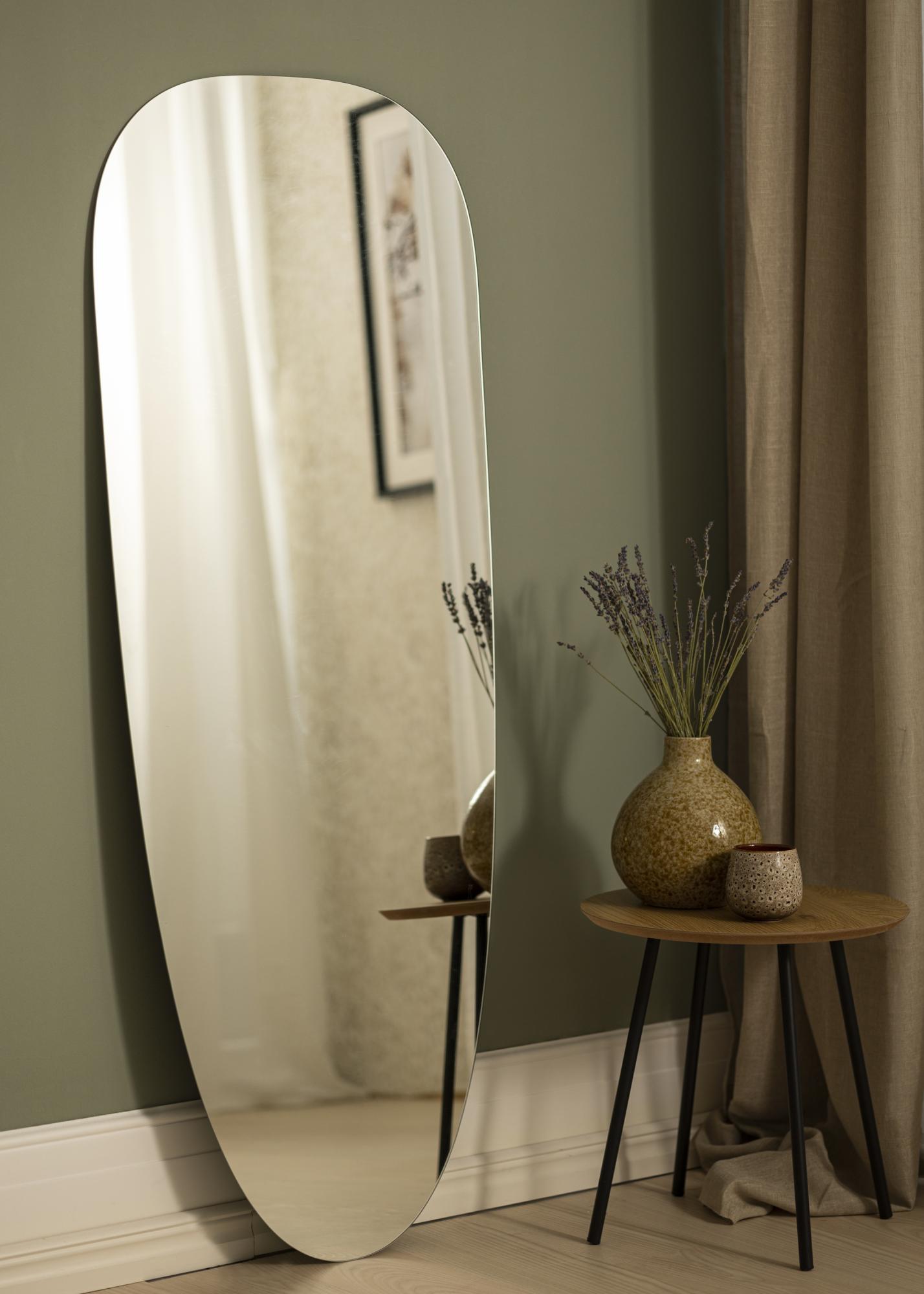 Atraskite unikalų mūsų veidrodžio žavesį, kuris skleidžia eleganciją ir modernumą. Dėl savo dosnių matmenų 55x140 cm, šis veidrodis siūlo pilno ilgio atvaizdą, kuris yra puikus jūsų aprangai patikrinti arba jūsų namams šviesinti ir suteikti daugiau erdvės jausmui. Jo išskirtinis dizainas, primenantis stovintį vandens lašą, prideda meninį potėpį ir veikia kaip įdomi jūsų interjero detalė.