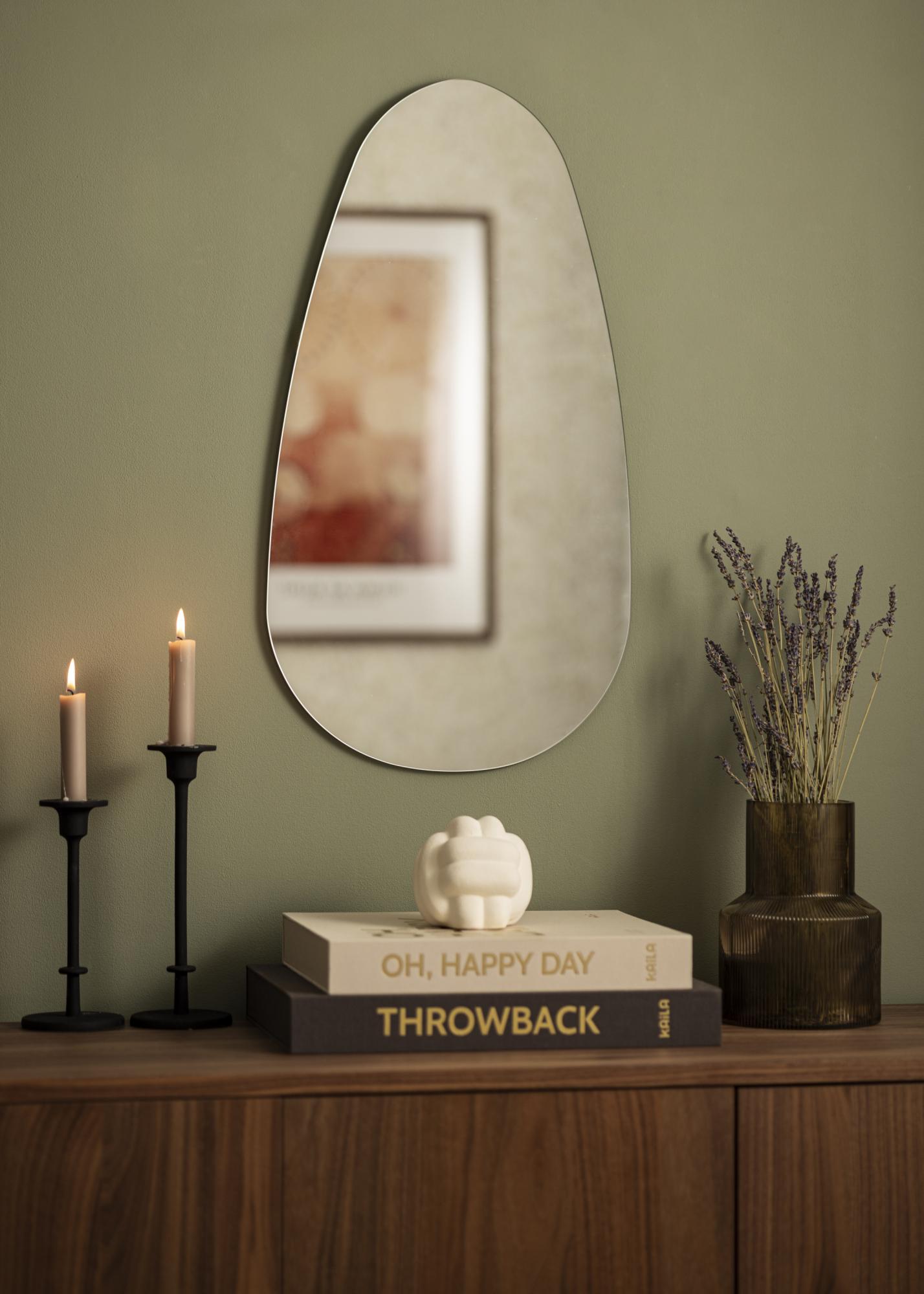 Atraskite unikalų mūsų lašo formos veidrodžio žavesį, nesenstantį aksesuarą, kuris bet kurį kambarį paverčia stiliaus oaze. Su savo 35x65 cm matmenimis šis veidrodis puikiai tinka įvairioms erdvėms, nuo prieškambario iki miegamojo.