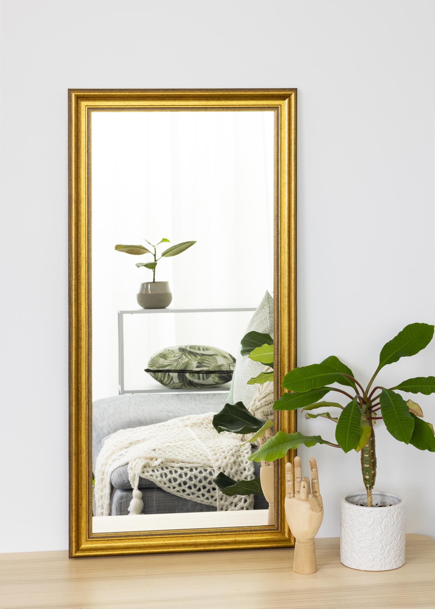 Šis stačiakampis veidrodis turi gražų auksinės spalvos rėmą klasikinio stiliaus. Veidrodis turi šiltą ir elegantišką išvaizdą ir gali papuošti sieną beveik bet kuriame kambaryje.