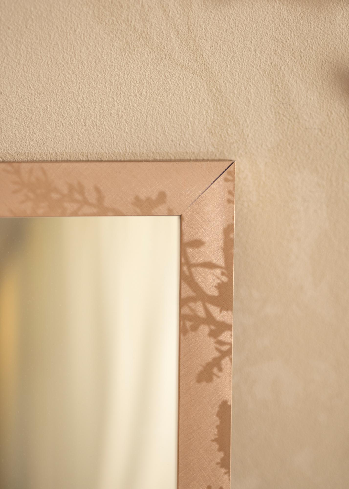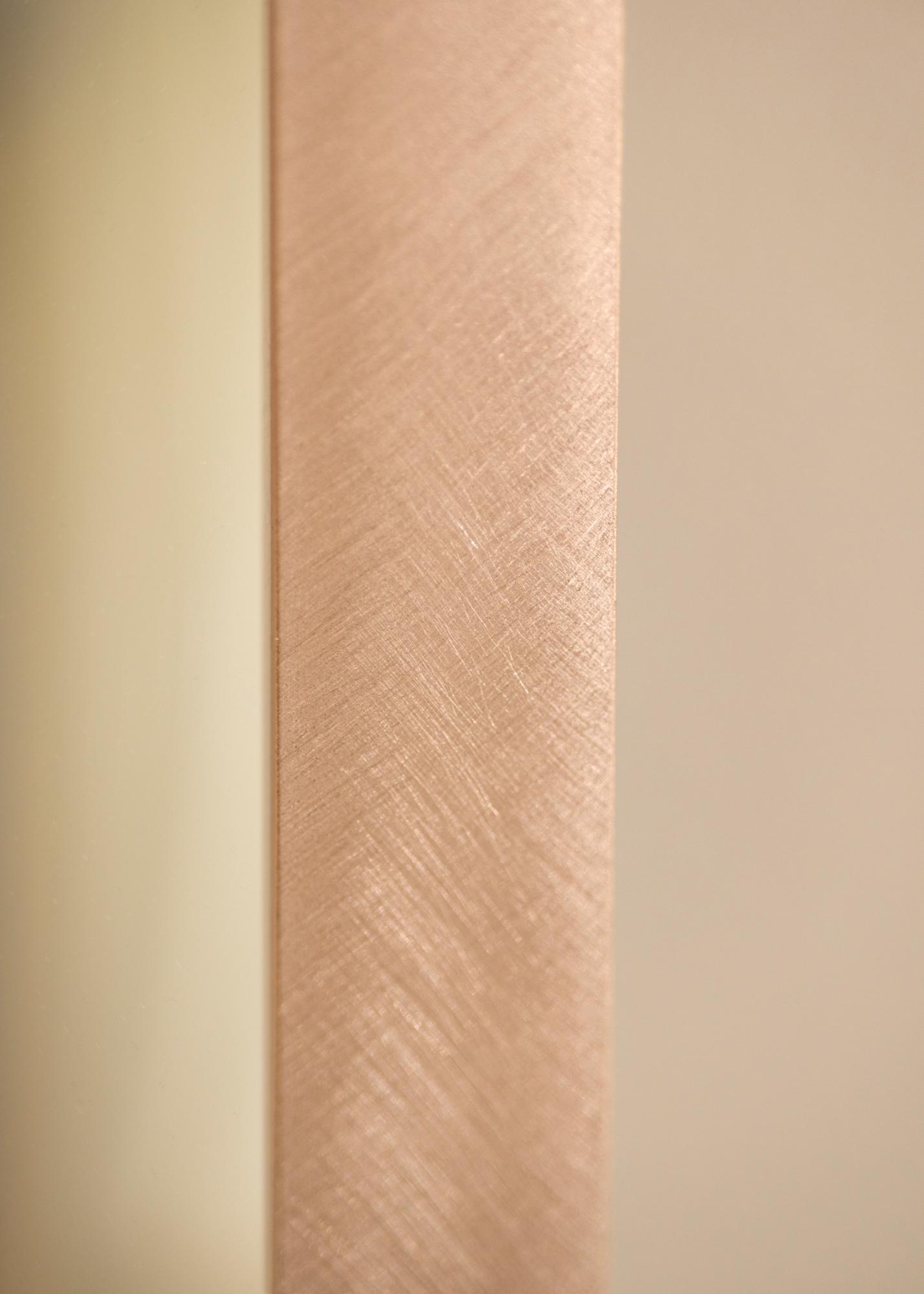 Minimalistinis veidrodis su bronzine aliuminio rėmu, kuris gražiai atrodys tiek koridoriuje, tiek drabužinėje. Elegantiškas veidrodžio rėmo dizainas tinka bet kokio tipo interjerui, tačiau ypač gerai derės minimalistiniame šiauriniame interjere, kuriame gali tapti šiltu elementu vėsiame fone. Veidrodis gali būti naudojamas kambariui apšviesti arba padidinti jo pojūtį, patalpinant taip, kad jis atspindėtų šviesą.
