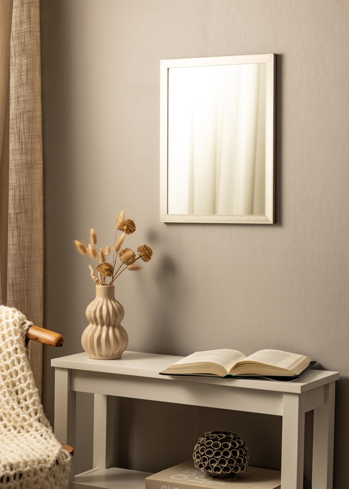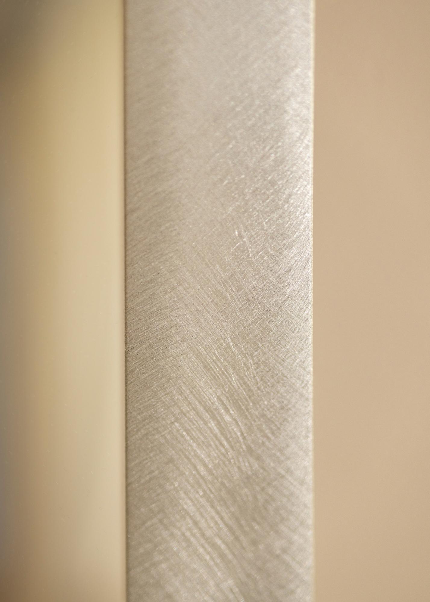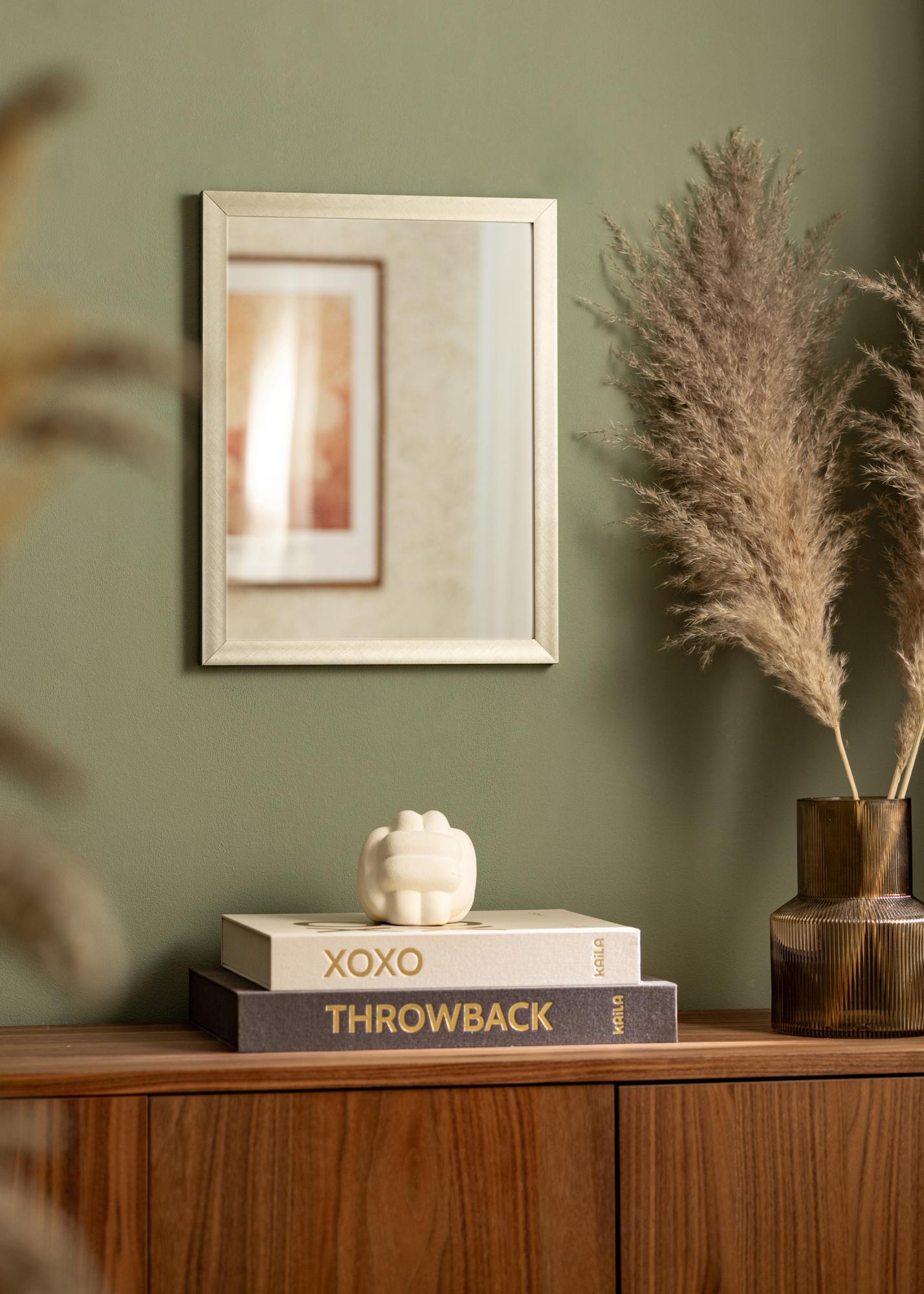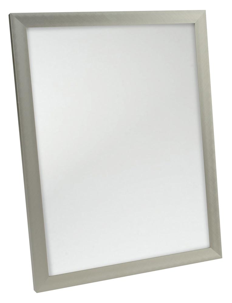 Stilingas šiuolaikinis veidrodis su rėmeliu iš šlifuoto aliuminio puikiai tinka bet kuriuose namuose su elegantiška interjero apipavidalinimu. Pilka metalo spalva suteikia vėsų įspūdį ir užtikrina, kad veidrodis užima diskretišką vietą ant sienos, nekonkuruojant su kitais interjero aksesuarais. Nepaisant jo elegantiško dizaino, jis atrodo tvirtas ir stabilus. Derinkite veidrodį su kitais metalo interjero elementais ir nuotraukomis arba spaudiniais panašiuose rėmuose, kad sukurtumėte visuminį kambario pojūtį.