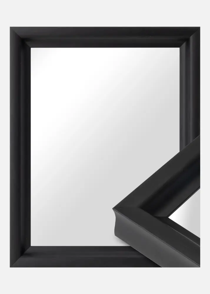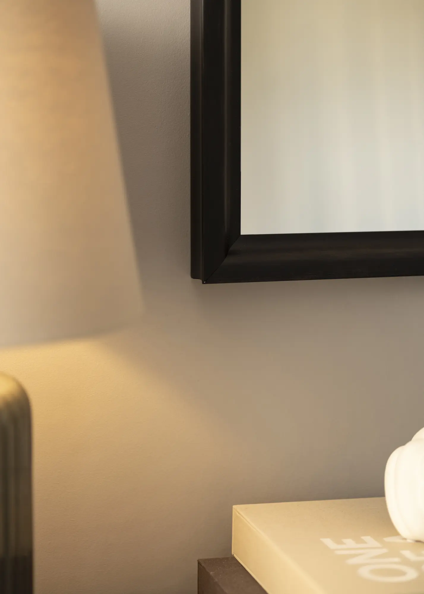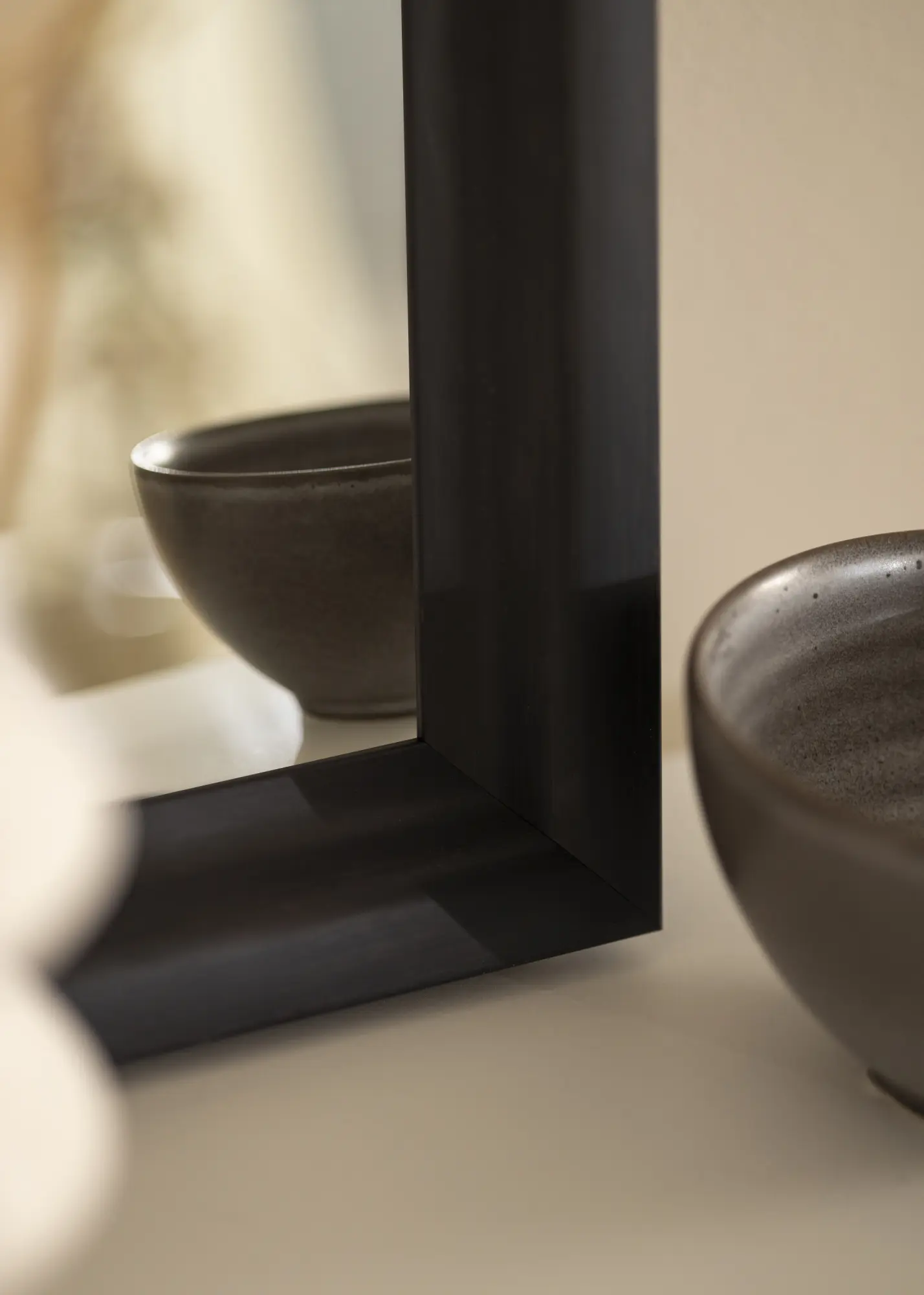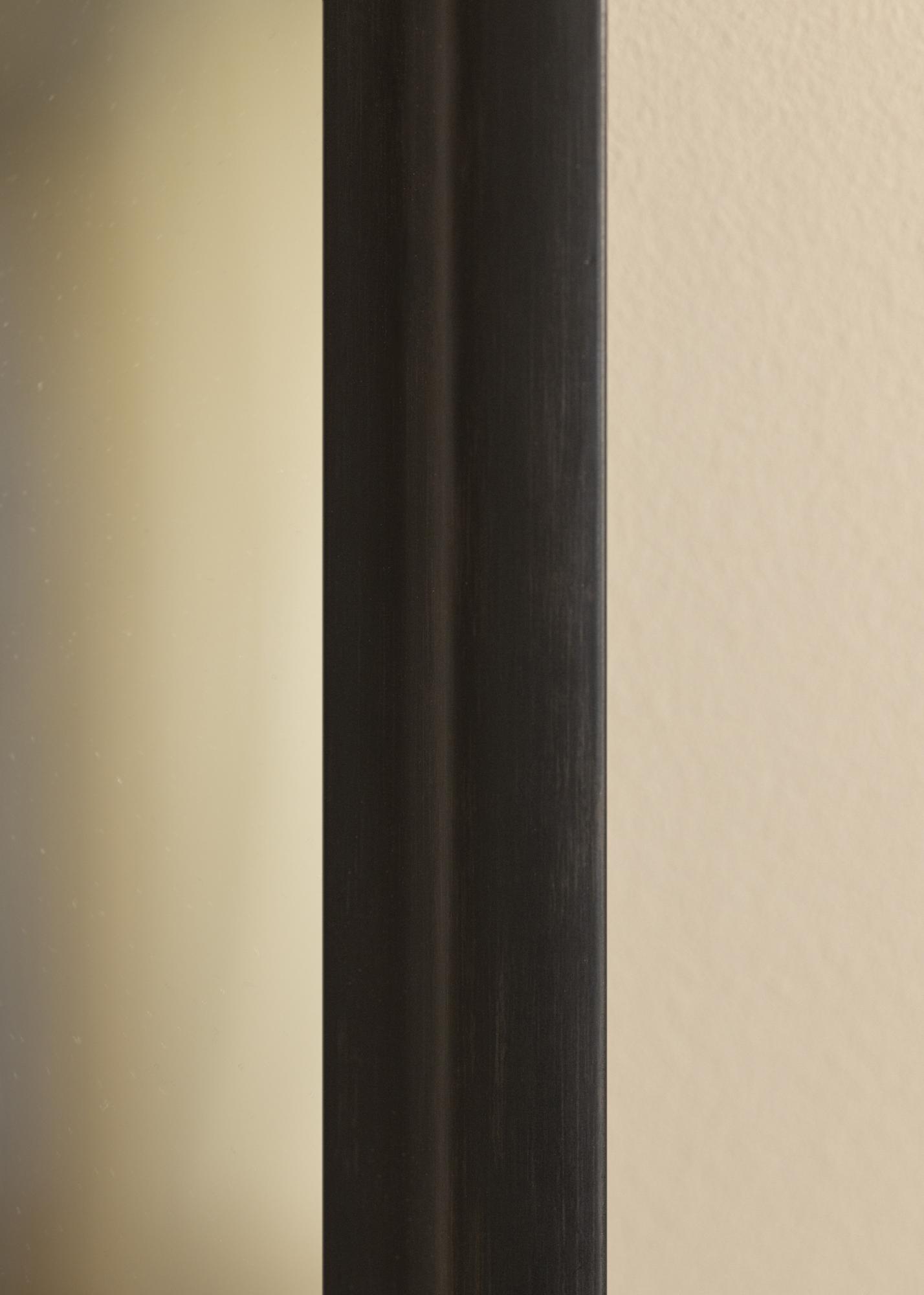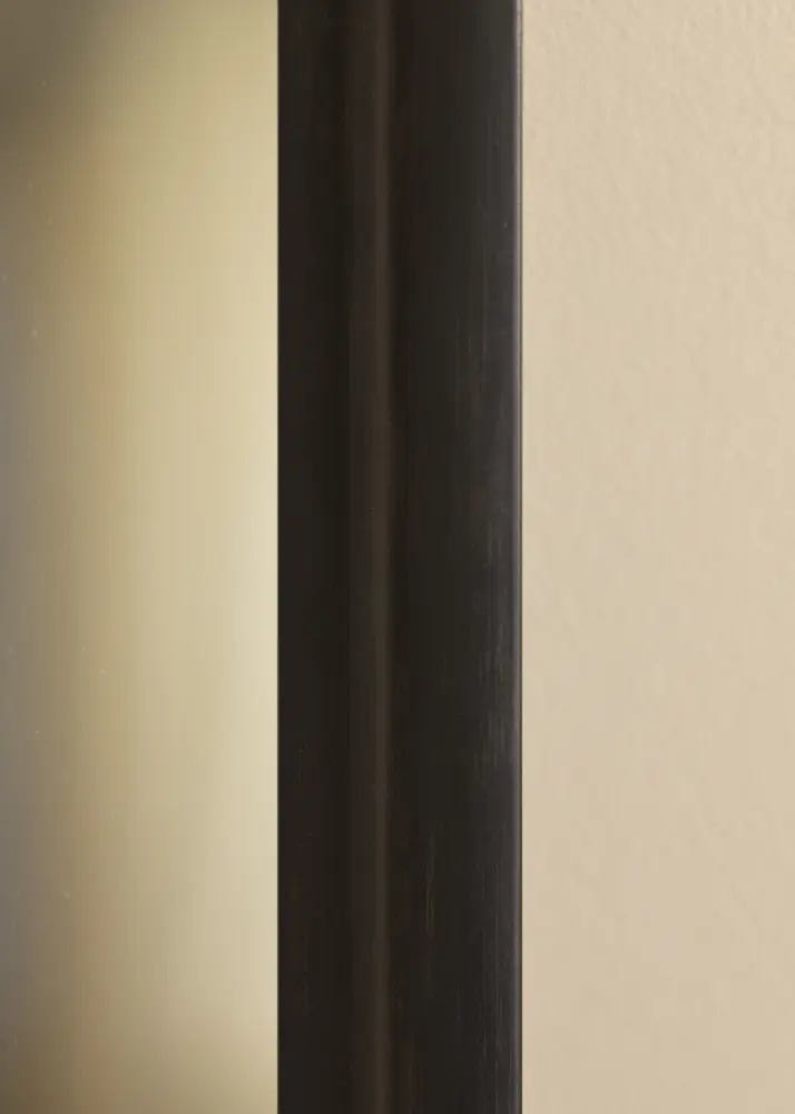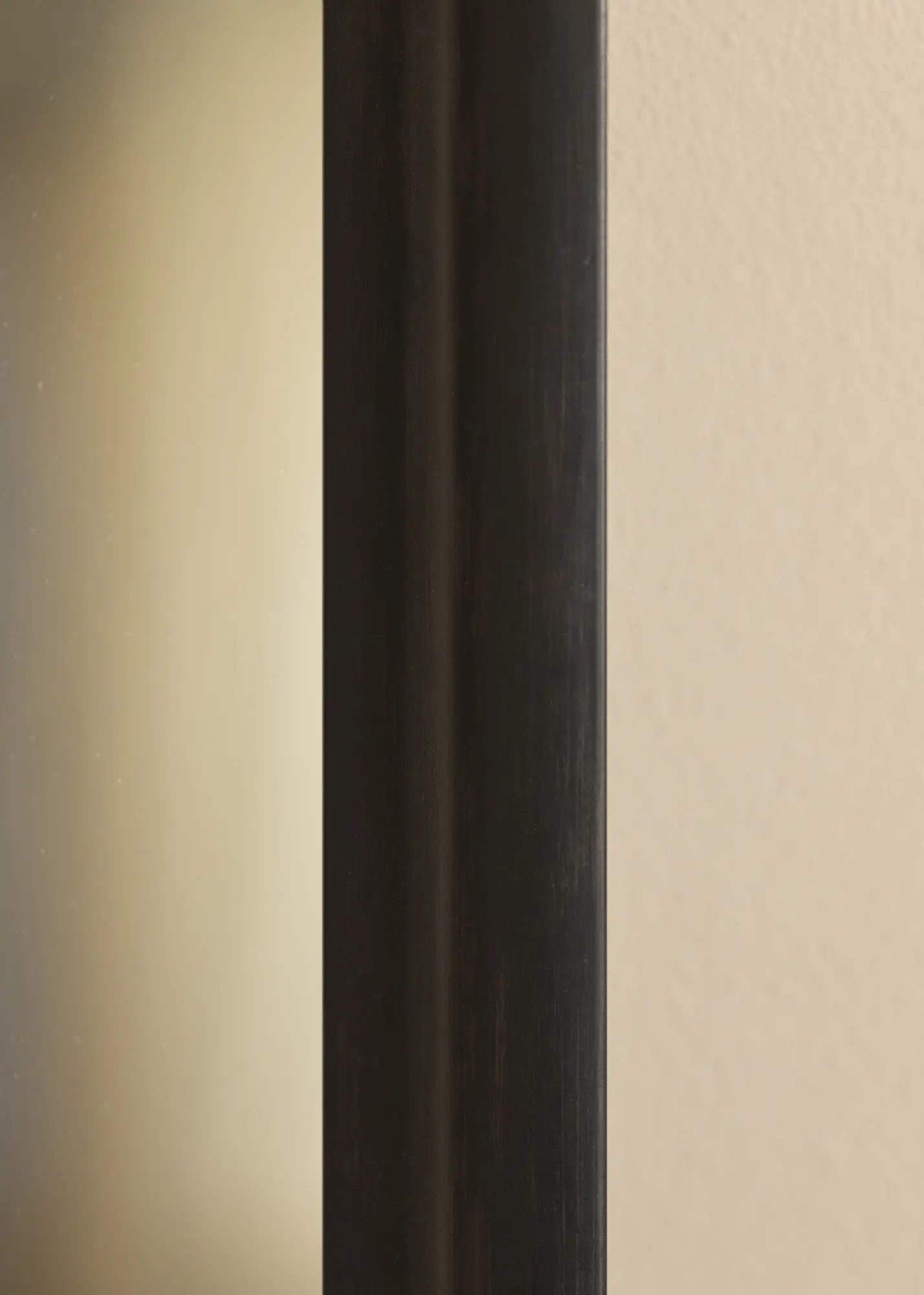 Tradicinis veidrodis tamsiai juodai rudos spalvos, kuri artimesnė juodai nei rudai. Puikus pasirinkimas, kai ieškote pagal užsakymą pagaminto veidrodžio tamsiame atspalvyje, kur matosi medžio struktūra.