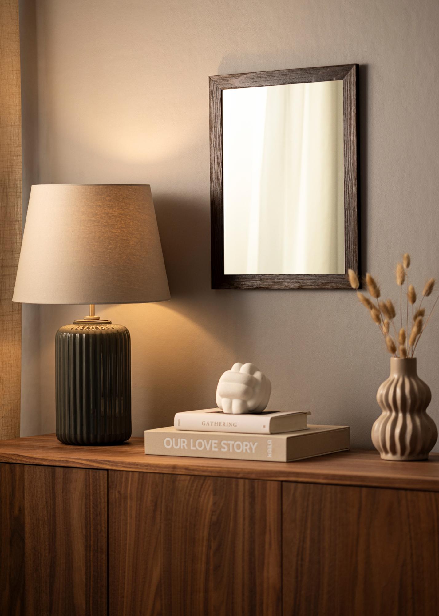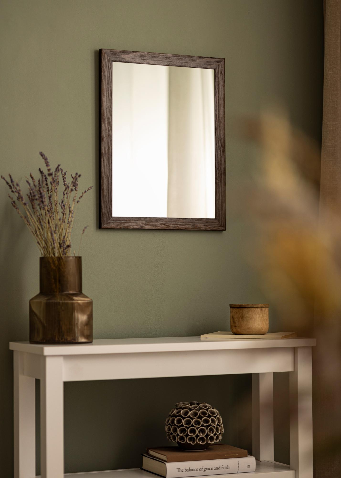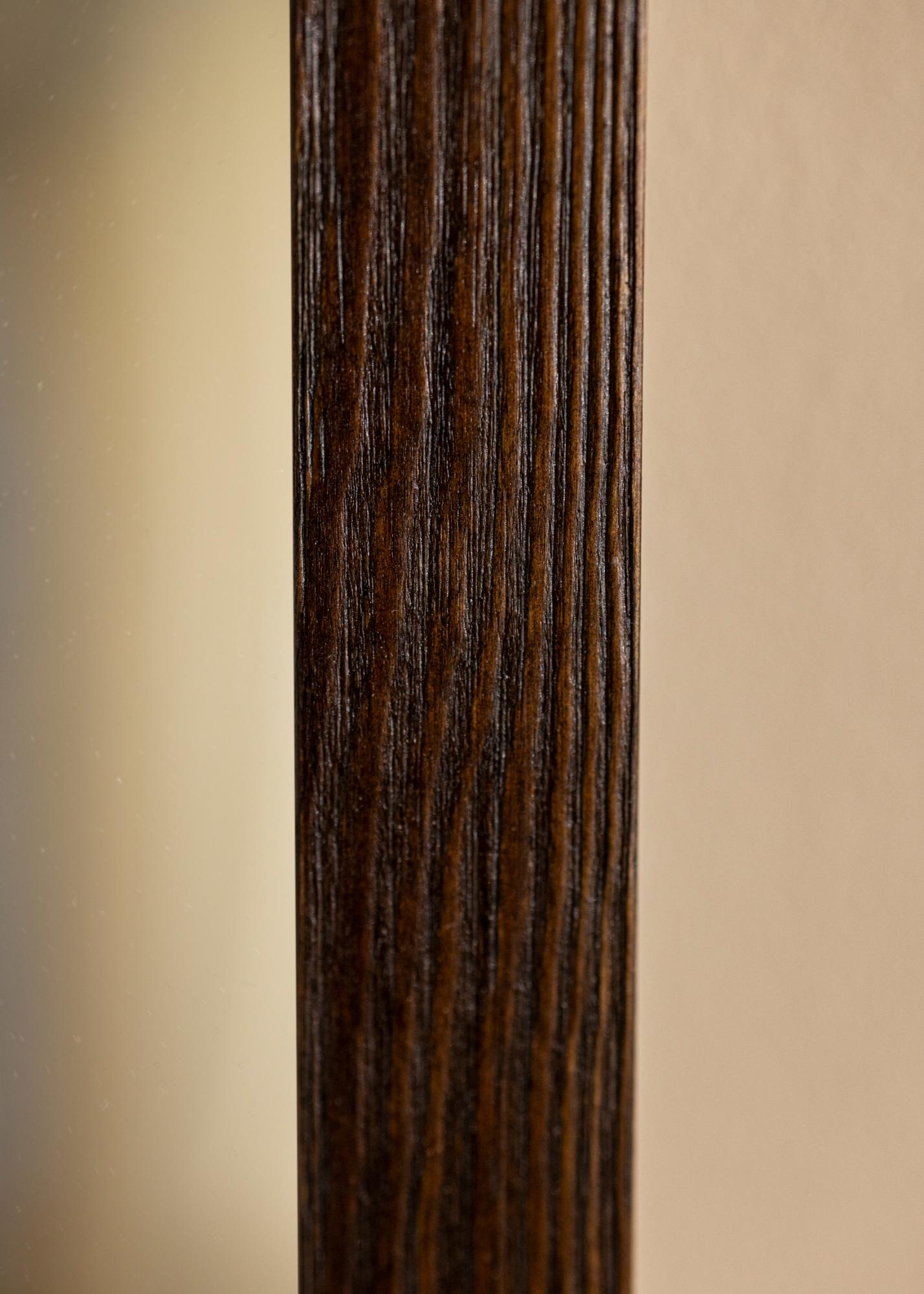 Tvirta ruda veidrodžio rėmelis su matomomis medienos raštais ir plačiu profiliu. Puikiai tinka, kai ieškote tamsaus medinio rėmo su natūraliu pojūčiu.