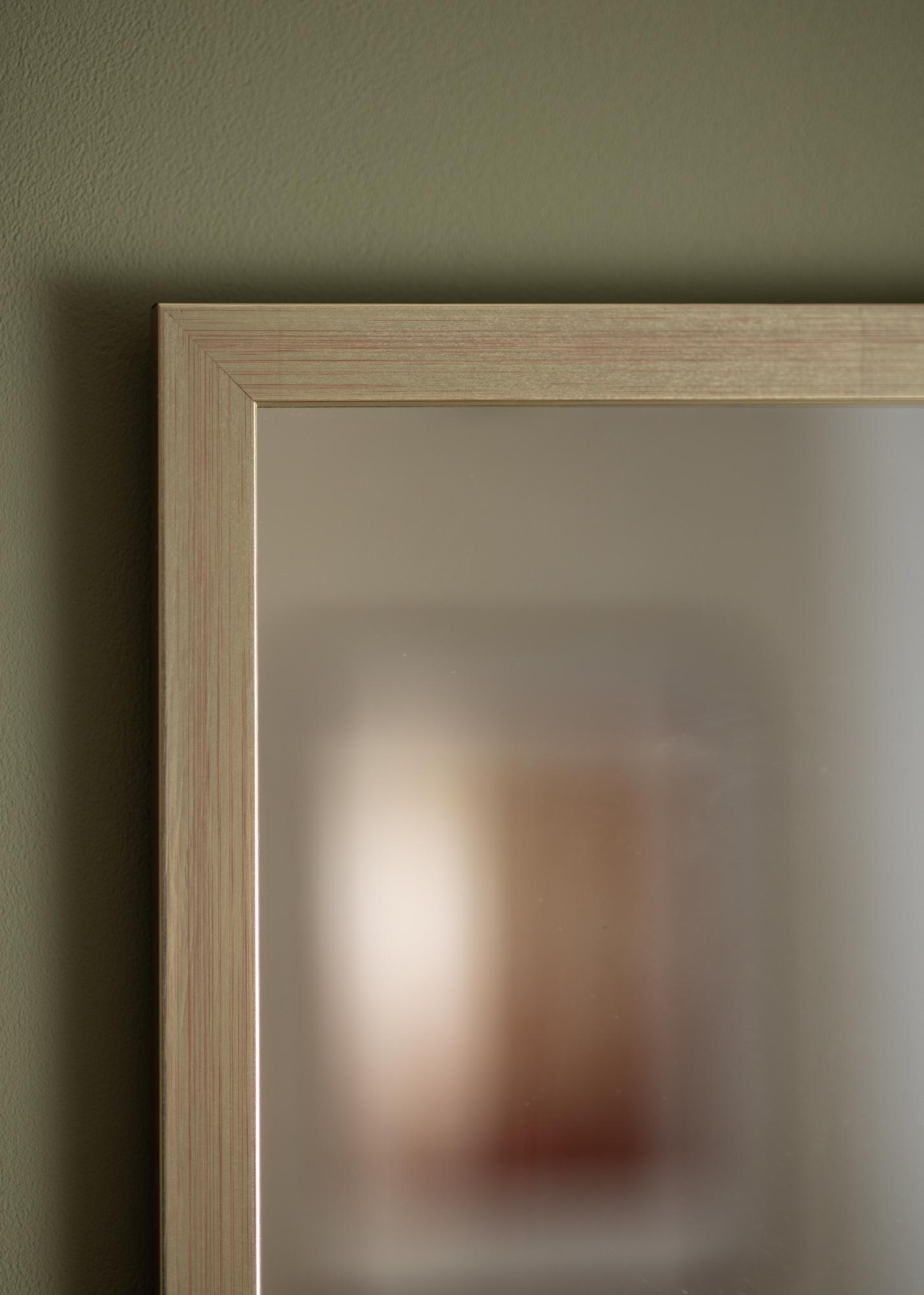 Šis veidrodis pagamintas iš ajos medienos, nudažytas elegantišku sidabriniu atspalviu. Rėmas yra 22 mm pločio ir turi tiesų profilį, kas sukuria šiek tiek minimalistišką visumą. Pastatykite veidrodį koridoriuje, miegamajame ar svetainėje ir tegul jis gražiai atspindi šviesą iš lempų ir langų.