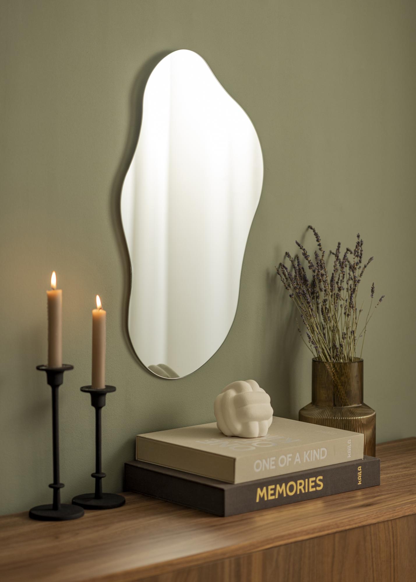 Ieškai dekoratyvaus veidrodžio svetainės kambariui? Prieškambario įėjimui? Ar vietai namuose, kur norėtum, kad gražus veidrodis atspindėtų dienos šviesą? Soft Cloud yra 35x60 cm dydžio sieninis veidrodis, tinkantis kiekviename kambaryje. Veidrodis turi ploną 4 mm storio veidrodinį stiklą ir elegantišką banguotą formą. Veidrodį galima montuoti ant sienos naudojant sieninius laikiklius gale.