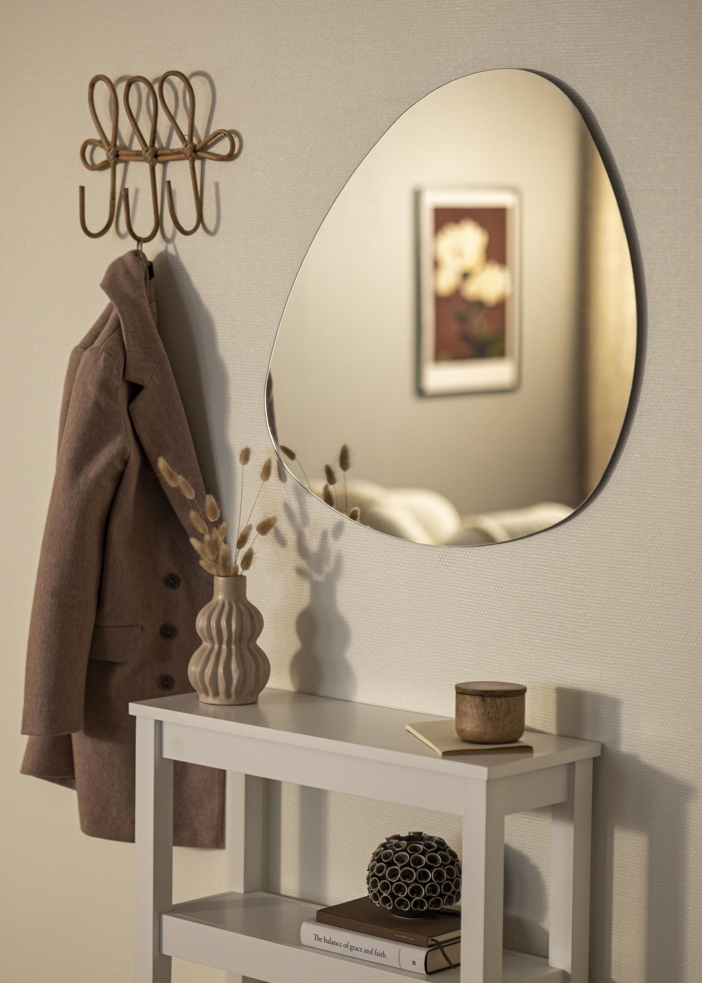 Atraskite unikalią detalę savo namams su mūsų asimetriniu veidrodžiu, dizainu, kuris laužo tradicinį ir suteikia pojūtį plaukimo ir švelnumo kambaryje. Savo išlenktomis linijomis veidrodis suteikia harmoningą ir subalansuotą pojūtį, puikiai tinkančią sukurti įdomų vaizdinį efektą ant sienos. Jo dydis 70x70 cm daro jį idealiu akcentu tiek mažoms, tiek didelėms erdvėms.