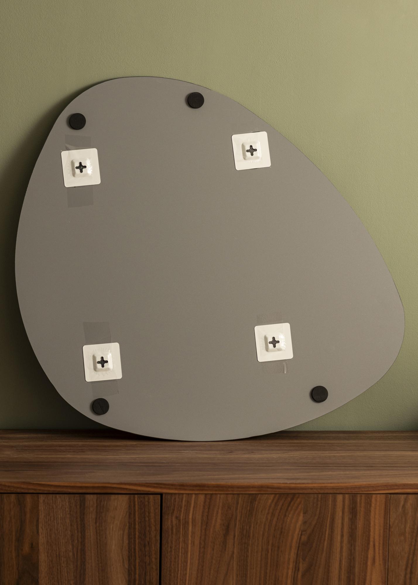 Veidrodžio dizainas yra ne tik estetiškai patrauklus, bet ir funkcionalus. Asimetrinė forma leidžia pasirinkti, kuri pusė turi būti aukštyn ar žemyn, suteikdama jums laisvę individualizuoti savo erdvę. Nesvarbu, kur jį pastatysite, šis veidrodis taps pokalbio pradžia ir išraiškinga jūsų namų detalė.