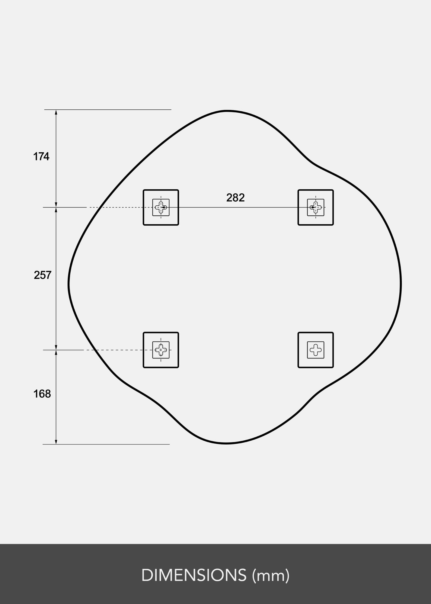 Atraskite elegantišką ir universalų veidrodį, sukurtą pritaikyti kiekviename jūsų namų kambaryje. Jo dosnūs 60x60 cm matmenys suteikia praktinę ir dekoratyvinę funkciją. Unikali banguota kontūra prideda organišką pojūtį ir sukuria šiuolaikinę nuotaiką jūsų interjere.