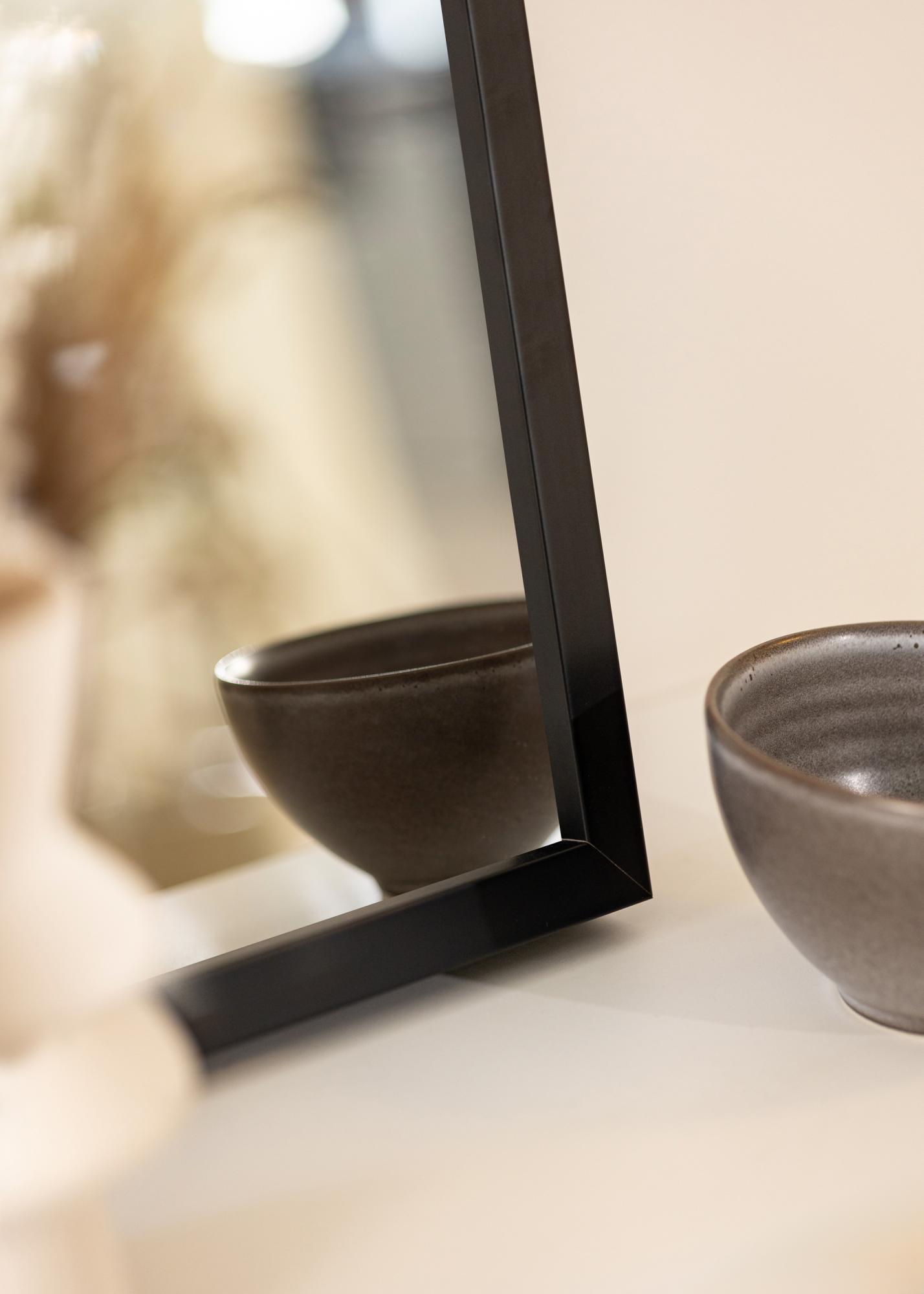 Veidrodžio Thor Juodo rėmas yra 20 mm pločio ir suteikia veidrodžiui diskretišką, bet vis tiek aiškų rėmą. Juoda rėmo spalva sukuria puikų kontrastą su veidrodžio stiklu ir prisideda prie rafinuotos išvaizdos. Su 40 mm gyliu veidrodis turi tvirtą pojūtį, bet netampa gremėzdiškas, todėl jį lengva pastatyti net mažesniuose kambariuose ar siaurose erdvėse.