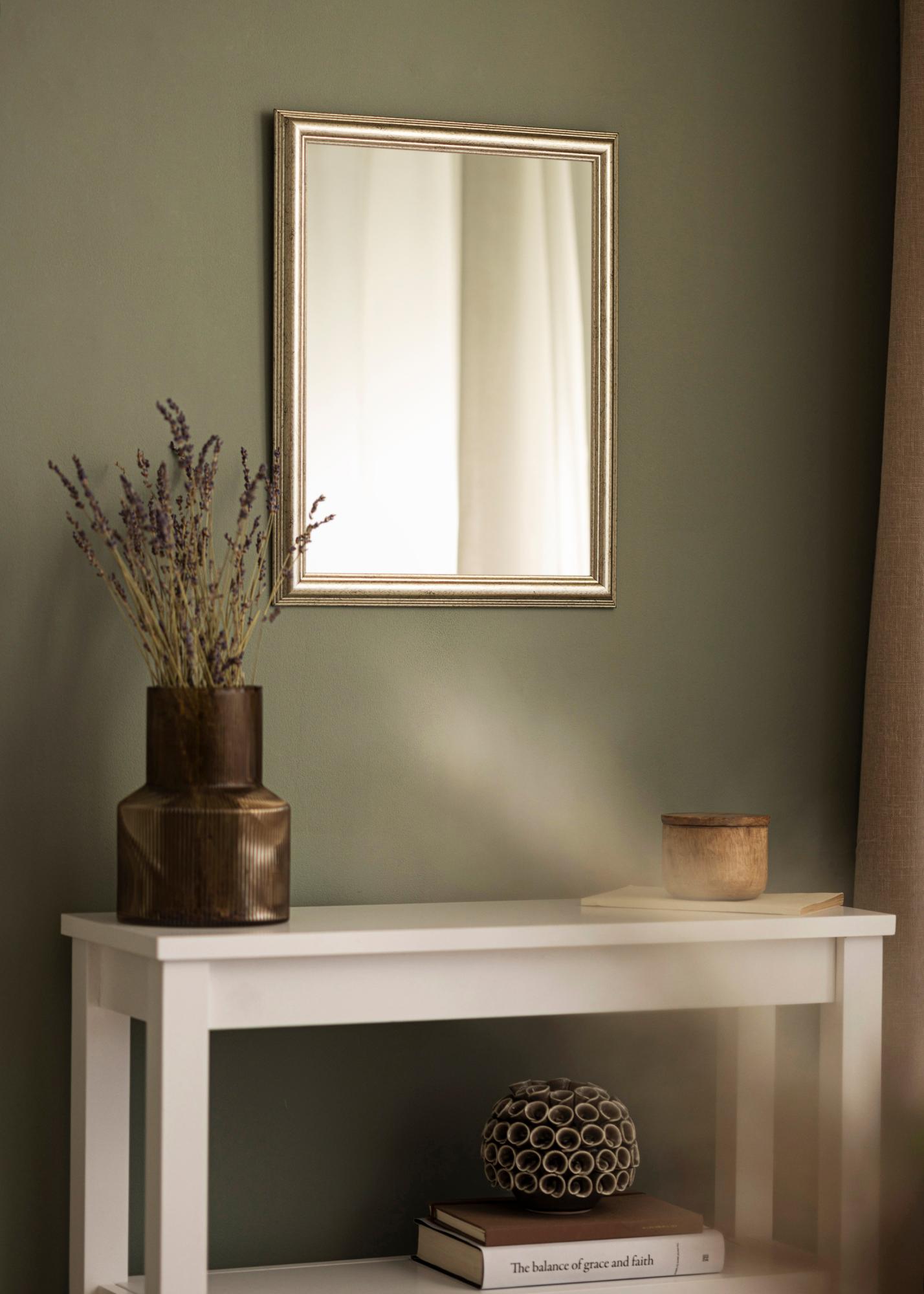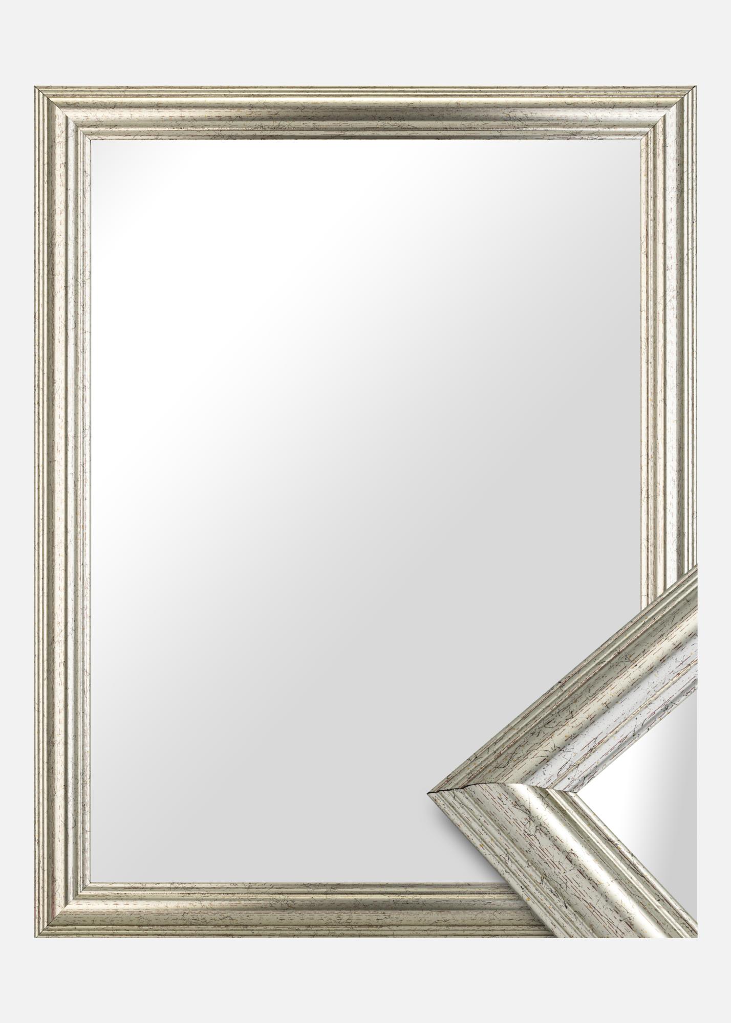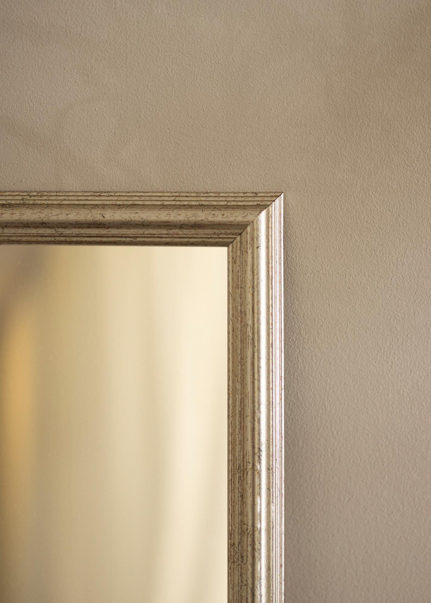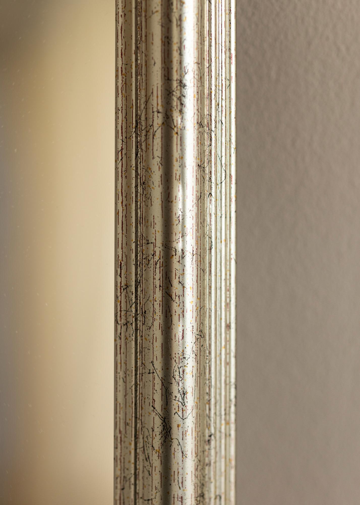 Stilingas sidabrinės spalvos veidrodis, kuris taps natūralia jūsų interjero dalimi. Puikus pasirinkimas, kai ieškote veidrodžio su elegancijos jausmu.