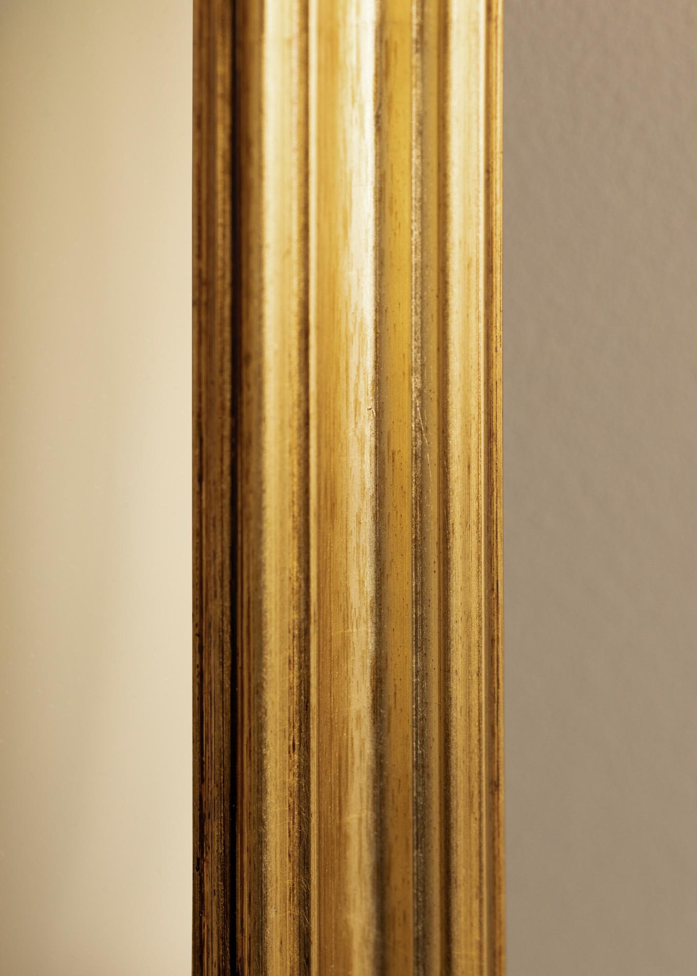 Šis veidrodis turi nuostabią auksinę spalvą su švelniai suapvalintais profiliais, kurie suteikia klasikinį ir rafinuotą išvaizdą. Šilta auksinė spalva turi subtilius atspalvius ir lengvai seną paviršių, kuris kuria nesenstantį įspūdį, tinkantį tiek moderniuose, tiek tradiciniuose interjeruose. Veidrodis gali lengvai tapti pagrindine jūsų kambario dalimi, nesvarbu, ar jį pastatysite koridoriuje, svetainėje ar miegamajame.