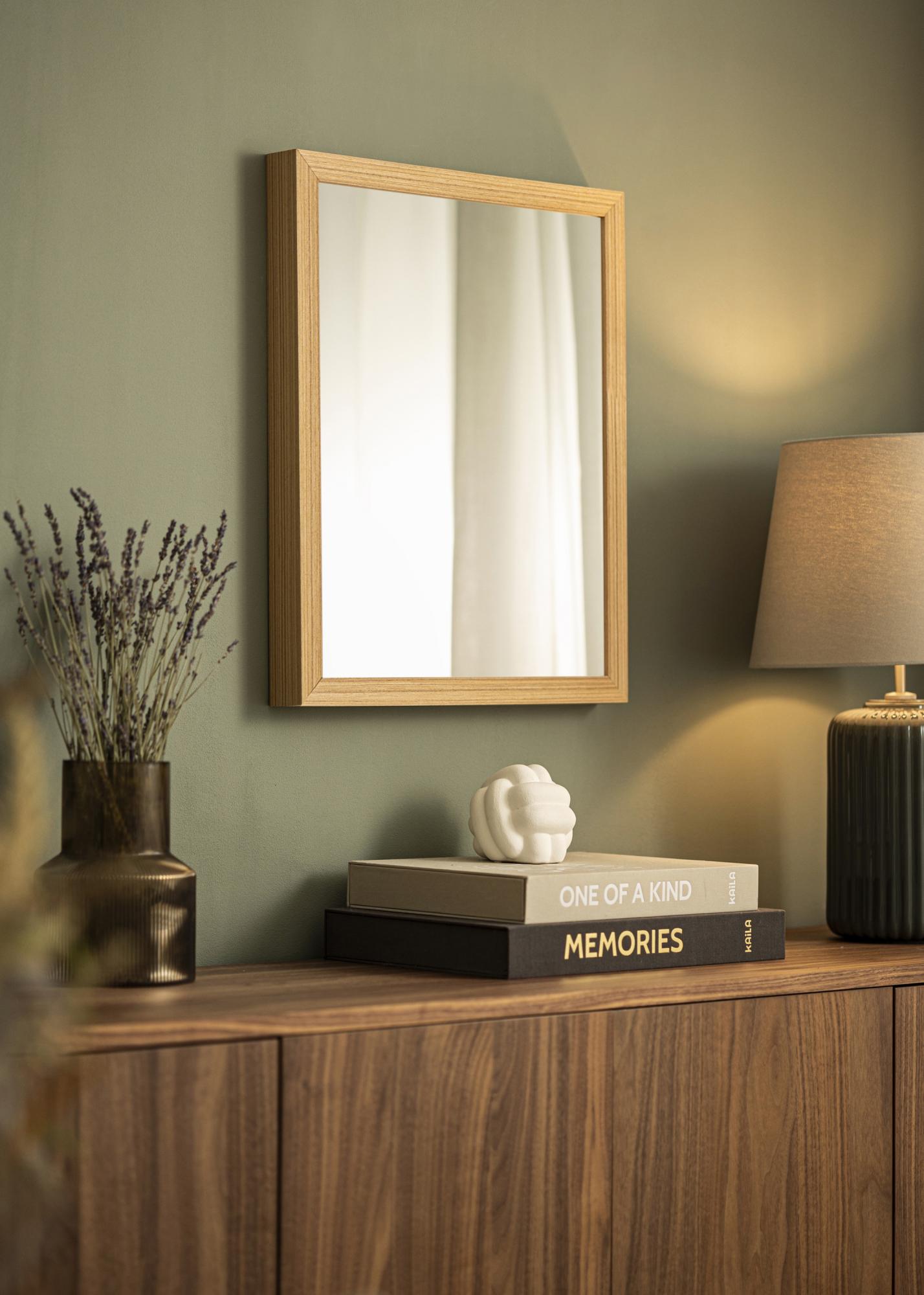 Šis veidrodis turi elegantišką ąžuolo struktūros apdailą, kuri suteikia natūralų ir tvarkingą įspūdį. 48 mm pločio rėmo lenta skoningaipuoja veidrodį ir suteikia jam tvirtą išvaizdą. 42 mm gylio rėmas taip pat suteikia stabilumo ir kokybės pojūtį, todėl veidrodis tampa patvaria jūsų interjero dalimi.