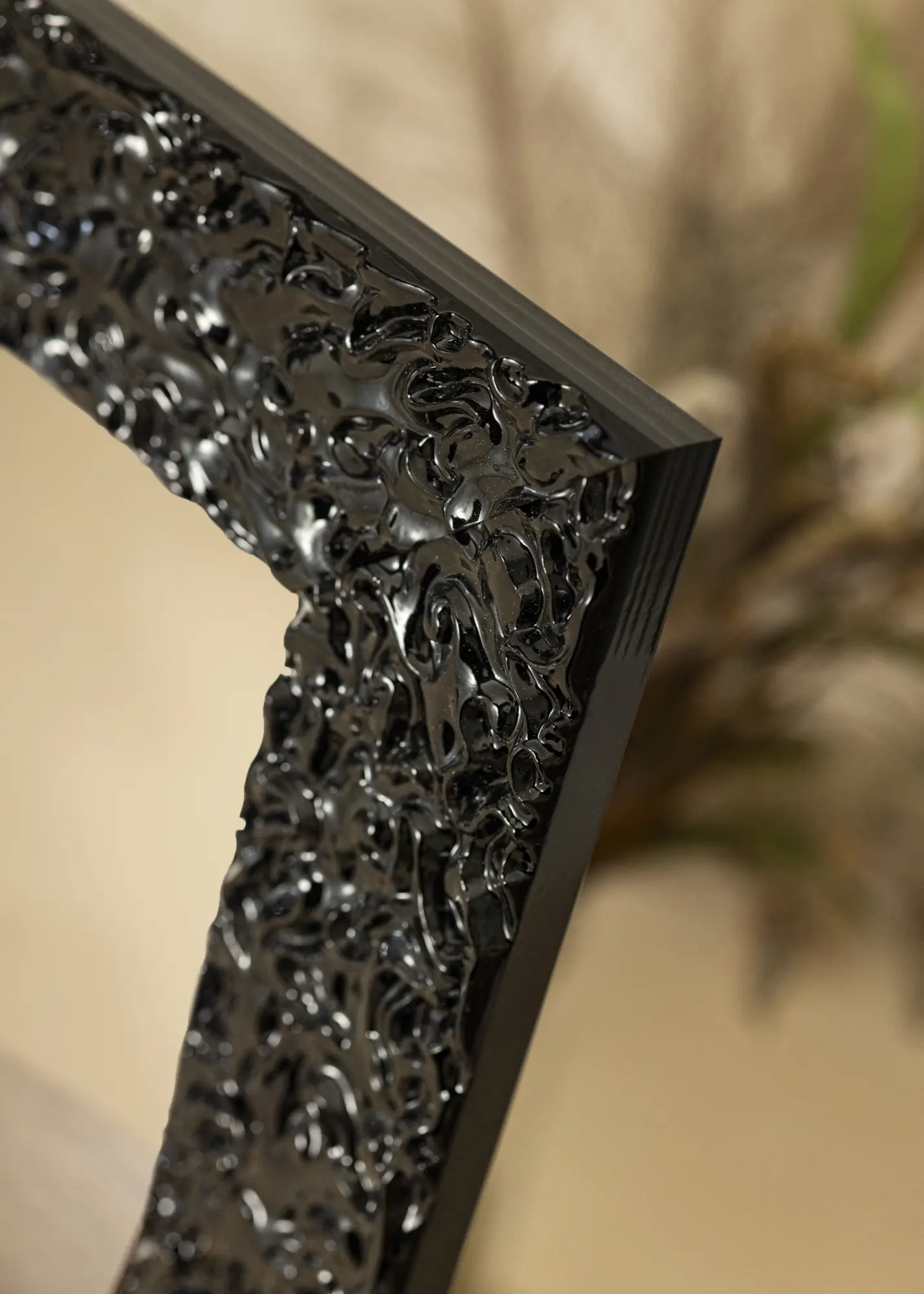 Šis veidrodis pagamintas iš pušies, kuri užtikrina patvarų ir stabilų konstrukcijos pagrindą. 23 mm gylio veidrodis sukuria tvirto jausmo įspūdį, tačiau nėra per sunkus ar stambus. Blizgi apdaila atspindi šviesą tokiu būdu, kuris suteikia kambariui papildomą šviesos ir erdvės dimensiją, tuo pačiu metu gili spalva prisideda prie prabangios atmosferos kūrimo.