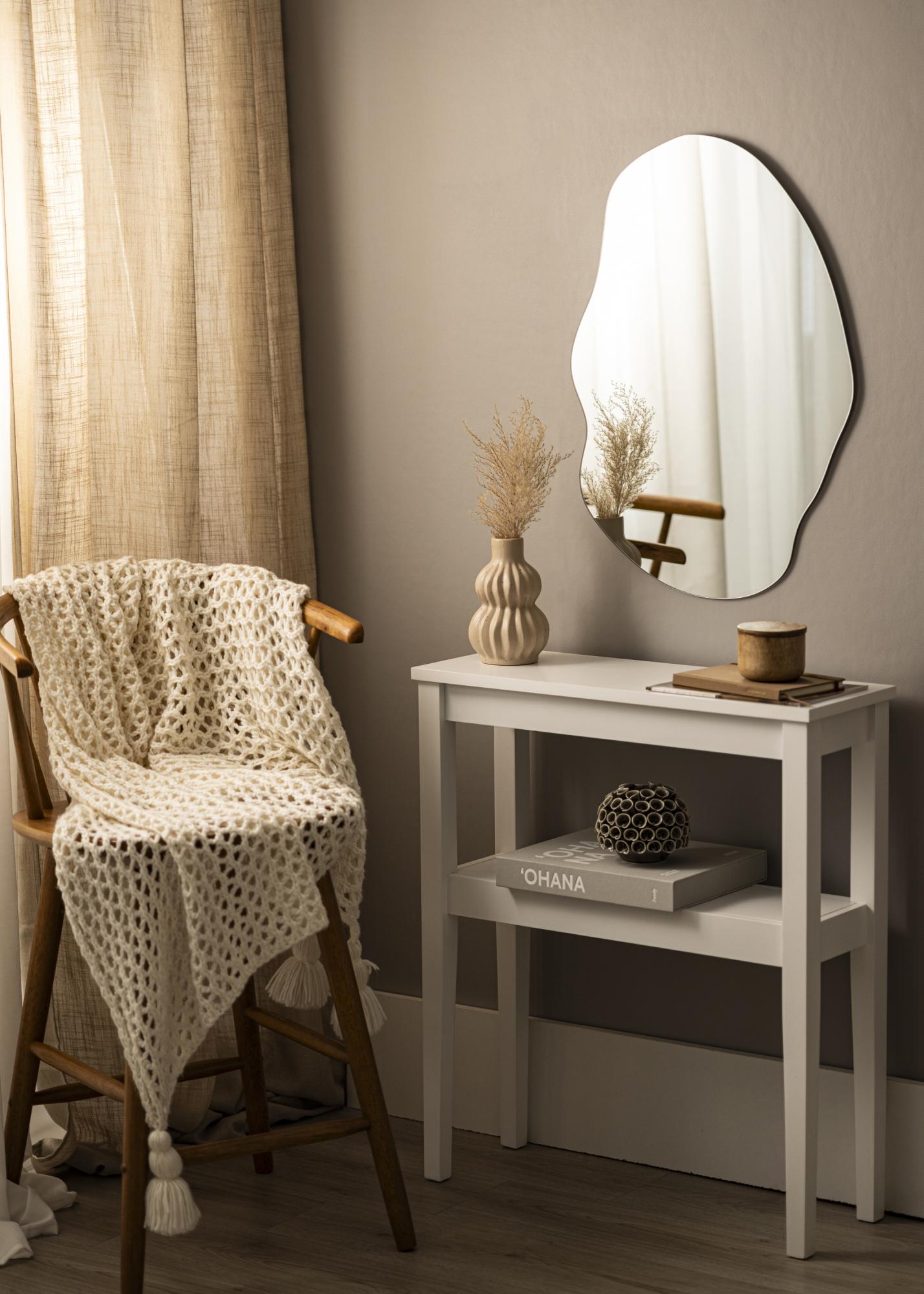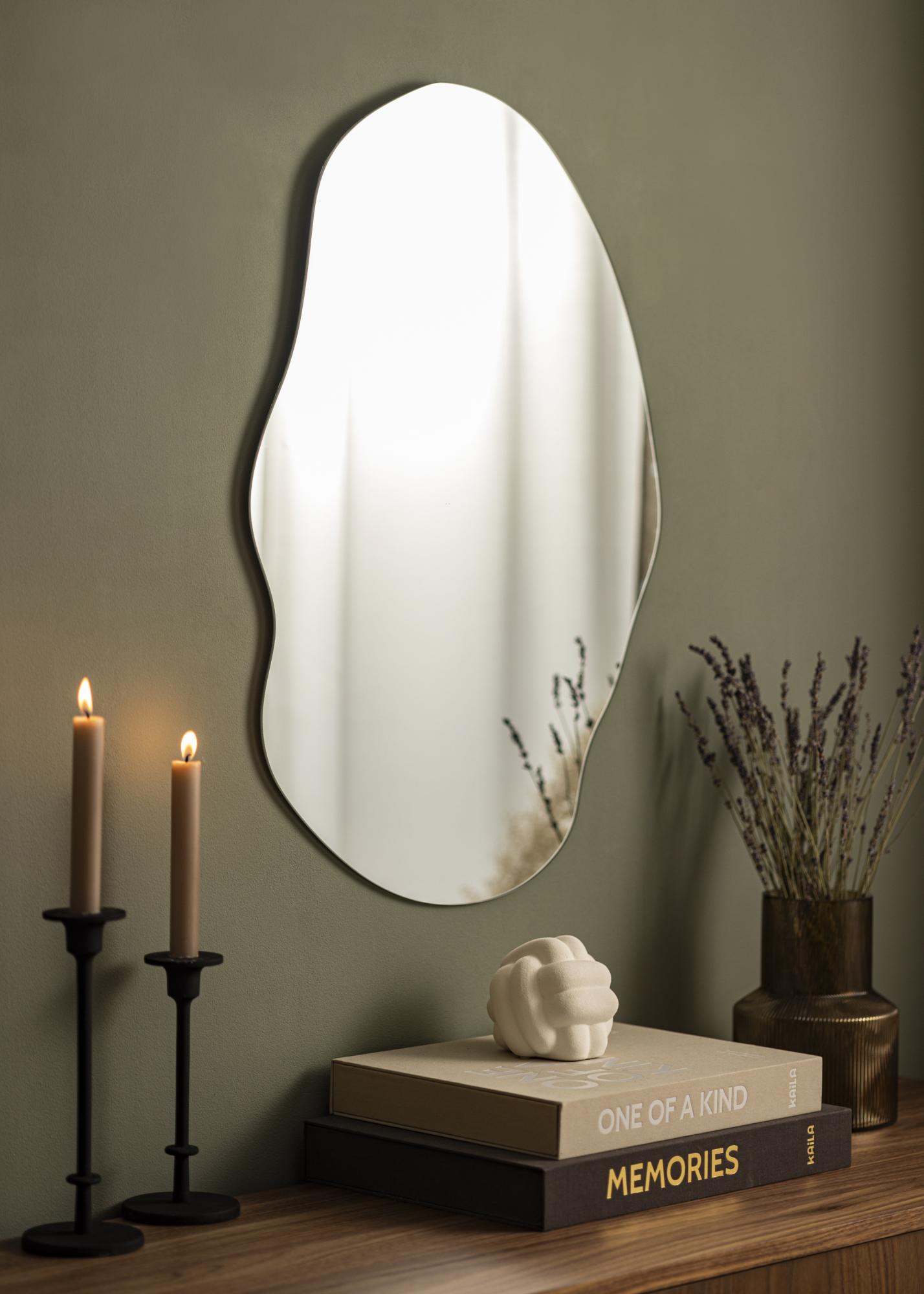 Ar daugybė klasikinių formų jūsų interjere, tokių kaip kvadratiniai stalai ar apvalūs kilimai? Tuomet kitokios formos veidrodis yra puikus papildymas, kuris sukurs daugiau dinamikos kambaryje. Wide Cloud yra 50x70 cm dydžio sieninis veidrodis su debesų įkvėptu dizainu. Gražiai banguota forma yra labai elegantiška, o plonas veidrodinis stiklas dar labiau sustiprina stilingą pojūtį.