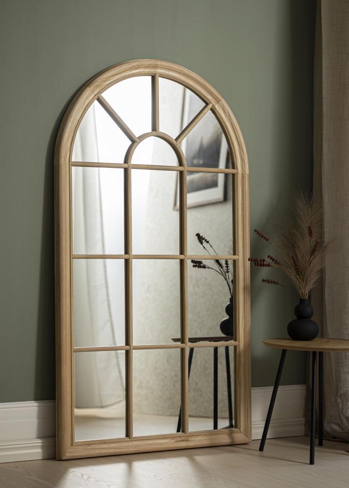 Atrastkite nesenstančią eleganciją su mūsų lankinės formos veidrodžiu, kurio dizainas primena istorinius gotikinius langus. Su savo įspūdingais 80x140 cm išmatavimais šis veidrodis suteikia didingą vaizdą ir tampa išskirtiniu jūsų namų elementu. Natūrali medinė rėmas apgaubia veidrodžio stiklą ir prideda jūsų interjerui šilumos ir tradicijos jausmą.